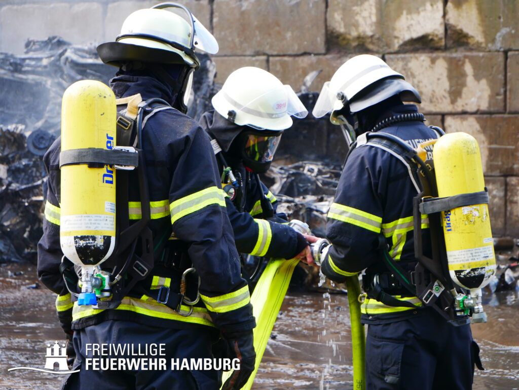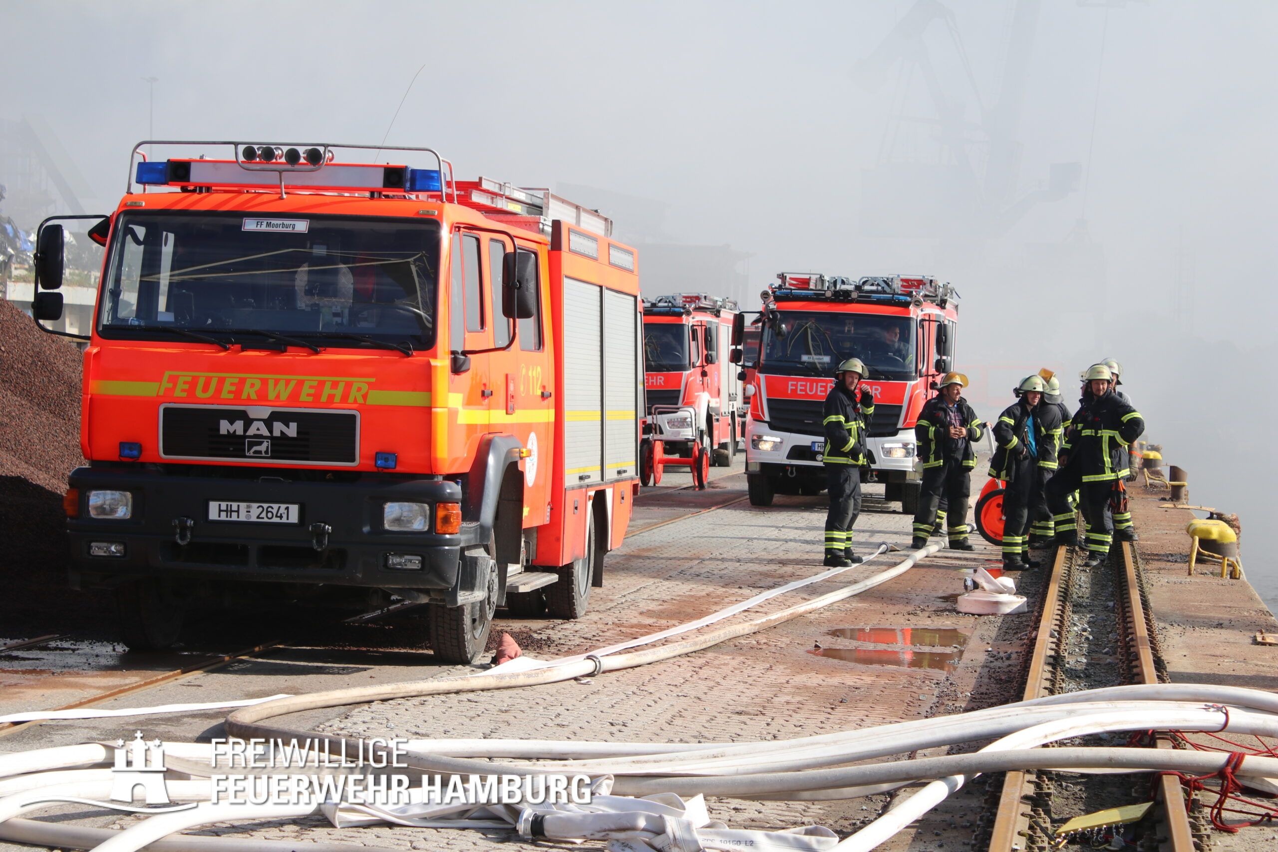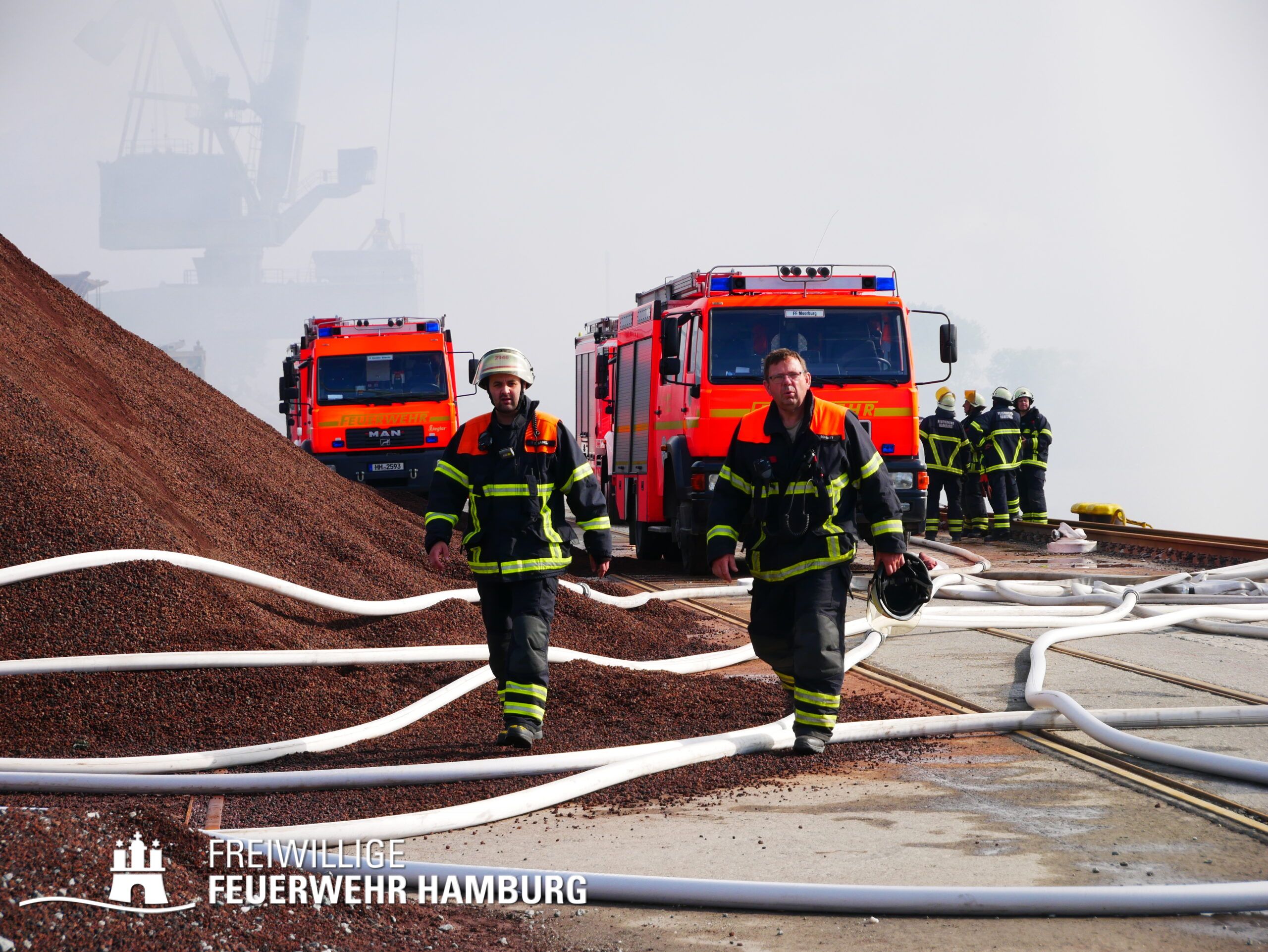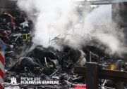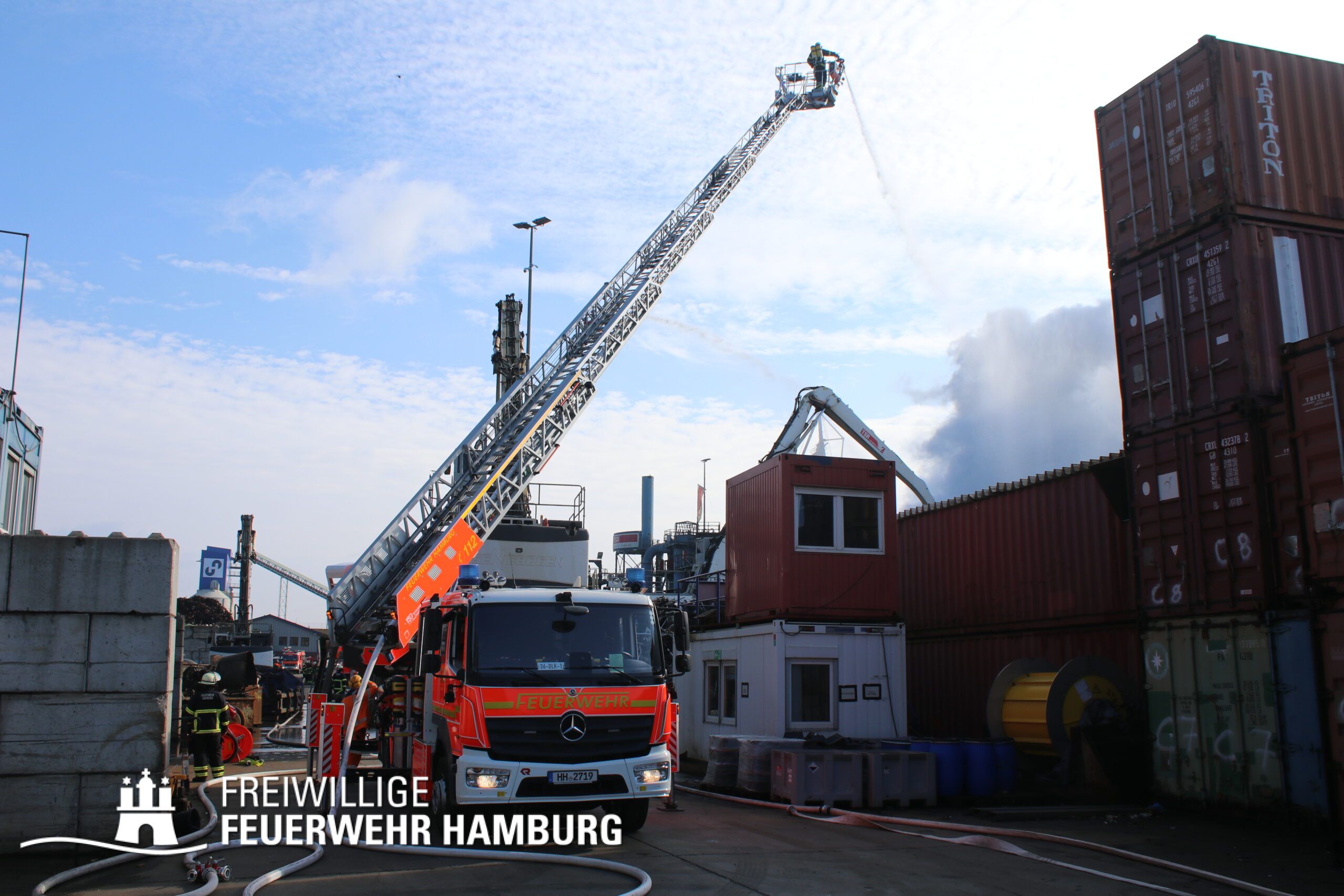 Ein Mitarbeiter meldete über den Notruf der Einsatzzentrale der Feuerwehr Hamburg eine starke Rauchentwicklung auf dem Betriebsgelände einer Firma für Metallschrott. Sofort alarmierte die Einsatzleitzentrale Kräfte der Berufs- und Freiwilliger Feuerwehr.