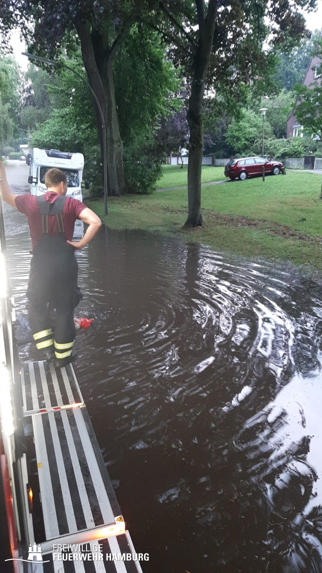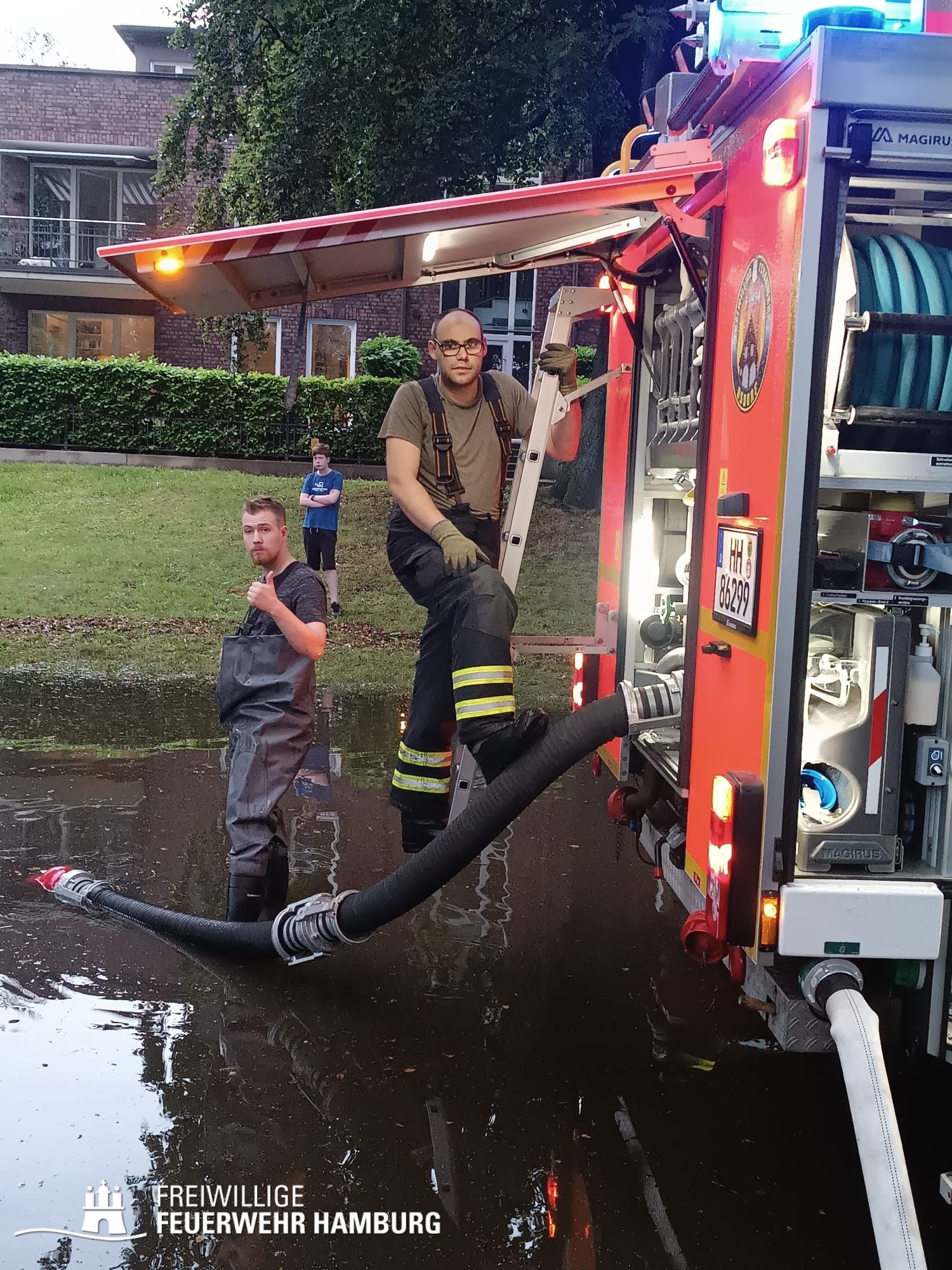 Der vergangene Donnerstag hat unsere Stadt mit dem angekündigten Unwetter in Form von Starkregen und Gewitter ordentlich auf Trab gehalten – so auch insbesondere die Freiwillige Feuerwehr Hamburg: überflutete Straßen, vollgelaufene Keller und Tiefgaragen und entwurzelte Bäume bedeuteten Einsätze, Einsätze, Einsätze.