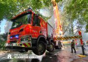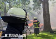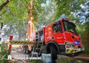 Über den Notruf 112 alarmierten mehrere Anrufer die Einsatzzentrale der Feuerwehr Hamburg, dass Teile eines Daches eines Wohngebäudes im Lentersweg in Hummelsbüttel brennen sollten. Dabei handelte es sich um ein Flachdach, was den Gebäudeabschluss bildete, d.h. es gab keinen Dachboden.