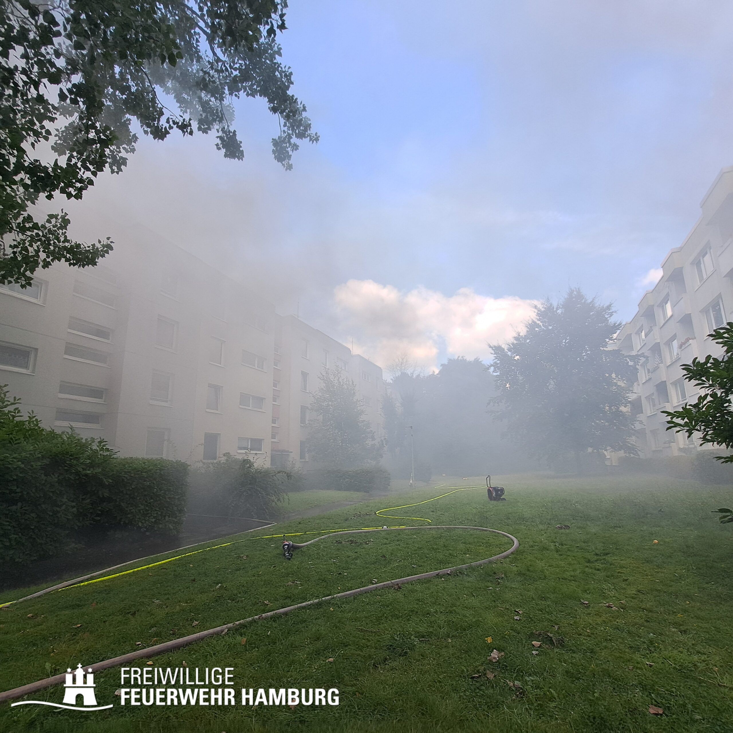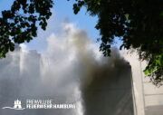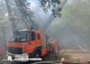 Über den Notruf 112 alarmierten mehrere Anrufer die Einsatzzentrale der Feuerwehr Hamburg, dass Teile eines Daches eines Wohngebäudes im Lentersweg in Hummelsbüttel brennen sollten. Dabei handelte es sich um ein Flachdach, was den Gebäudeabschluss bildete, d.h. es gab keinen Dachboden.