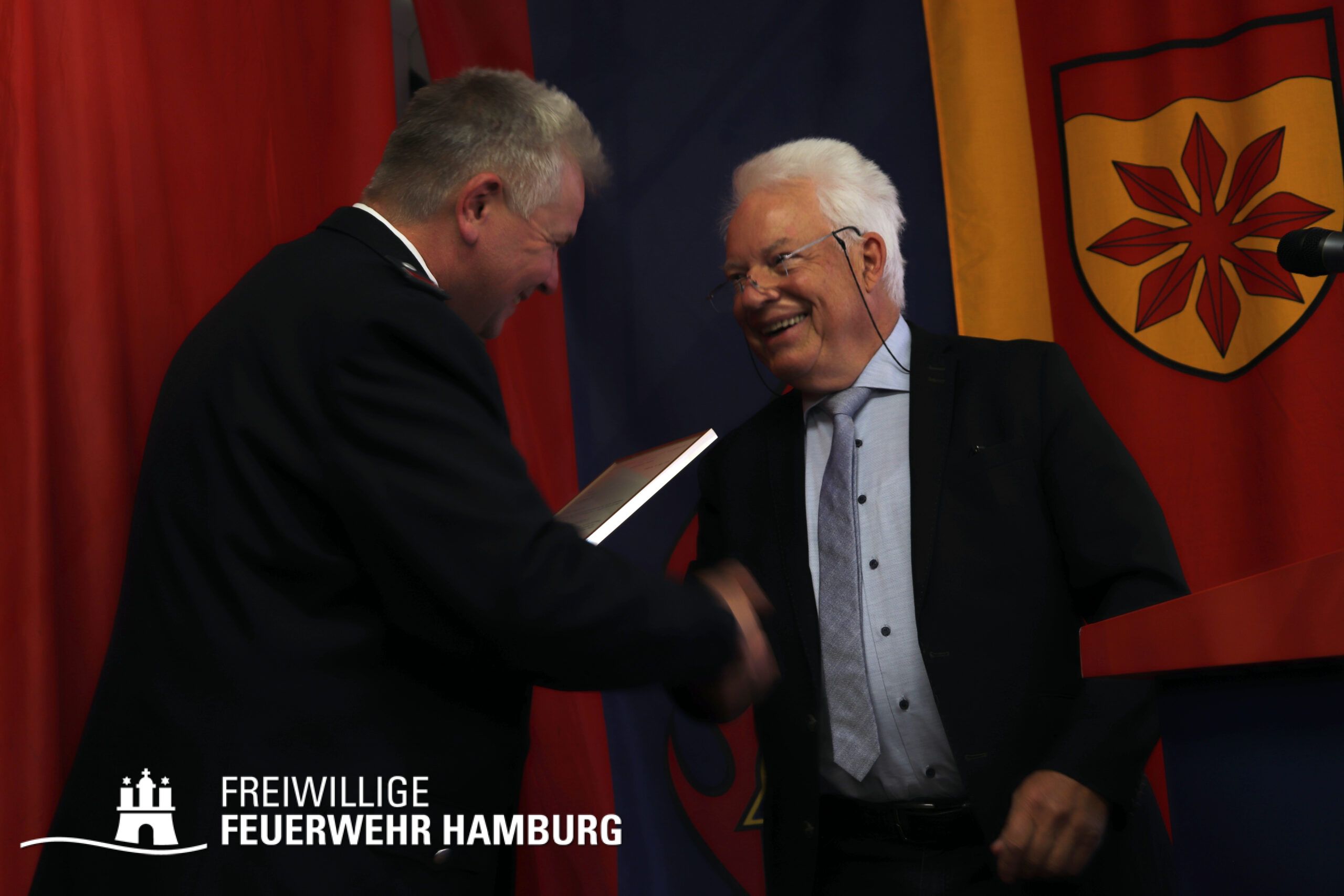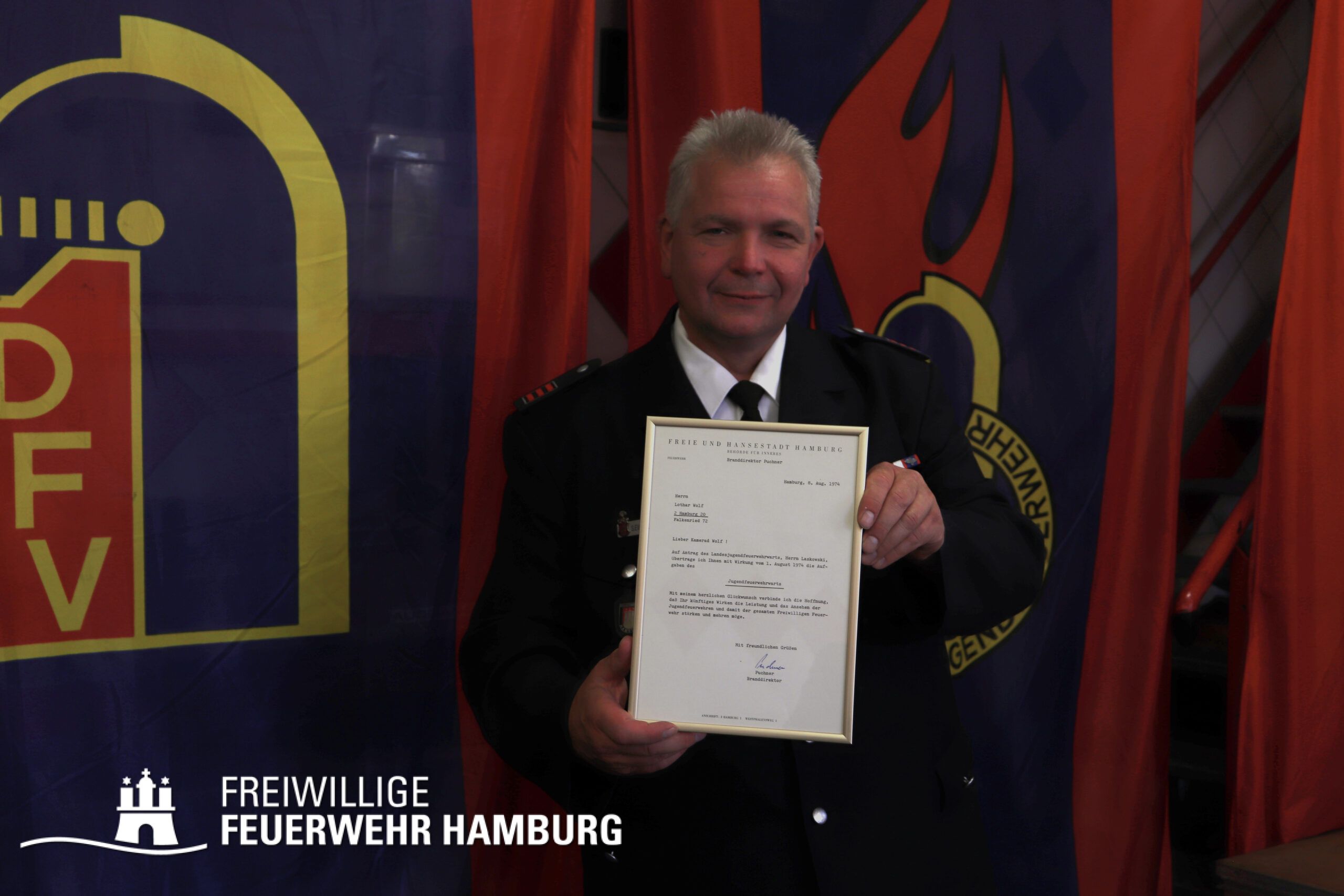 Ein ganz besonderes Geschenk überreichte jedoch Lothar Wolf. Er war 1974 der erste Jugendfeuerwehrwart. Er übergab seine originale Ernennungsurkunde, die damit 1974 auch die Gründung der Jugendfeuerwehr besiegelte. Dass er damit die Grundlage für die mittlerweile größte Jugendfeuerwehr Hamburgs legte, konnte er zum damaligen Zeitpunkt noch nicht ahnen. Dass sich die Arbeit auszahlt, zeigt aber auch die Tatsache, dass in diesem Jahr zum ersten Mal eine Kameradin und ein Kamerad aus der Jugendfeuerwehr in die Einsatzabteilung übernommen wurden, welche zuvor in der Minifeuerwehr an die Jugendarbeit herangeführt wurden. Im Übrigen haben auch die jüngsten Fuhlsbütteler Brandschützer Grund zum Feiern gehabt: Sie feierten in den vergangenen Wochen ganz für sich ihr bereits 10-jähriges Bestehen.