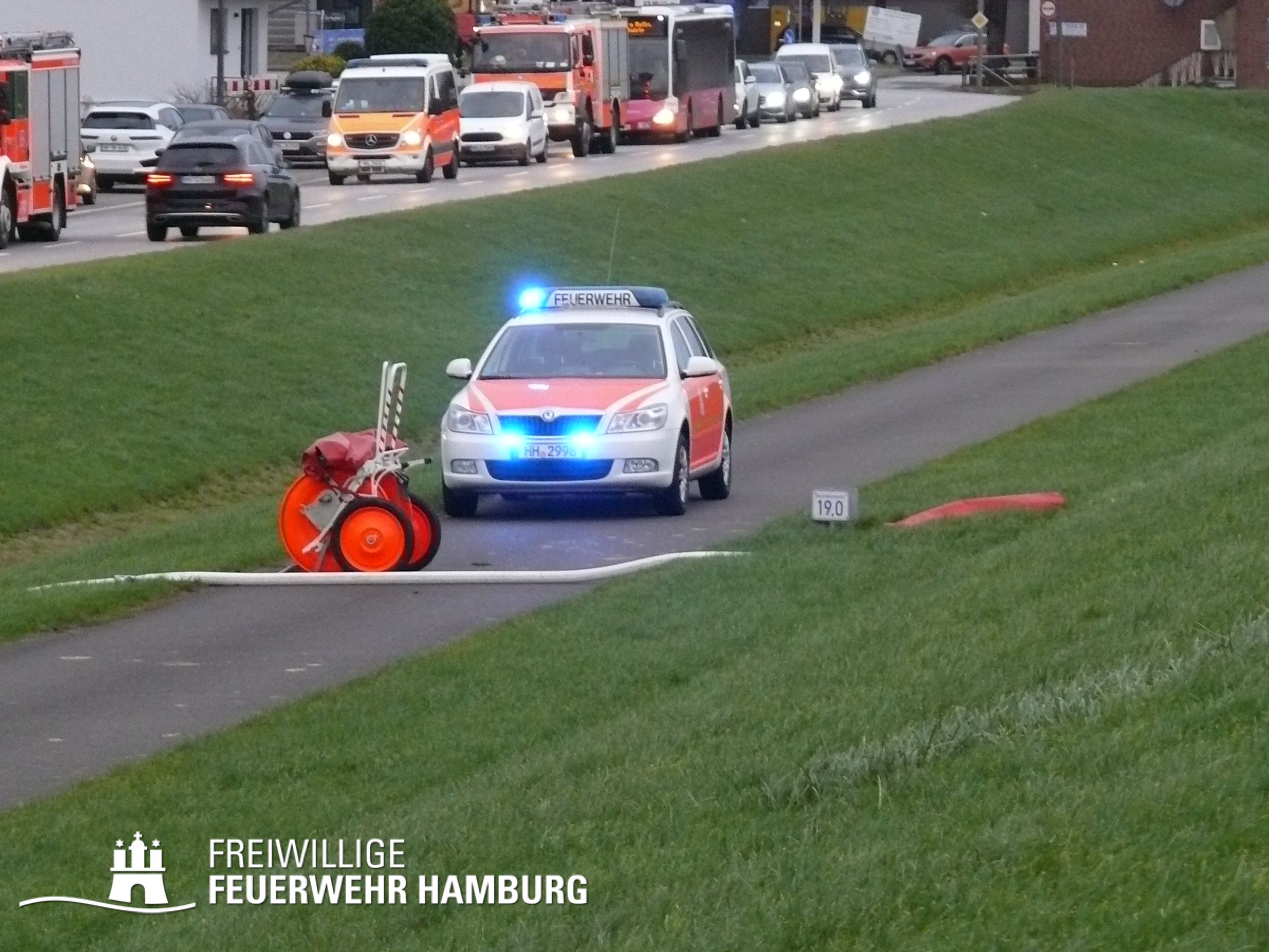 Die FF Francop konnte den Einsatz auf der Anfahrt abbrechen, da Schlauchwagen oder Wasserwerfer-Anhänger nicht erforderlich waren. Ebenso die Kräfte des Gefahrguteinsatzaufgebots aus dem Bereich Harburg.