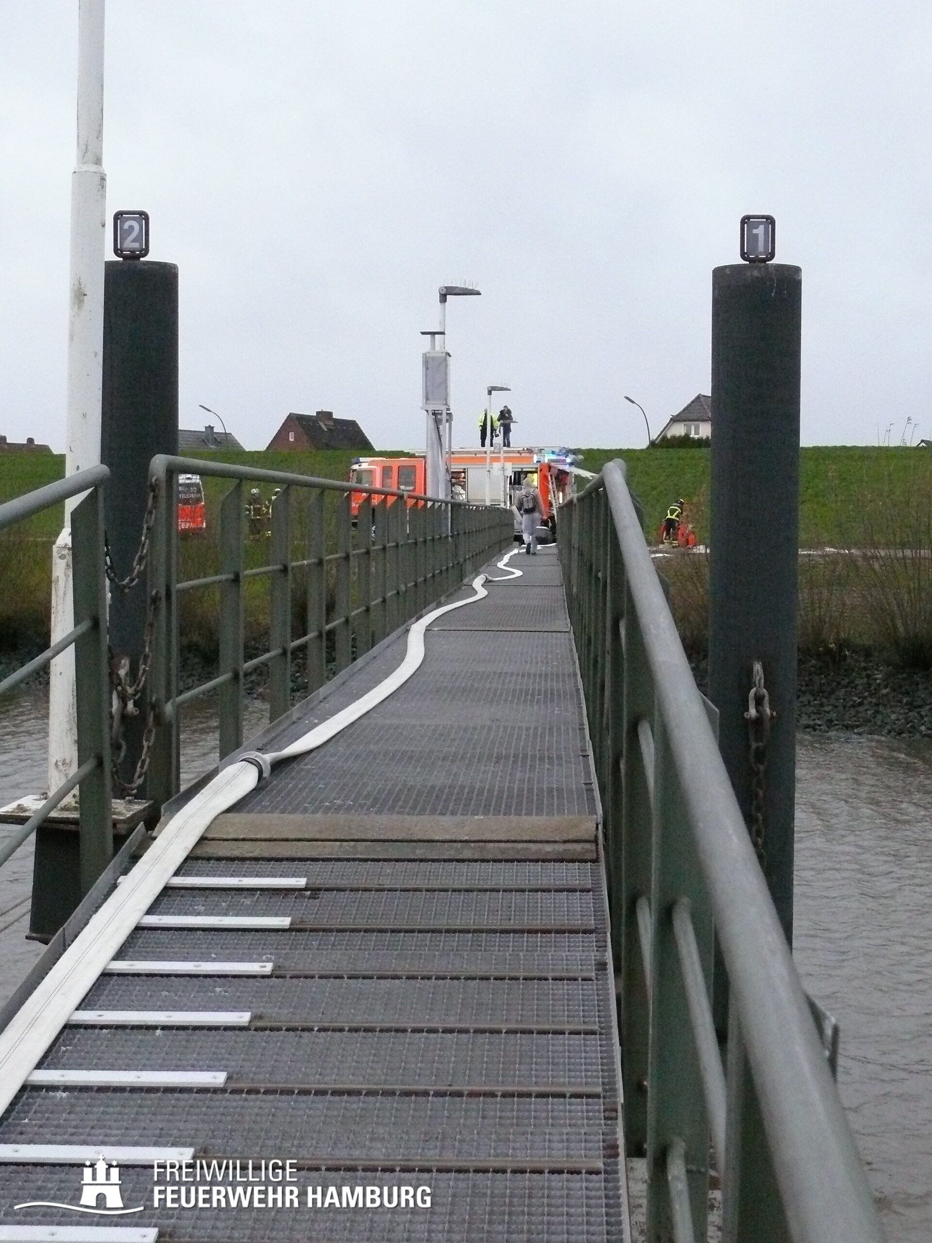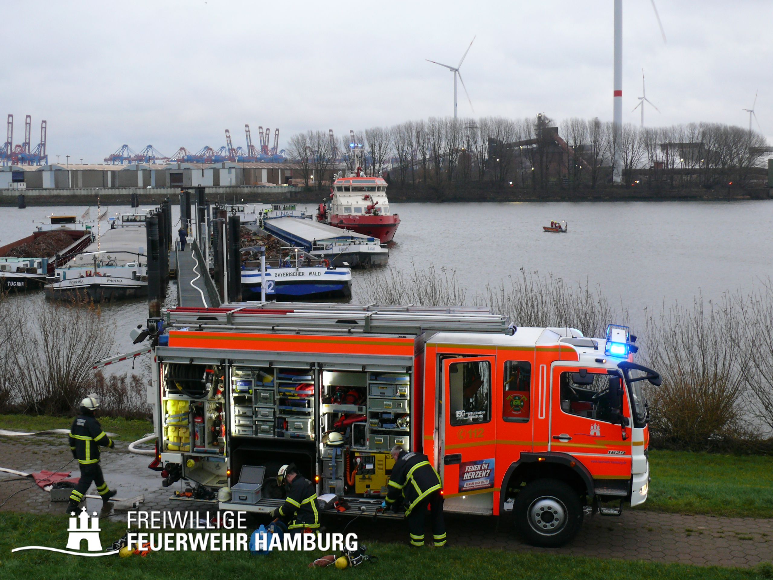 Zusammen mit den ersteintreffenden Kräften der Berufsfeuerwehr stellte die FF Finkenwerder eine Wasserversorgung über längere Wegstrecke sicher. Anschließend wurde nach Absprache mit dem Einsatzleiter mit der Brandbekämpfung unterstützt. Zeitgleich wurden die weiteren Kleinboote der FF Neuland und Cranz in Bereitschaft gehalten.