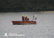 FF mit Kleinbooten im Einsatz bei Brand auf Binnenschiff