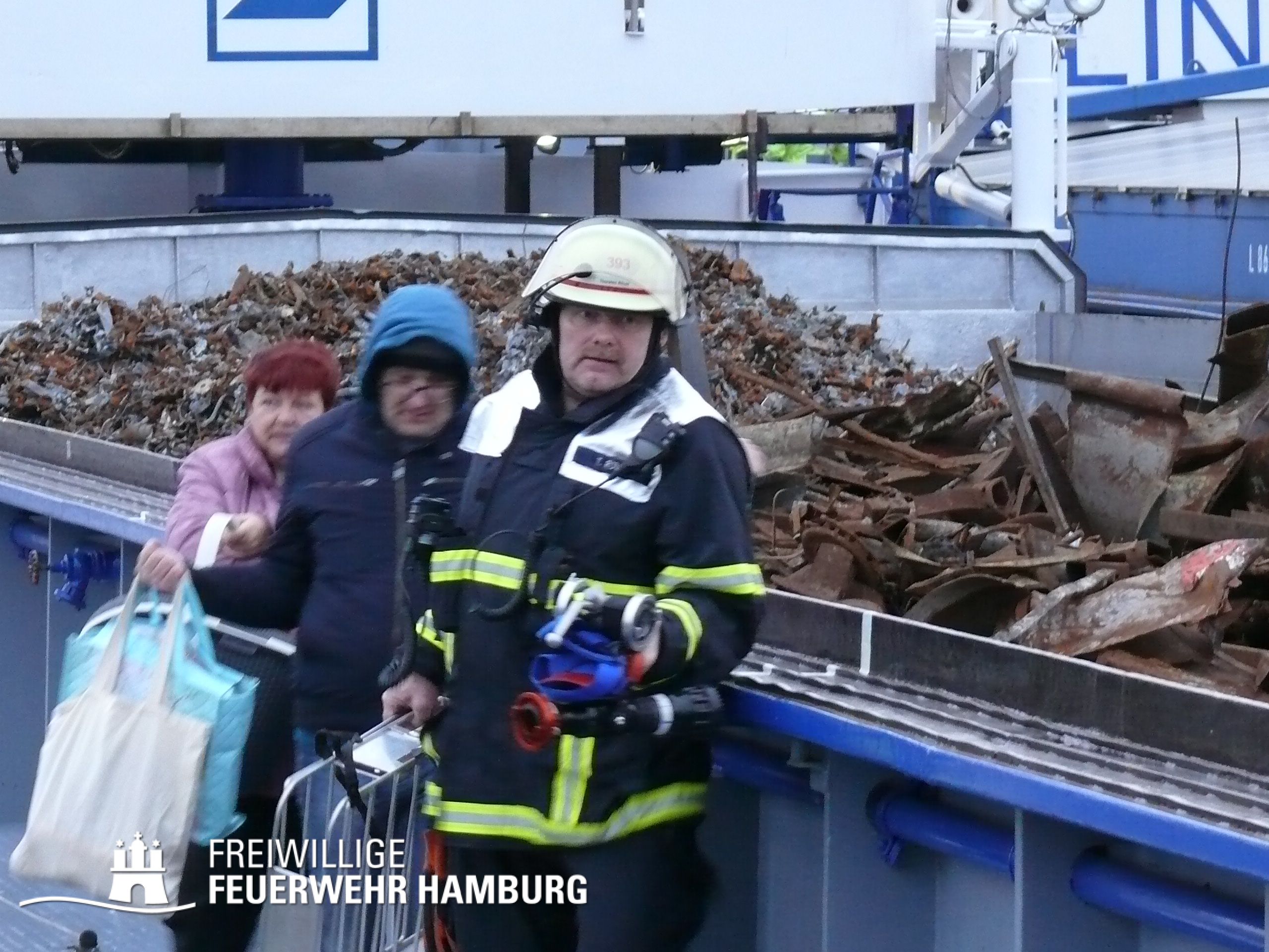 Der Bereichsführer Unterelbe koordinierte bis zum Einsatzende zusammen mit dem B-Dienst der Berufsfeuerwehr den Einsatz an Bord.