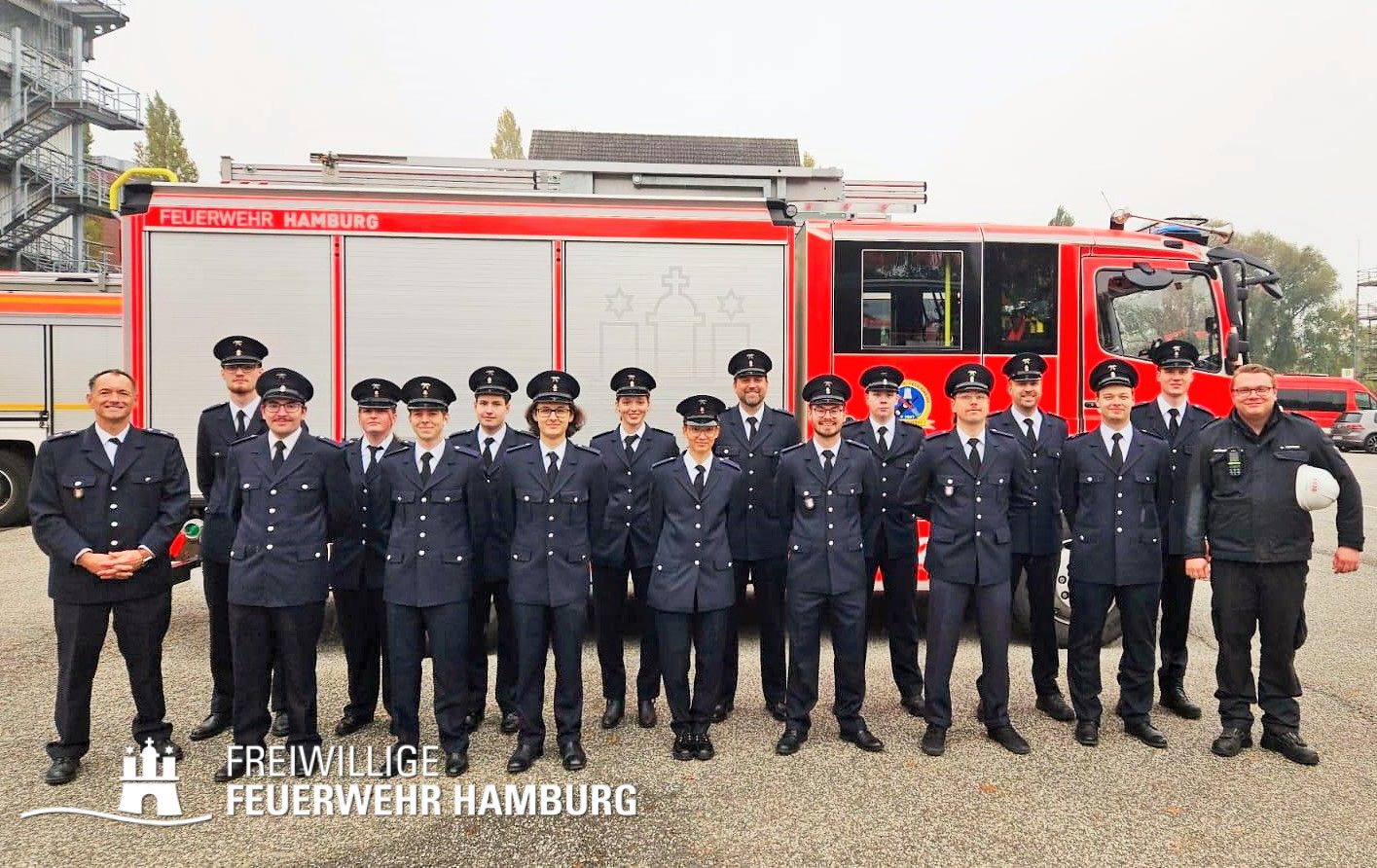 Insgesamt 4 Kameradinnen und 14 Kameraden aus dem Bereich Eimsbüttel haben die abschließende Prüfung für die Grundausbildung an der Feuerwehrakademie Hamburg bestanden.