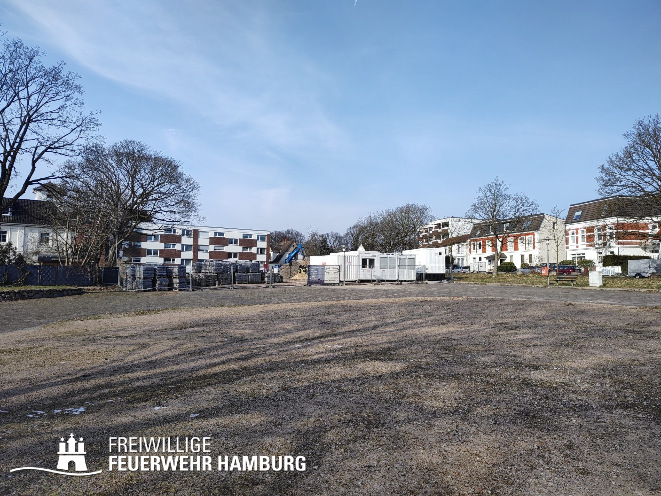 Blick vom Steinbeker Marktplatz auf den Bauplatz