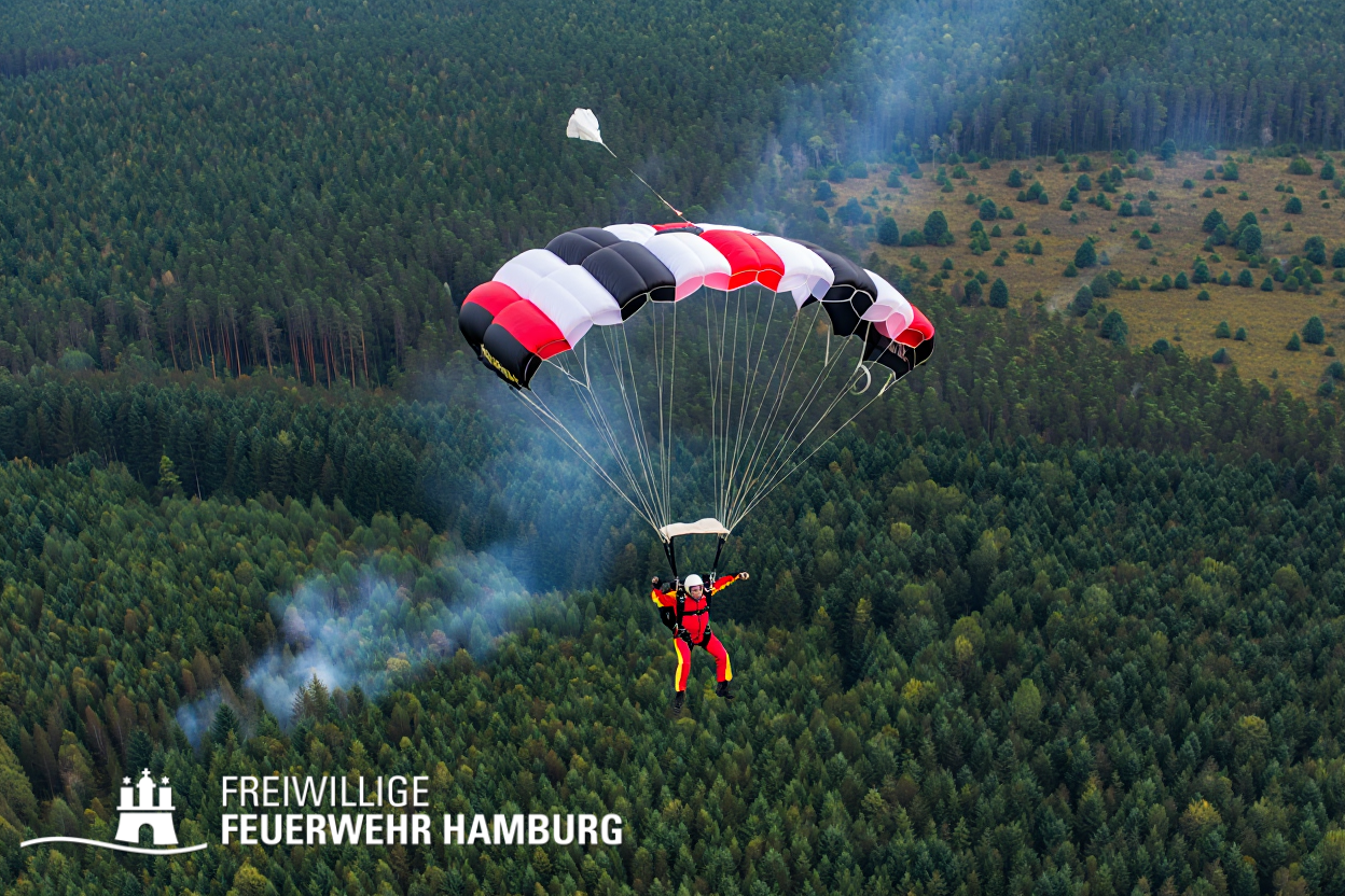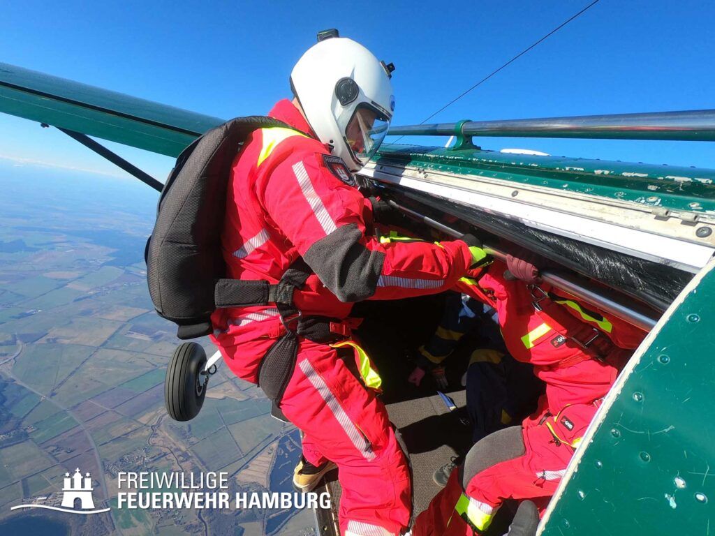 Das Besondere am Flugdienst der Feuerwehr Hamburg ist, dass sich die Einheit aus Piloten und Feuerspringern zusammensetzt. Letztere sind vergleichbar mit den aus den USA oder Kanada bekannten Smokejumpers. Am vergangenen Wochenende fanden die letzten Testsprünge statt, um nun vollständig einsatzbereit zu sein.