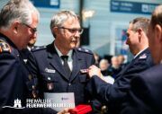 Der Schweigeminute folgten das Grußwort und der Jahresbericht von Landesbereichsführer Harald Burghart. Er zeigte noch einmal auf, welche besonderen Ereignisse die Freiwillige Feuerwehr Hamburg im vergangenen Jahr ehrenamtlich und unentgeltlich begleitet hat. Darunter neben dem allgemeinen „Tagesgeschäft“ einer Großstadtfeuerwehr mehrere unwetterbedingte Einsatzlagen, aber auch die über mehrere Wochen andauernde Fußball-Europameisterschaft. Auch thematisiert wurde die stetige Modernisierung der Freiwilligen Feuerwehren in Hamburg – sowohl im Hinblick auf den Fuhrpark mit mehr als 40 neuen Einsatzfahrzeugen als auch hinsichtlich Neu- und Umbauten an den Standorten einzelner Wehren. Jedoch gab es nicht nur positives zu vermelden – auch Verbesserungspotentiale und Schwierigkeiten für die Freiwillige Feuerwehr Hamburg wurden aufgezeigt. Auf den Landesbereichsführer Harald Burghart folgte der Redebeitrag von Landesjugendfeuerwehrwehrwart Kai Winter. Er stellte das vergangene Jahr noch einmal aus Sicht des Feuerwehr-Nachwuchses dar. Besonders hervorzuheben ist dabei die Beschaffung und Übergabe mehrerer neuer Mannschaftstransportfahrzeuge, welche den Jugenfeuerwehren nun zur Verfügung stehen.