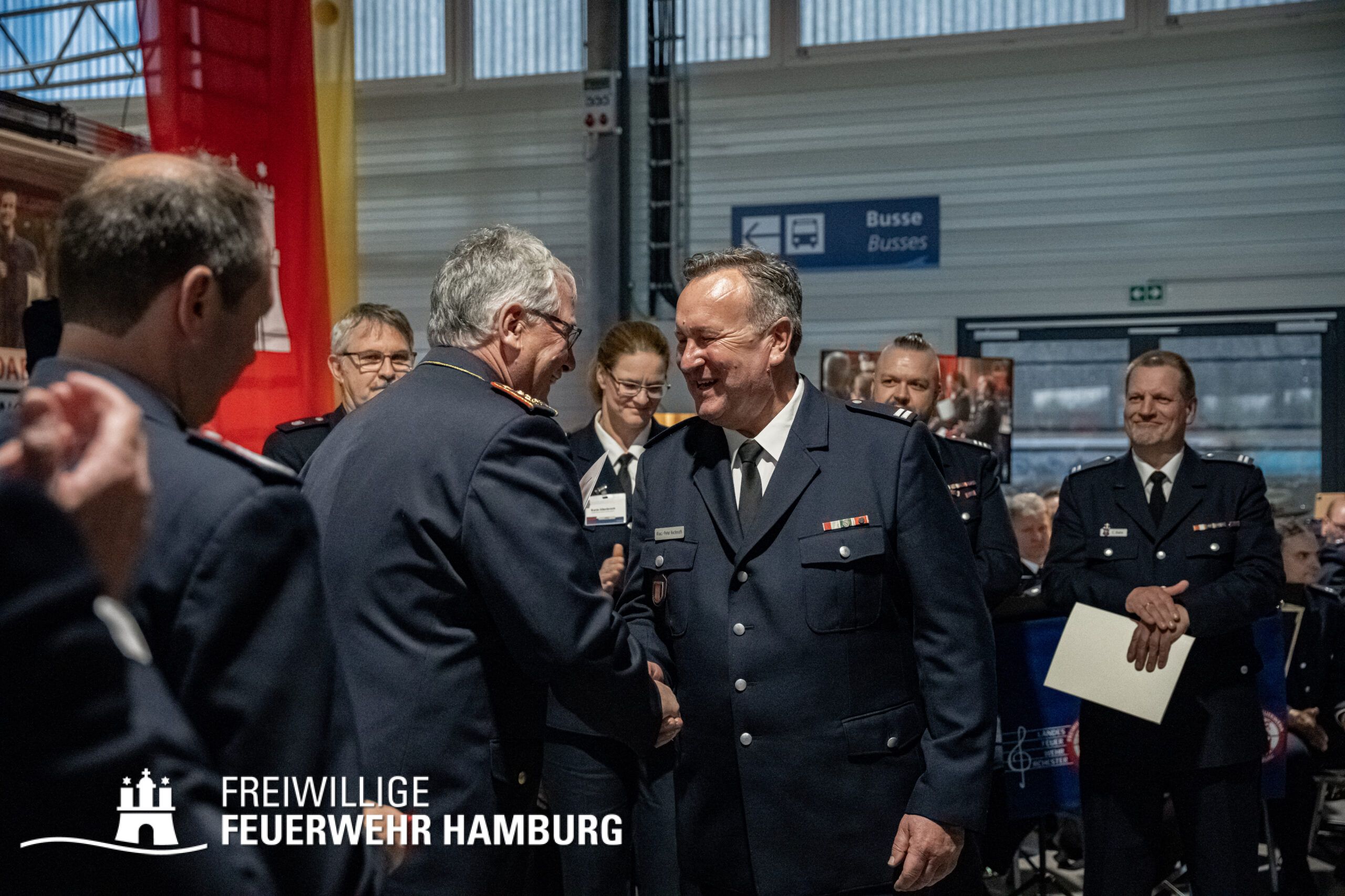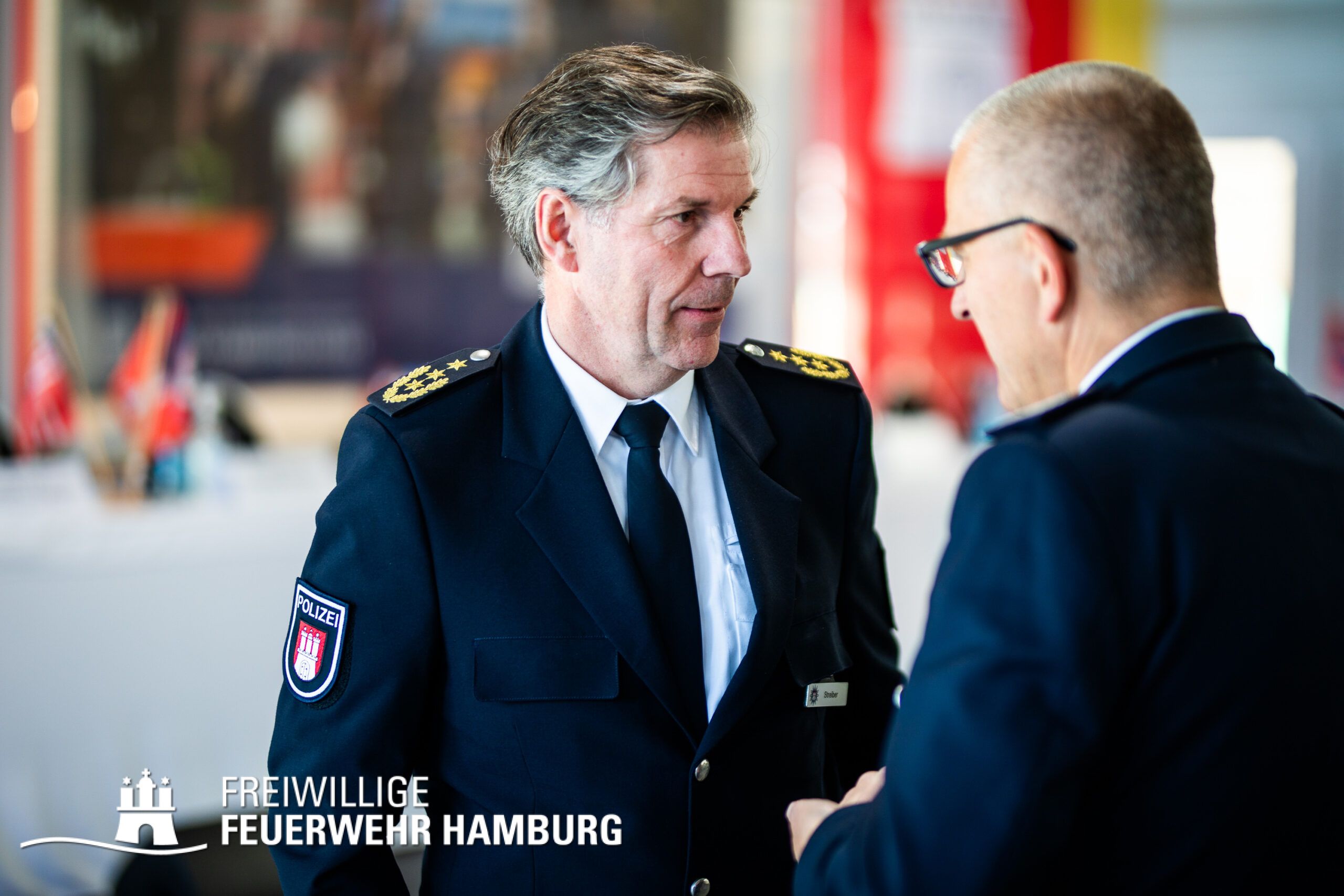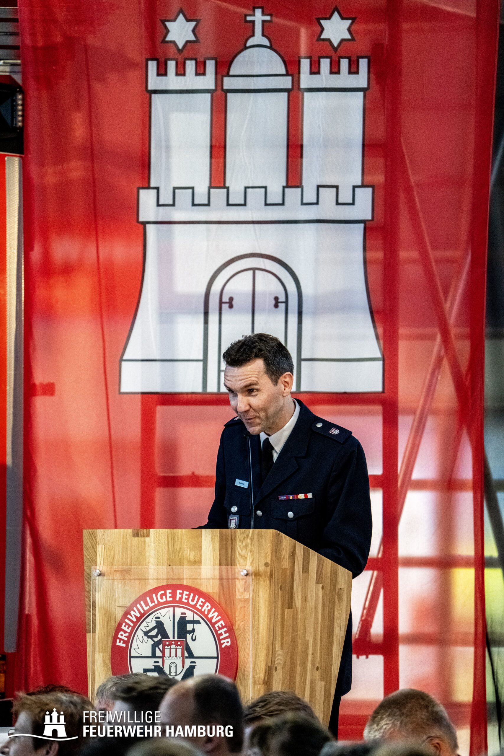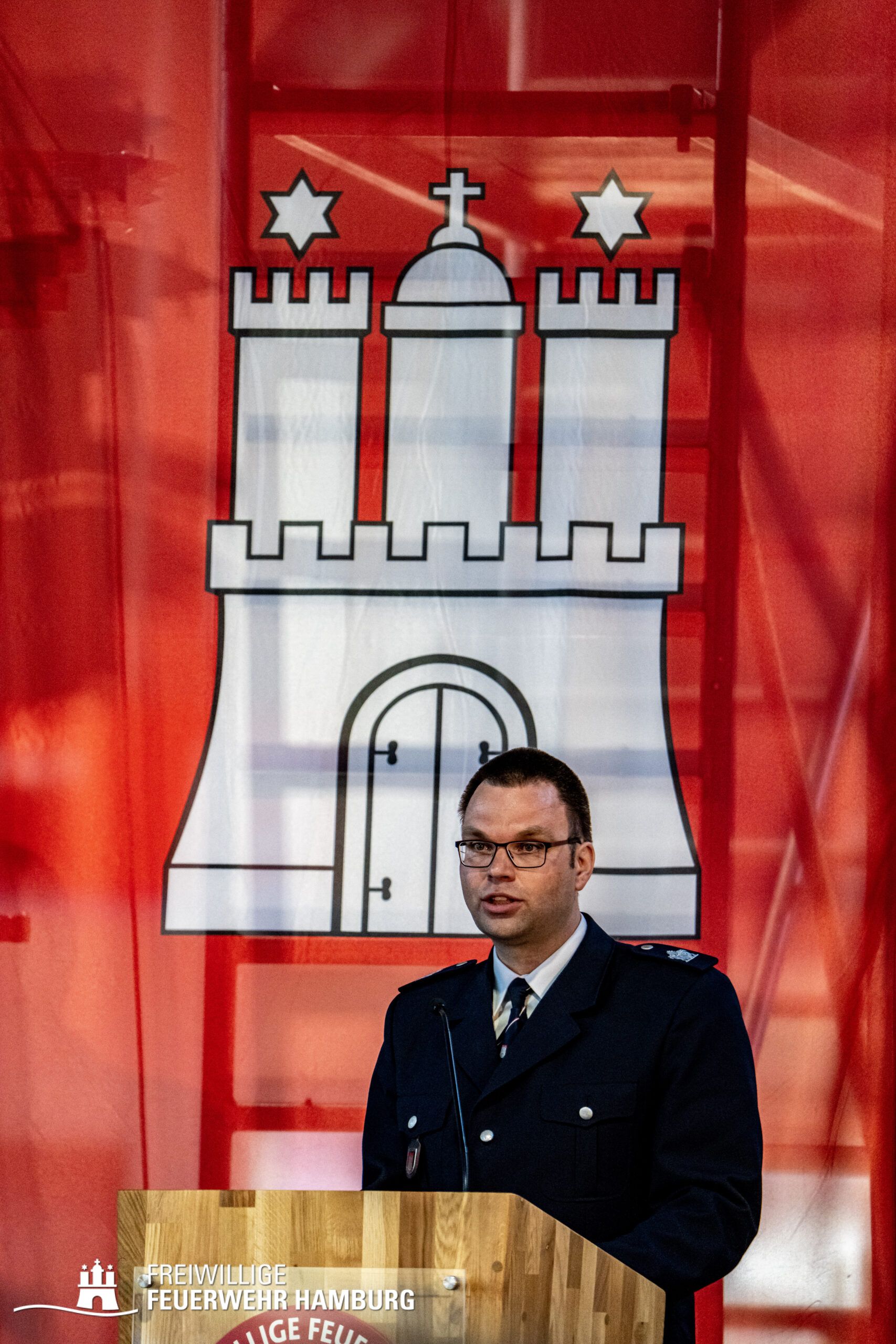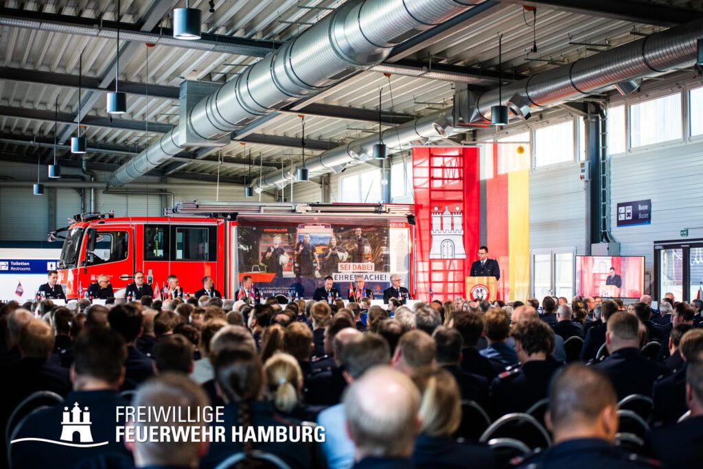 Ebenso zu Wort kamen Innensenator Andy Grote, der Amtsleiter der Feuerwehr Hamburg Jörg Sauermann sowie der Präsident des Deutschen Feuerwehrverbandes Karl-Heinz Banse. Sie alle unterstrichen den Stellenwert, den eine Freiwillige Feuerwehr auch in einer modernen Großstadt wie Hamburg hat. Dabei stehen neben der Einsatzbereitschaft zur Hilfe in der Not auch insbesondere das ehrenamtliche und bürgerliche Engagement zur Stärkung des sozialen Zusammenhalts in den Stadtteilen sowie die Förderung demokratischer Werte im Vordergrund.