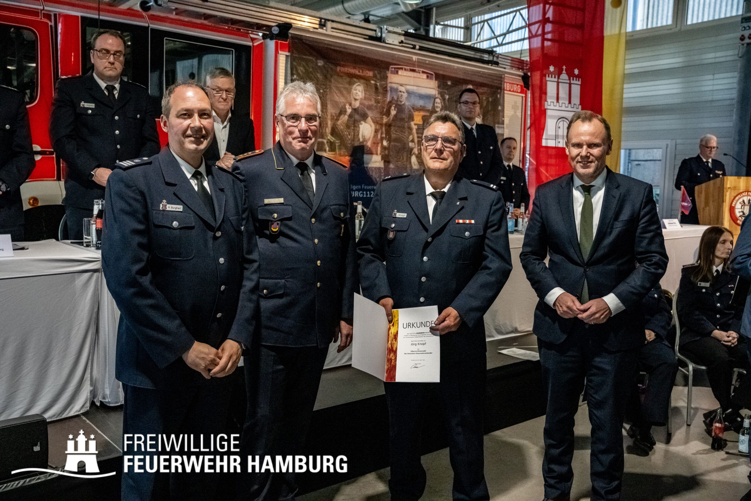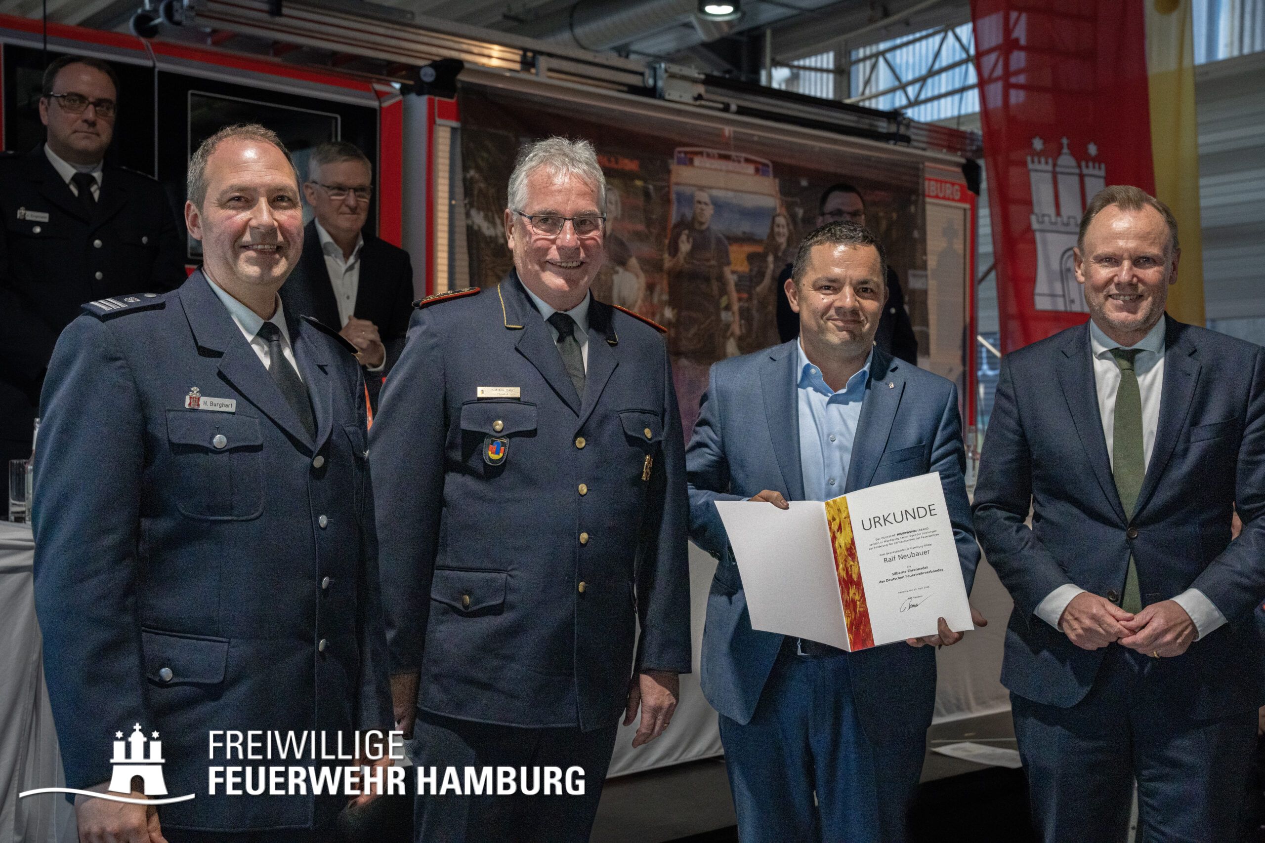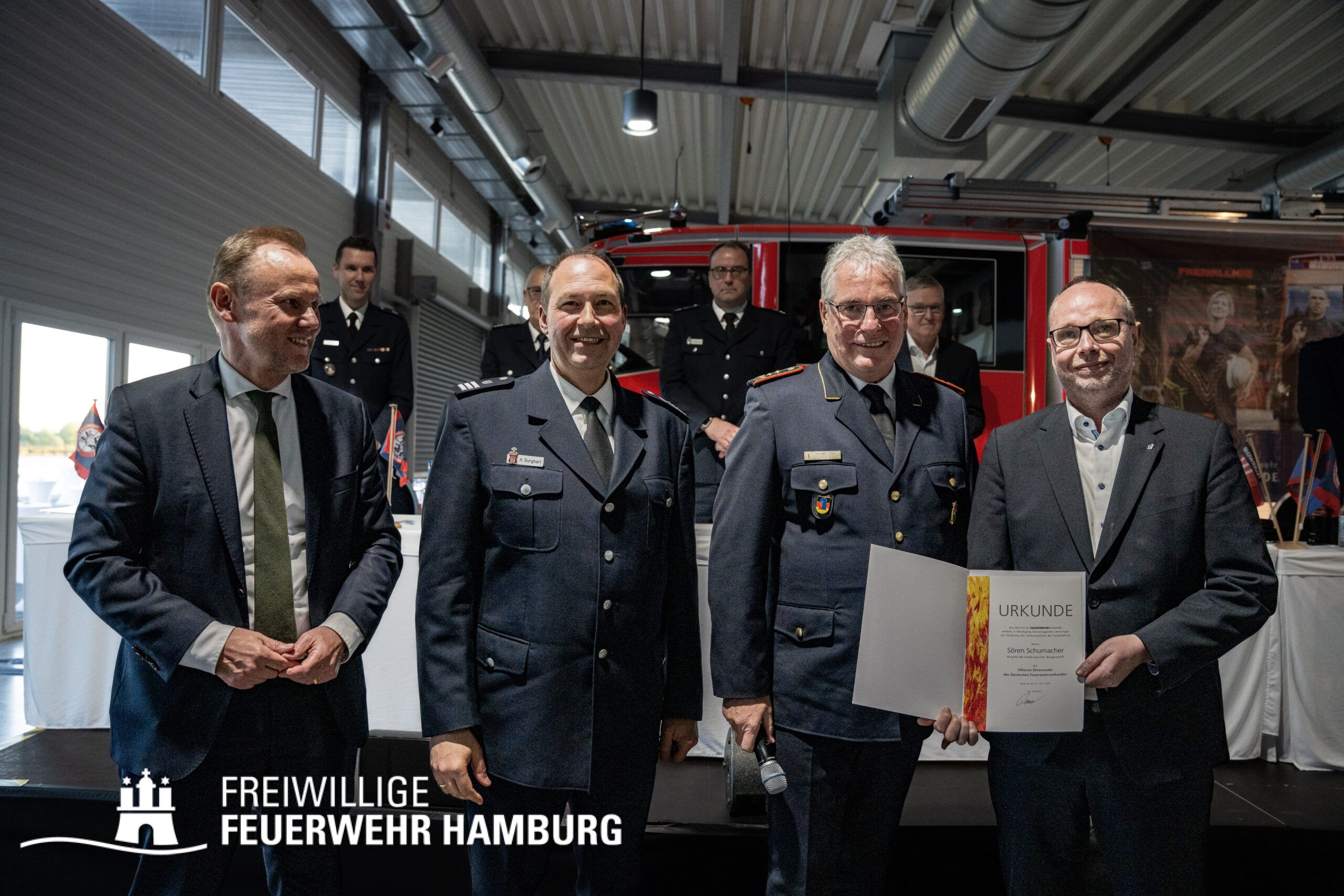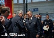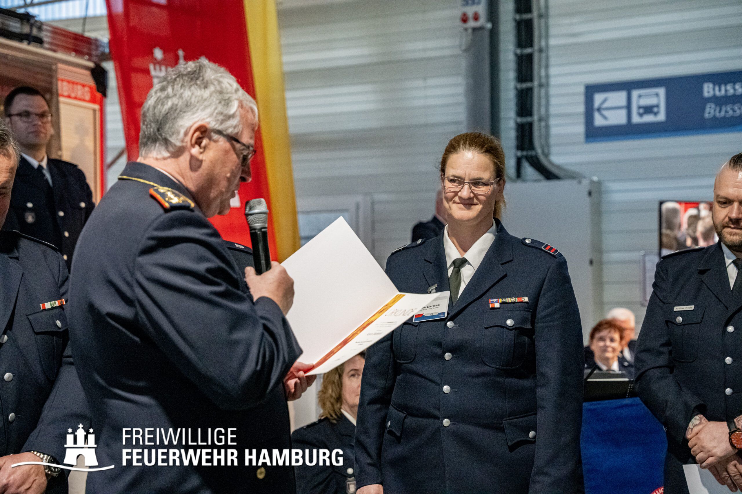 Ebenso zu Wort kamen Innensenator Andy Grote, der Amtsleiter der Feuerwehr Hamburg Jörg Sauermann sowie der Präsident des Deutschen Feuerwehrverbandes Karl-Heinz Banse. Sie alle unterstrichen den Stellenwert, den eine Freiwillige Feuerwehr auch in einer modernen Großstadt wie Hamburg hat. Dabei stehen neben der Einsatzbereitschaft zur Hilfe in der Not auch insbesondere das ehrenamtliche und bürgerliche Engagement zur Stärkung des sozialen Zusammenhalts in den Stadtteilen sowie die Förderung demokratischer Werte im Vordergrund.