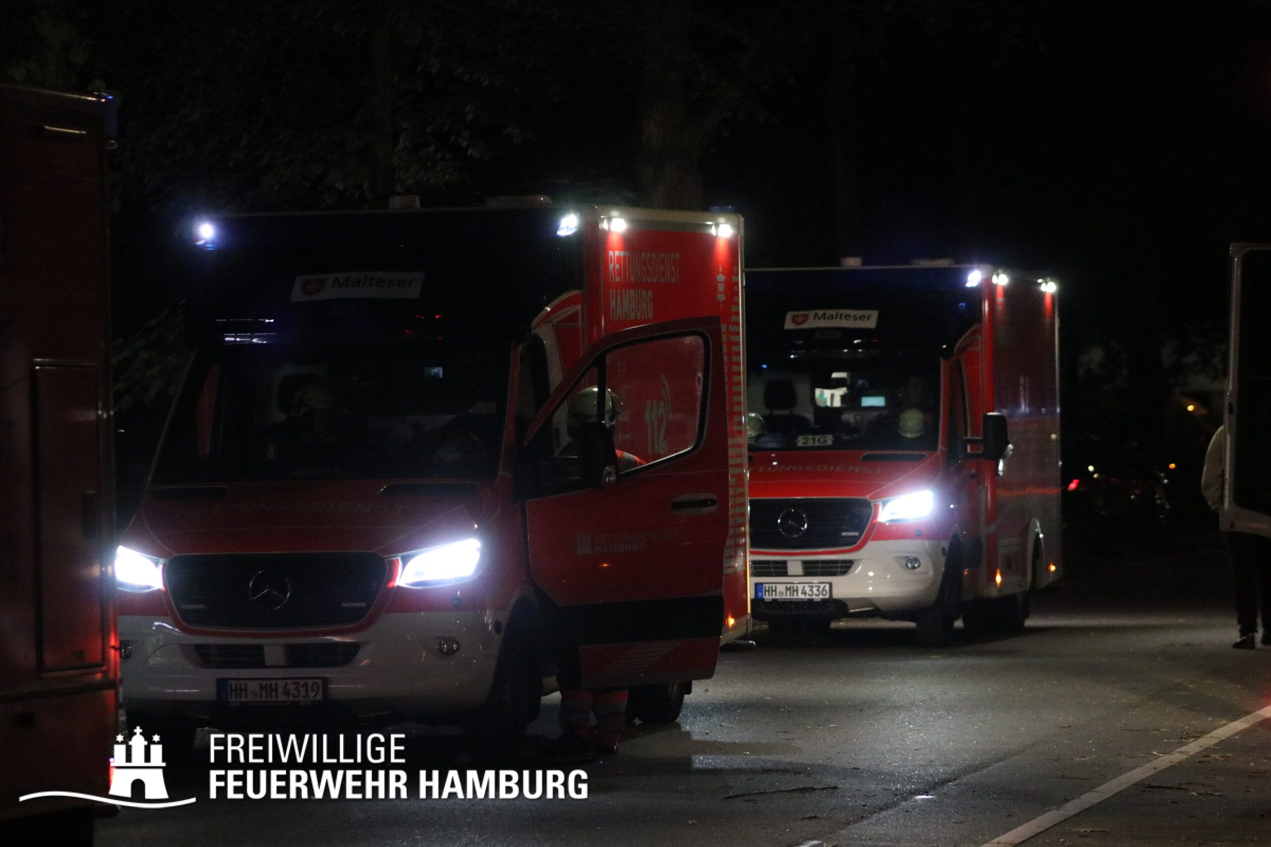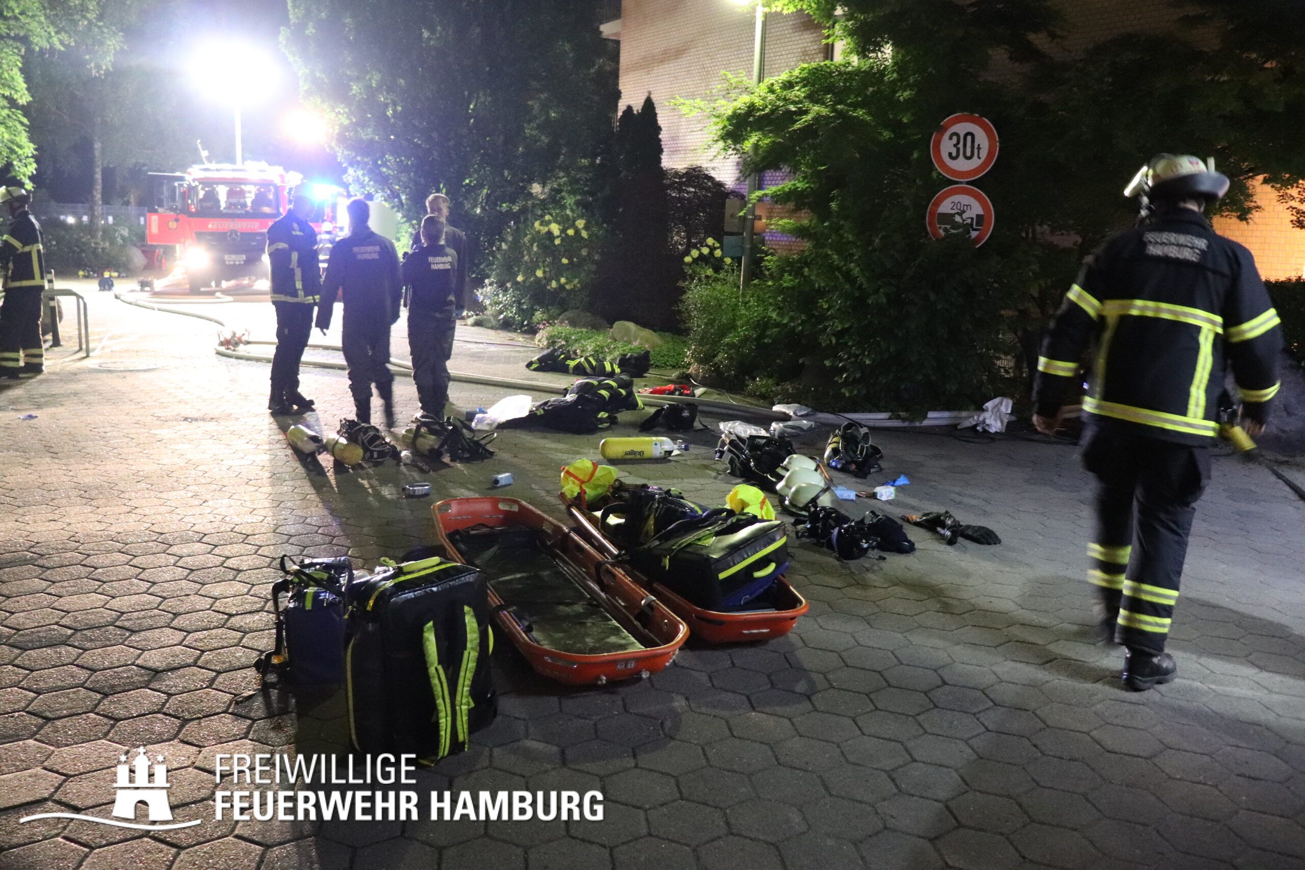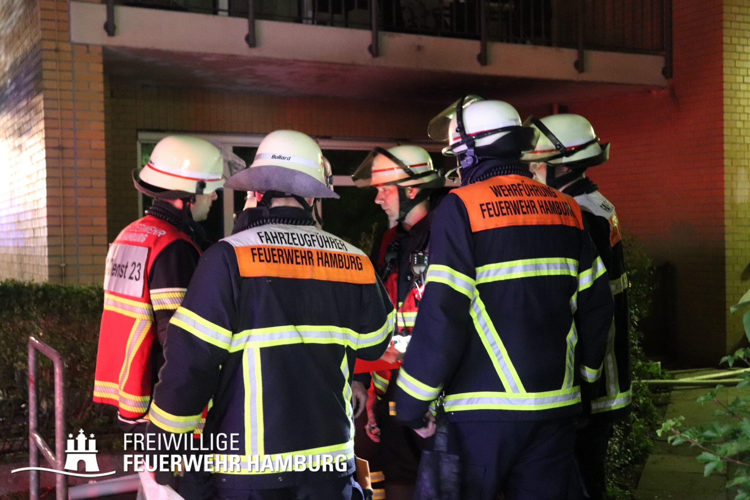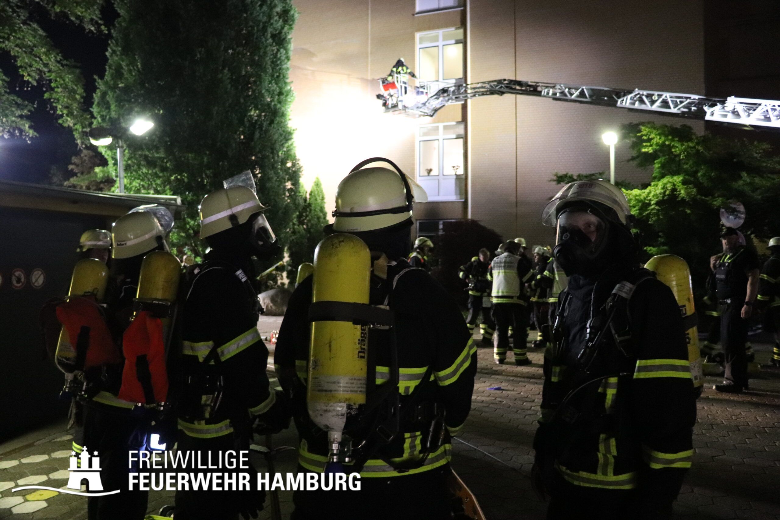 Aufgrund dieser Lage vor Ort erhöhte der Einsatzleiter der Feuerwehr Hamburg das Alarmstichwort auf FEU4MANV25 (Feuer, 4 Löschzüge und Massenanfall von mindestens 25 Verletzten) und forderte weitere Löschzüge sowie eine Vielzahl an Rettungsdienstkräften zur Unterstützung an. Innerhalb von Minuten machten sich diverse Rettungsdienstkräfte und Katastrophenschutzeinheiten der Hilfsorganisationen auf den Weg zur Einsatzstelle.