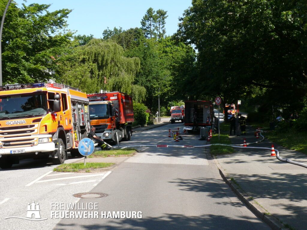 Zur Ablösung und für die Nachlöscharbeiten kamen die FFen Finkenwerder und Neuenfelde-Nord hinzu.