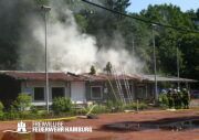Am Morgen des 12.06.25 meldeten Anrufende zuerst ein vermeintliches Kleinfeuer, was sich nach weiteren Anrufen als Brand eines Vereinsheim im Hamburger Süden entpuppte. Nach Eintreffen wurde auf Feuer 2. Alarm (FEU2) erhöht. Zusätzlich zu den initial alarmierten Freiwilligen Feuerwehren musste wegen der Bauweise ders Gebäudes im Laufe des Einsatzes umfassend nachalarmiert werden.