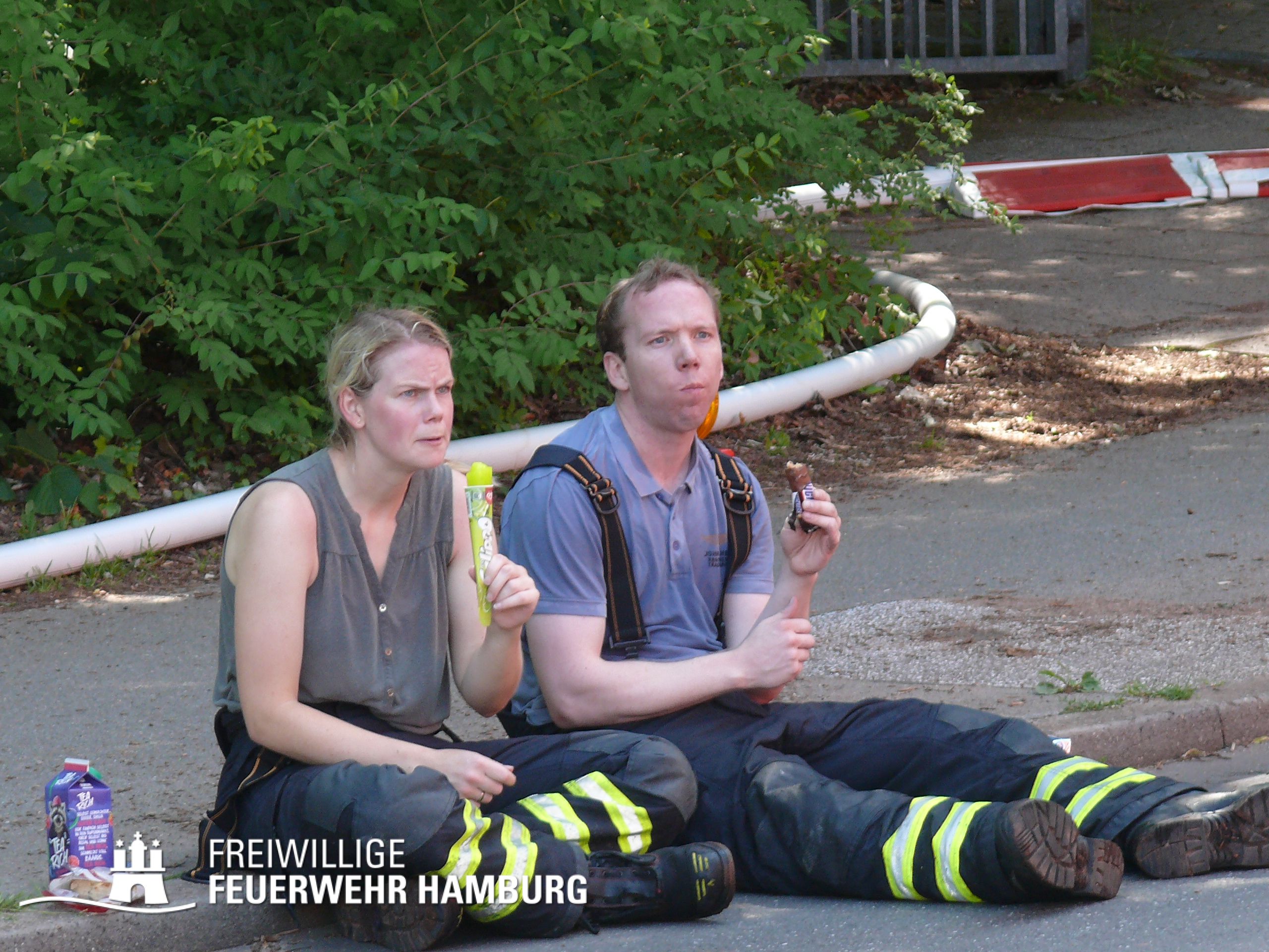 Zur Ablösung und für die Nachlöscharbeiten kamen die FFen Finkenwerder und Neuenfelde-Nord hinzu.