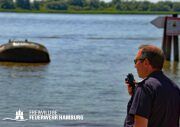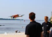 Die zweite Übung konzentrierte sich auf die Wasserrettung. Dabei sollten mit Hilfe der Drohnen treibende Körper im Wasser lokalisiert werden. Eine besondere Herausforderung stellte das sichere Fliegen der Drohnen trotz des gleichzeitig an der Übung beteiligten Polizeihubschraubers „Libelle“ dar. Zudem wurde das Starten der Drohnen von einem Boot geübt, was aufgrund der unebenen Startbedingungen auf dem Wasser zusätzliche Anforderungen an die Einsatzkräfte stellte.