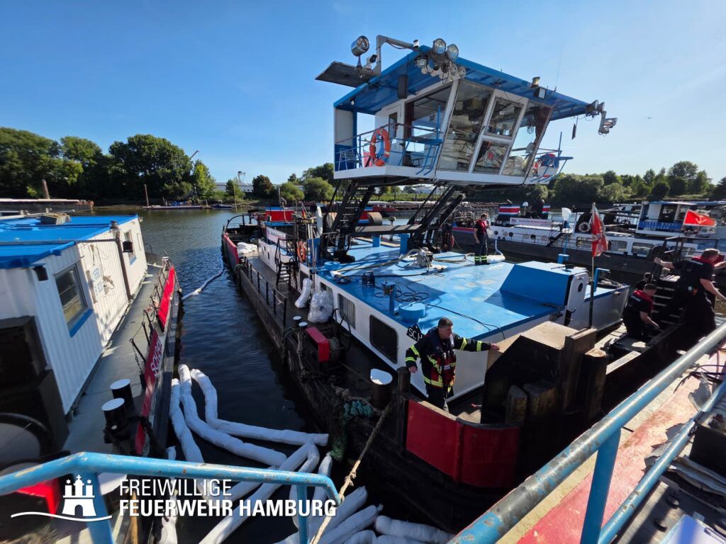 7 Wehren bei Austritt größere Menge Diesel aus einem Schubschiff im Hamburger Hafen gefordert