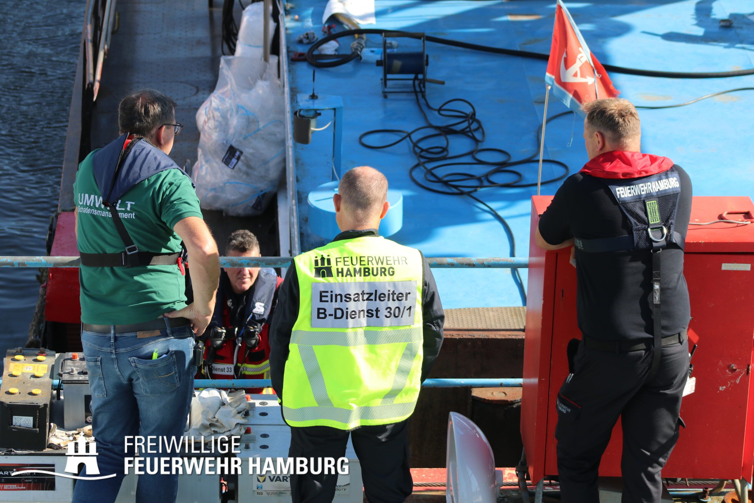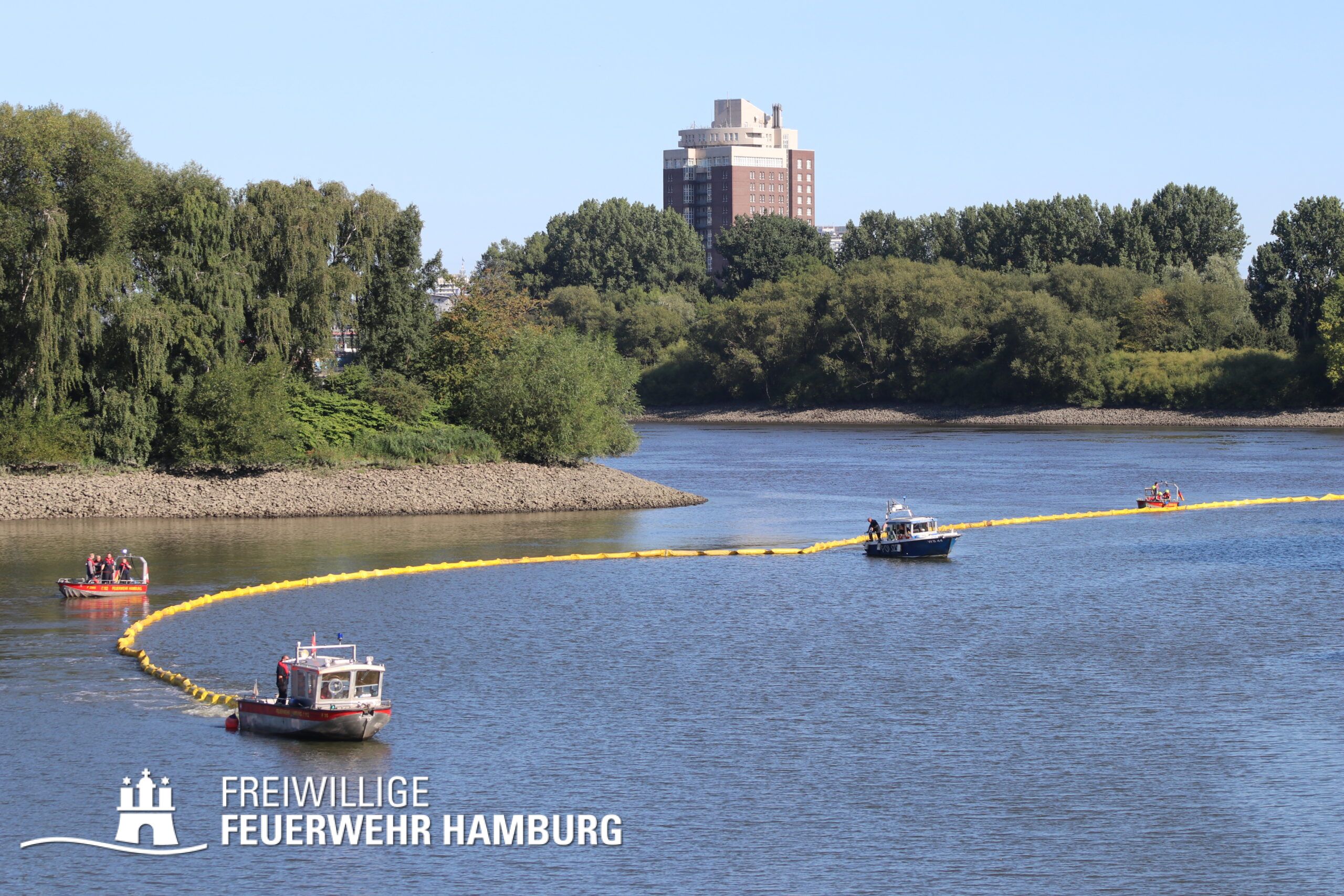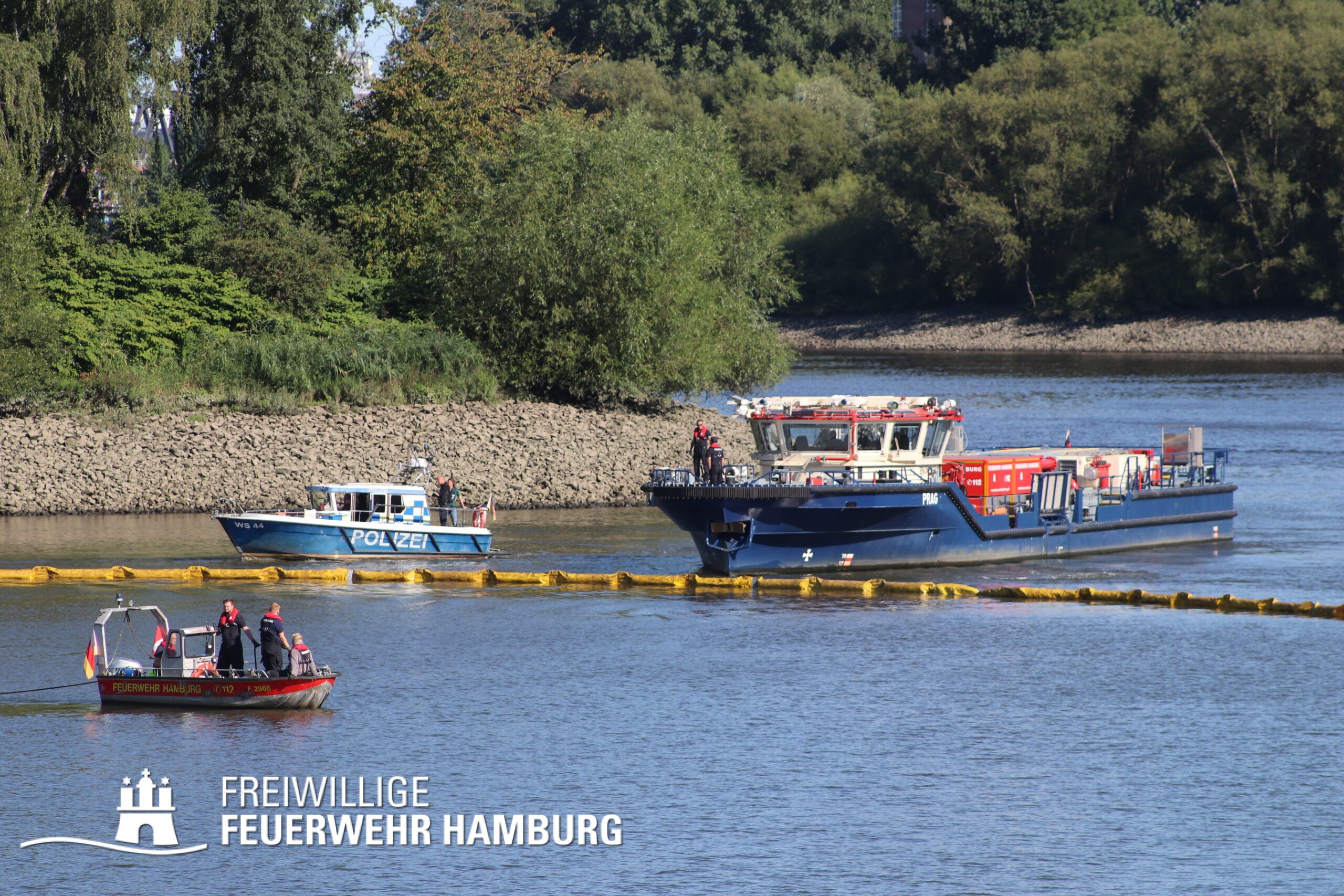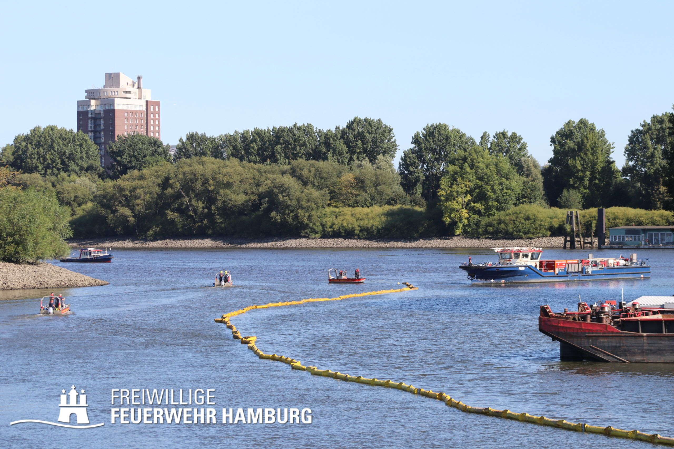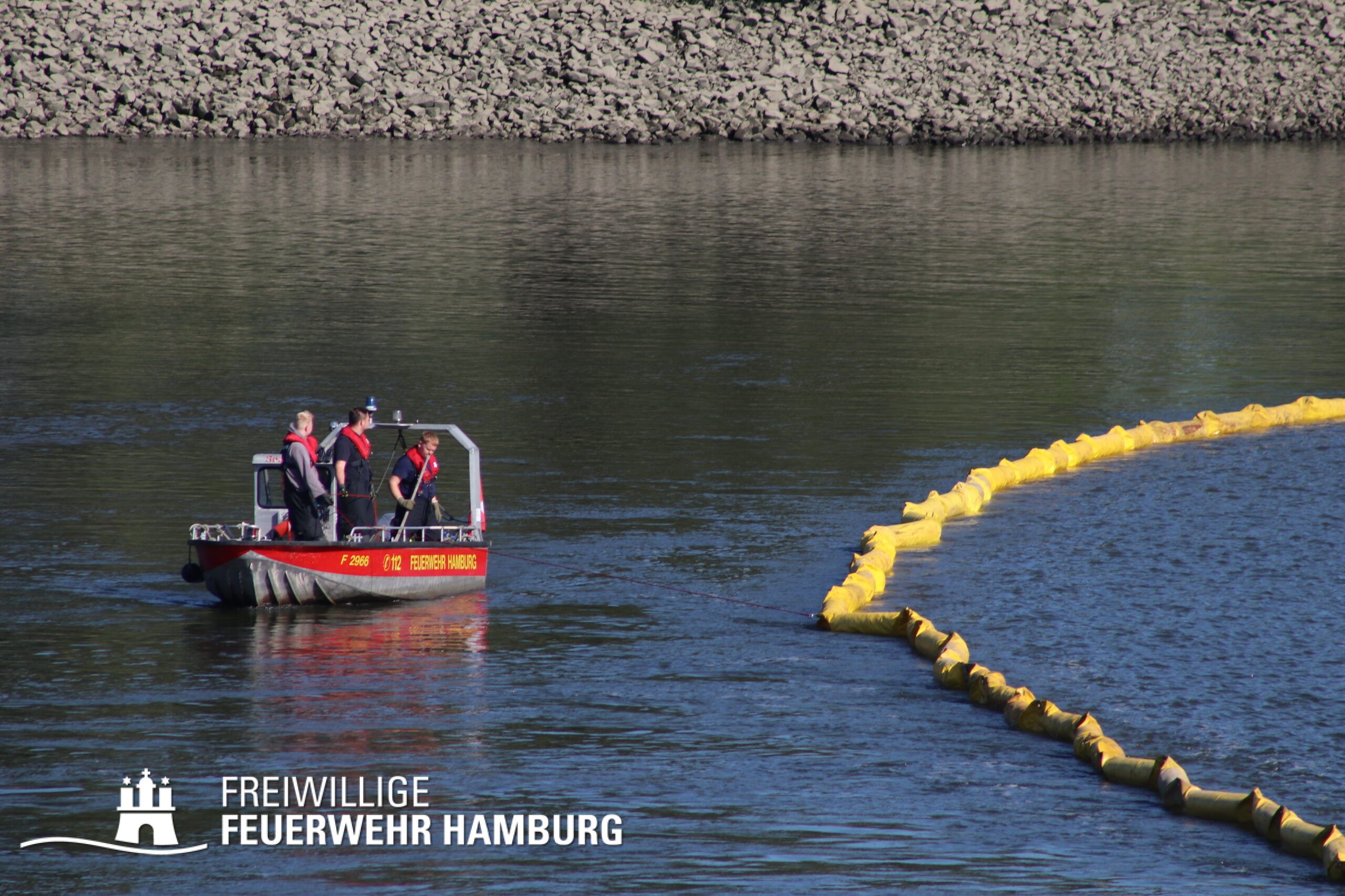 Bei dem Austritt von Diesel aus einem Schubschiff im Hamburger Hafen unterstützte die FF Hamburg mit 4 Kleinbooten bei dem auslegen von Ölsperren. Gemeinsam mit der Berufsfeuerwehr waren 7 Wehren bei diesem Einsatz gebunden.