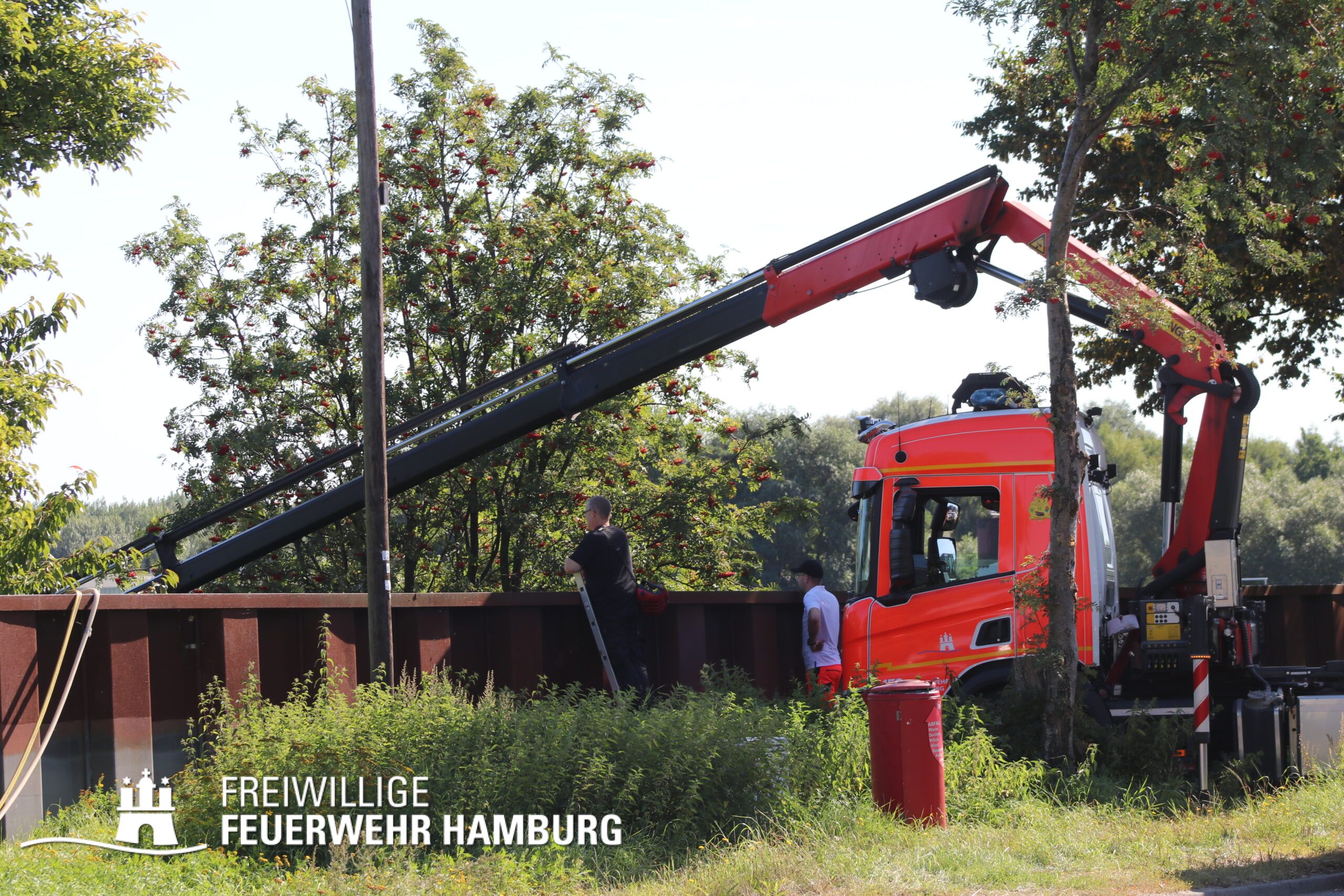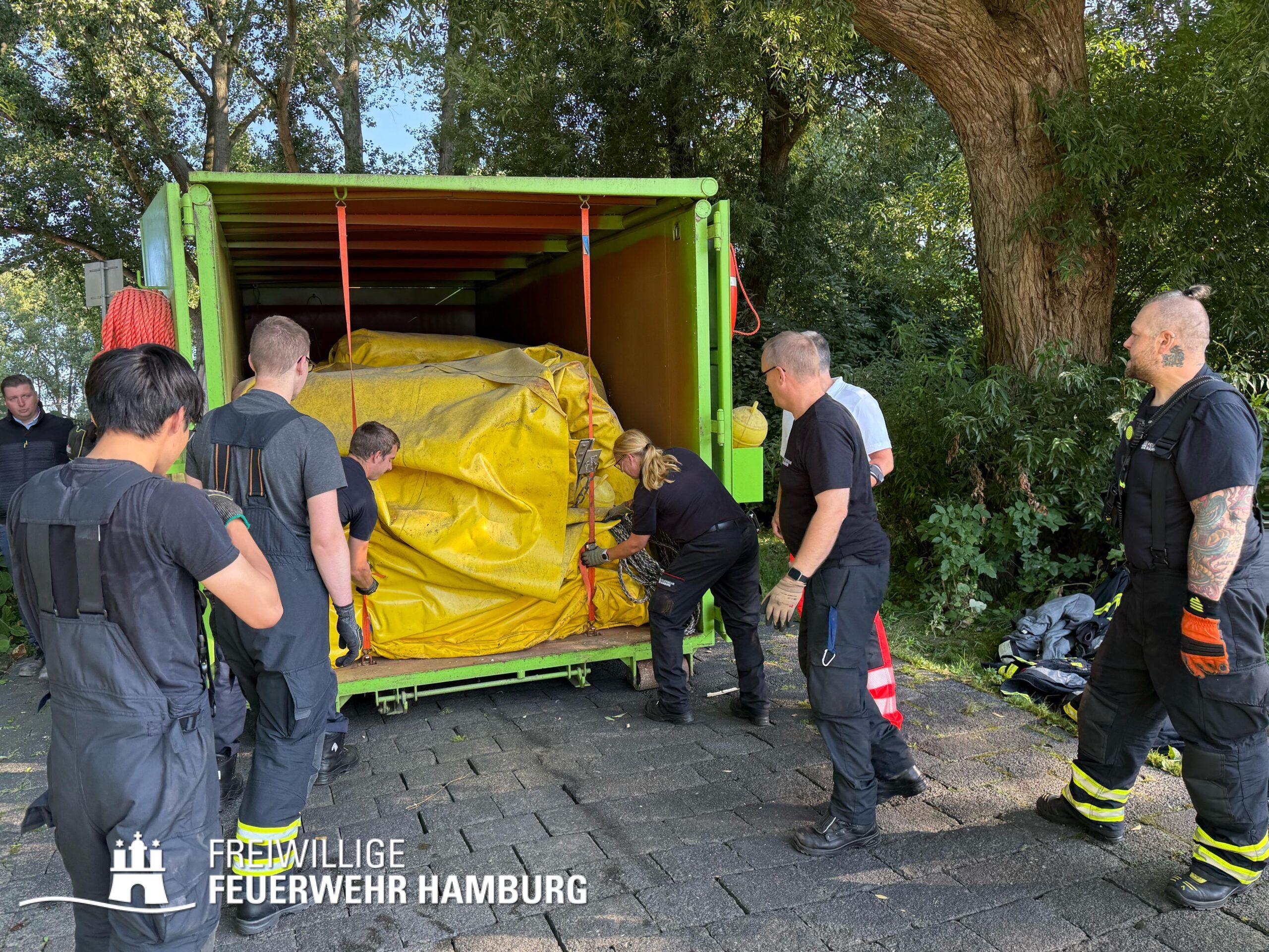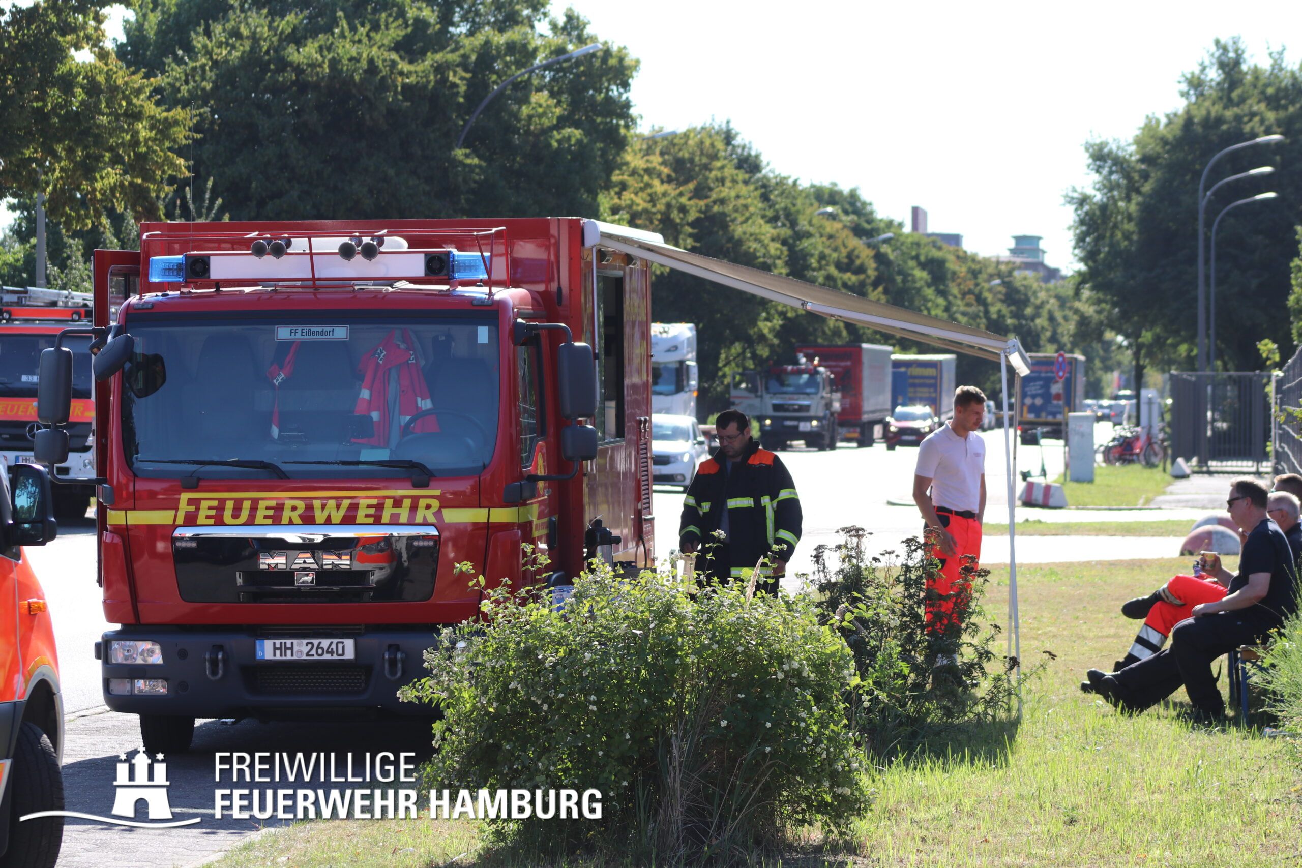 Die FF Billstedt-Horn sowie FF Moorburg unterstützten beim in Stellung bringen der Ölschlengel vom Land aus. Über die Kleinboote wurden diese dann in die Norderelbe gebracht und konnten so in den Peutehafen gezogen werden. Die FF Eissendorf stellte mit ihrem GW-Versorgung Getränke und Snacks für alle Einsatzkräfte zur Verfügung.