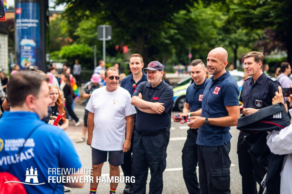 Organisiert wurde unser Auftritt vom Gleichstellungsbeauftragten der Feuerwehr Hamburg sowie dem Netzwerk Vielfalt – ein starkes Team, das Vielfalt nicht nur thematisiert, sondern aktiv lebt. Mit dabei waren auch geschätzte Gäste des Verbands der Feuerwehren in NRW, der Berufsfeuerwehr München und der Berliner Feuerwehr – ein eindrucksvolles Zeichen bundesweiter Solidarität im Einsatz für Respekt und Gleichberechtigung.
