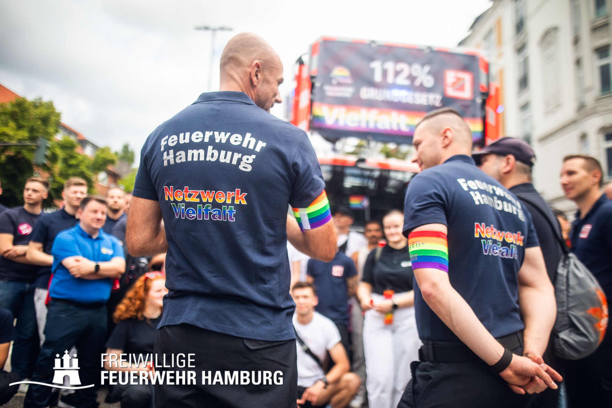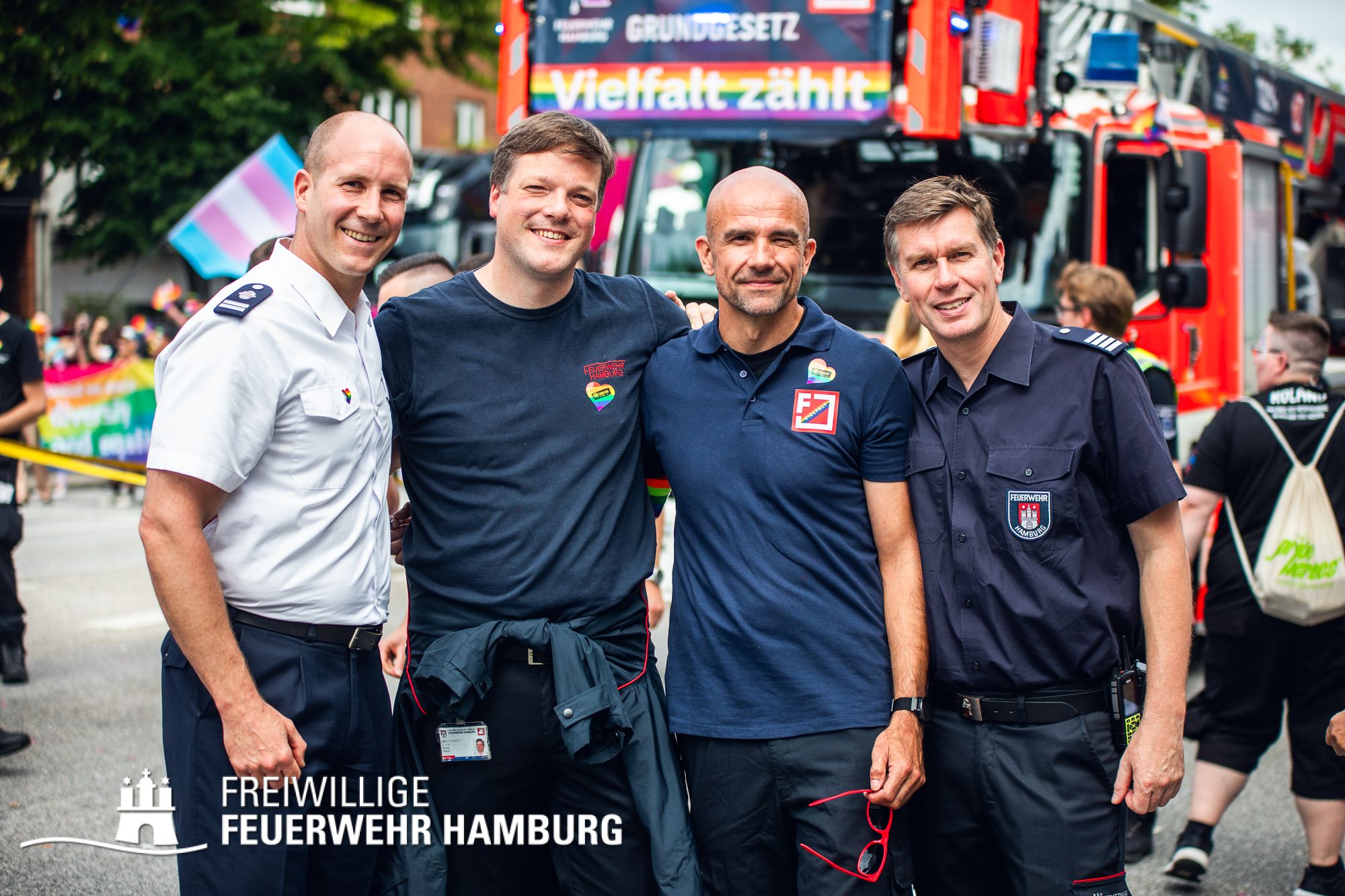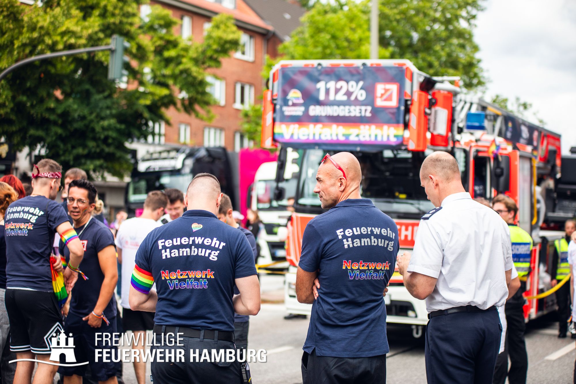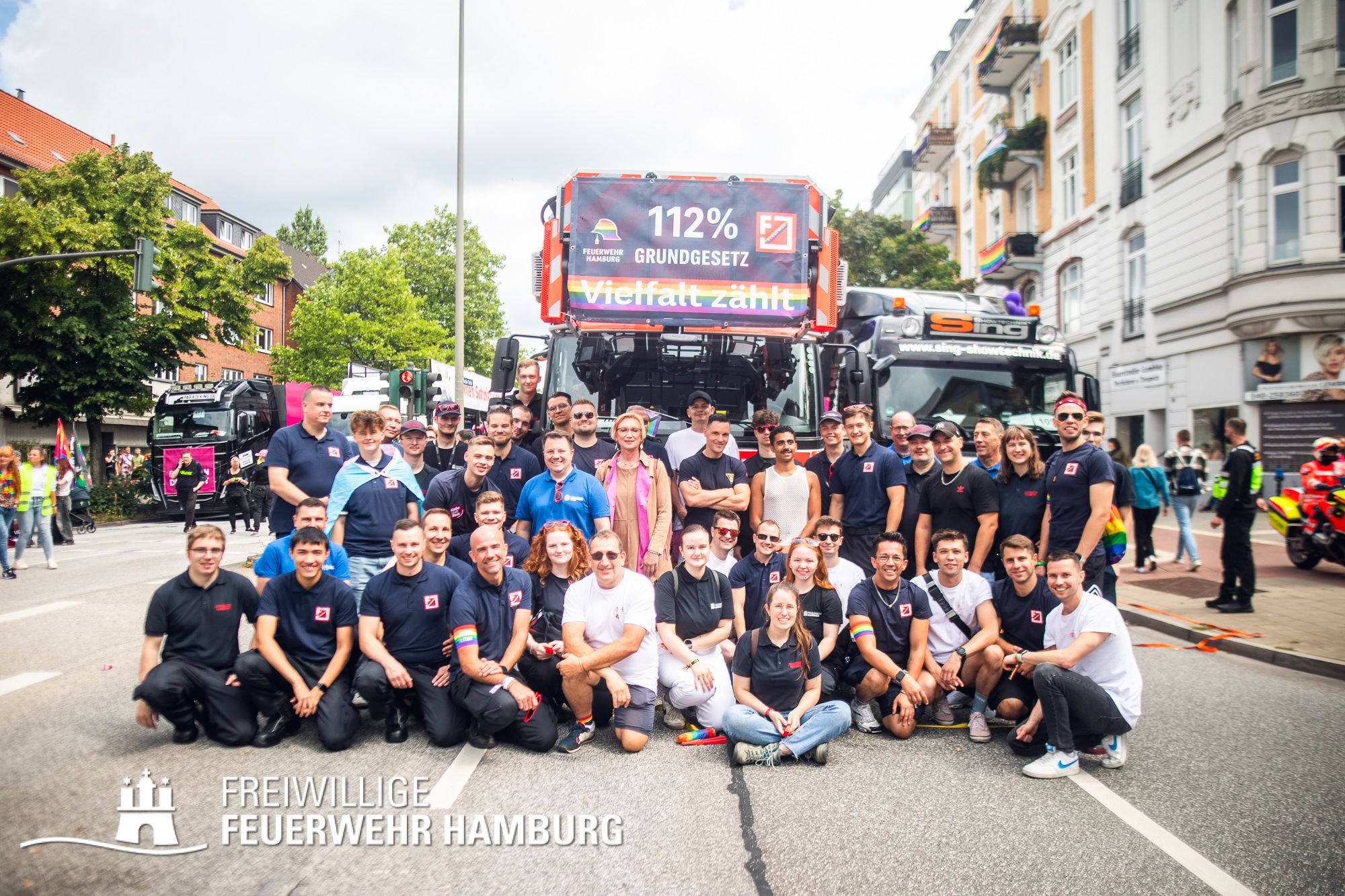 Die Feuerwehr Hamburg steht für Einsatz, Zusammenhalt und Respekt – unabhängig von Herkunft, Identität oder Liebe. Als Team setzen wir uns täglich für die Sicherheit der Stadt ein – und ebenso klar für Menschenrechte und Vielfalt. 112 % für das Grundgesetz – das ist nicht nur ein Motto, sondern unsere Haltung.
