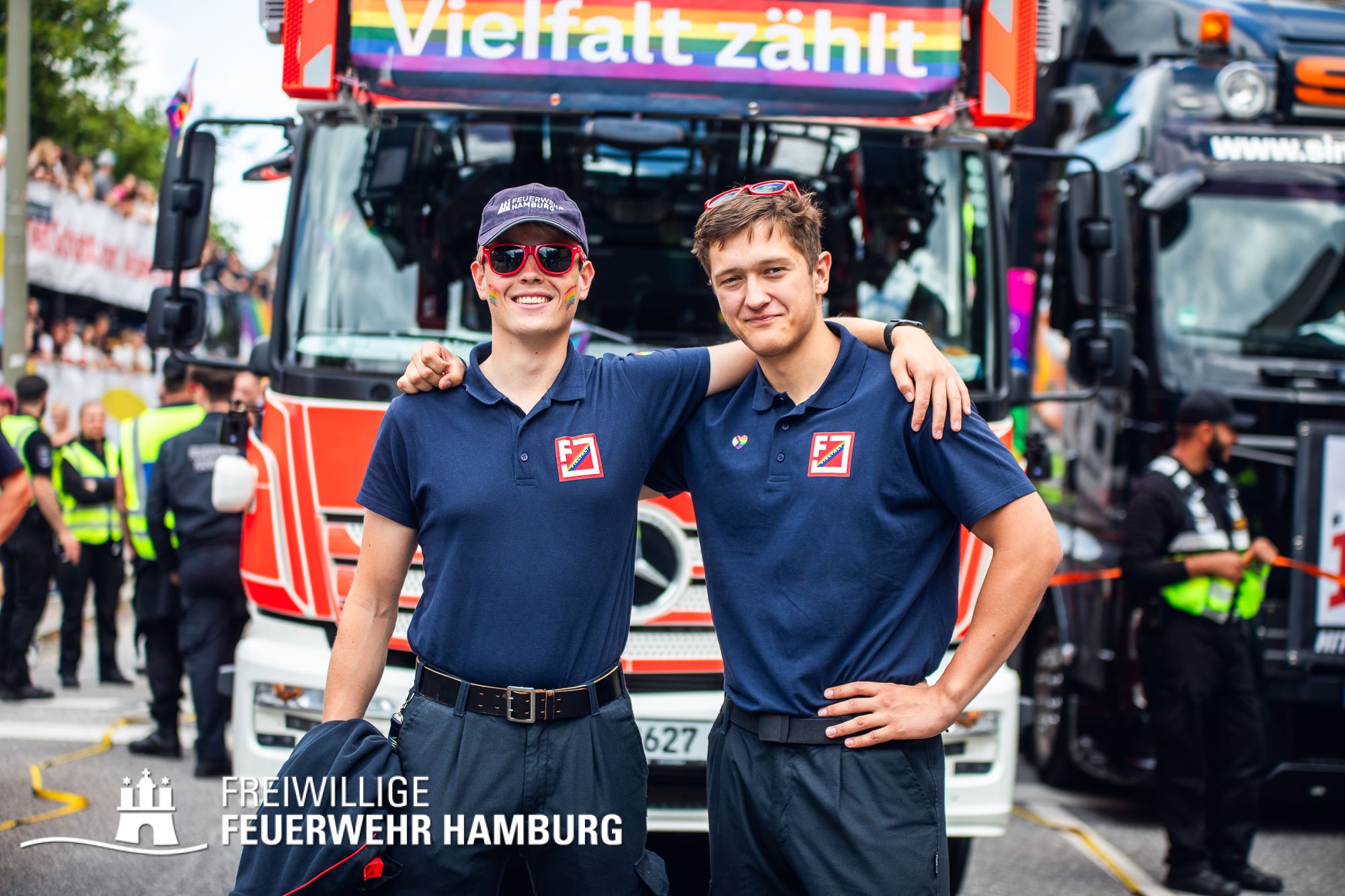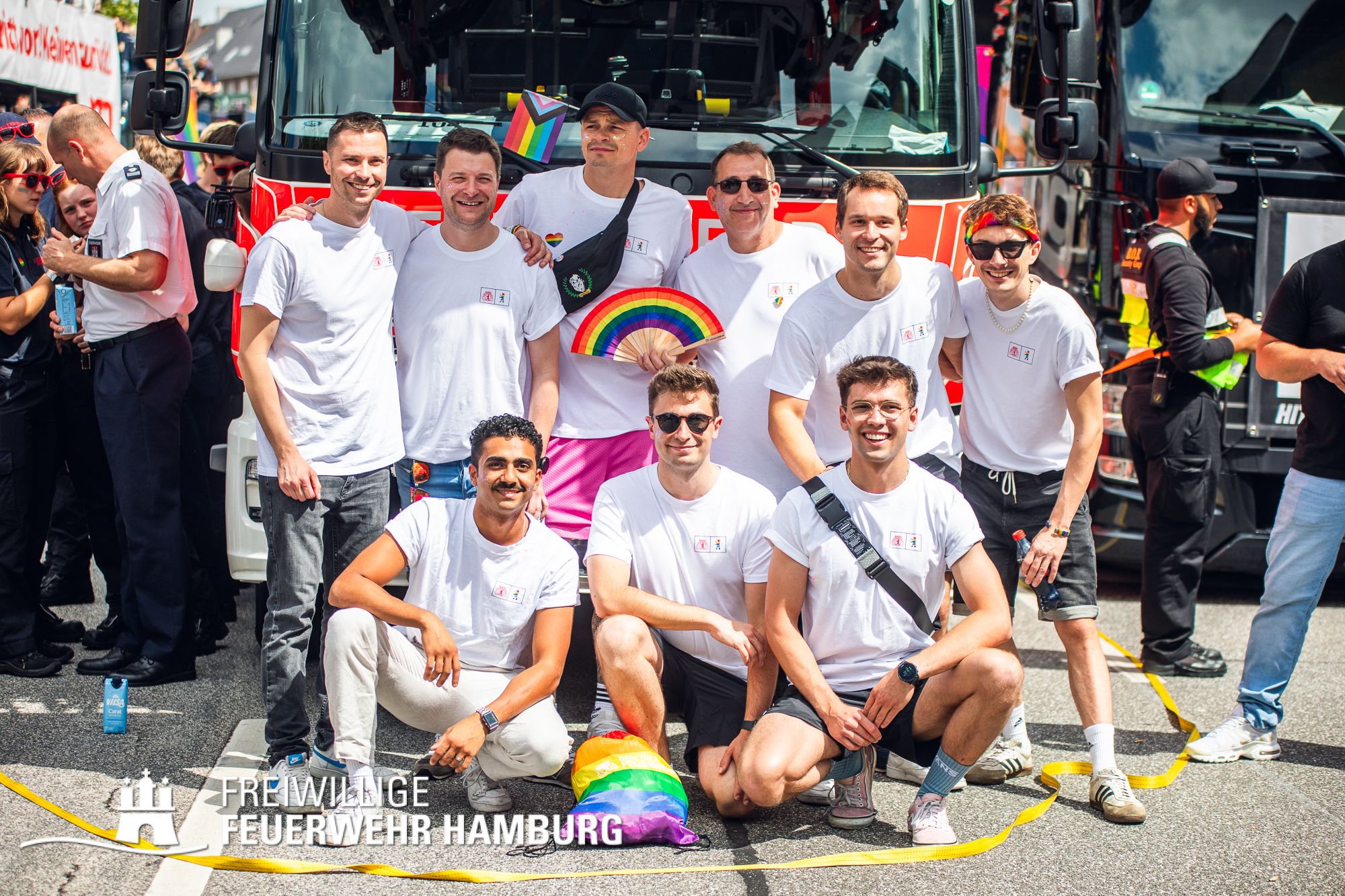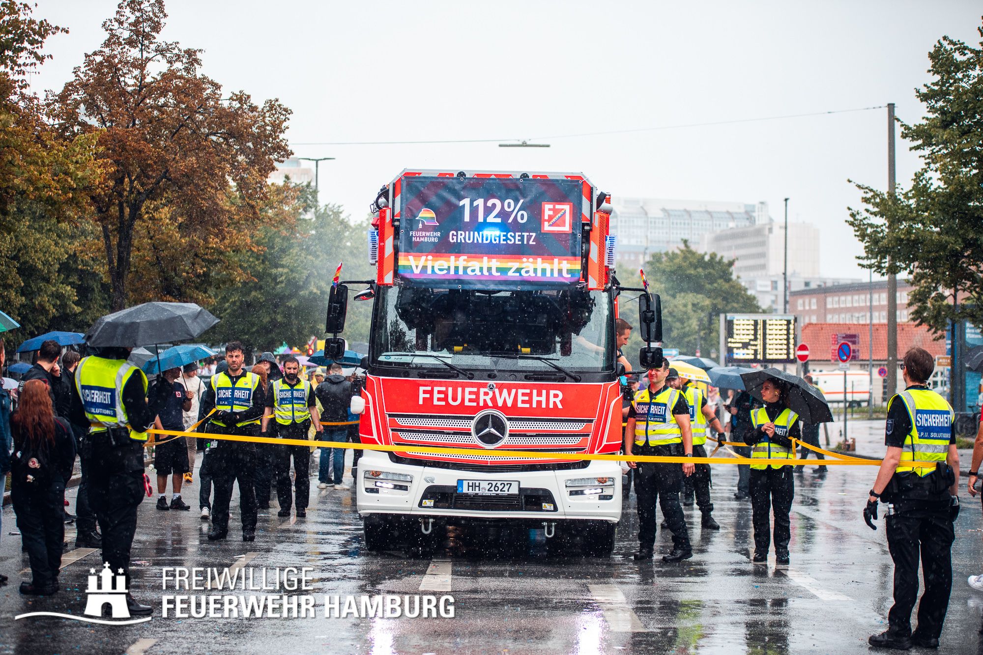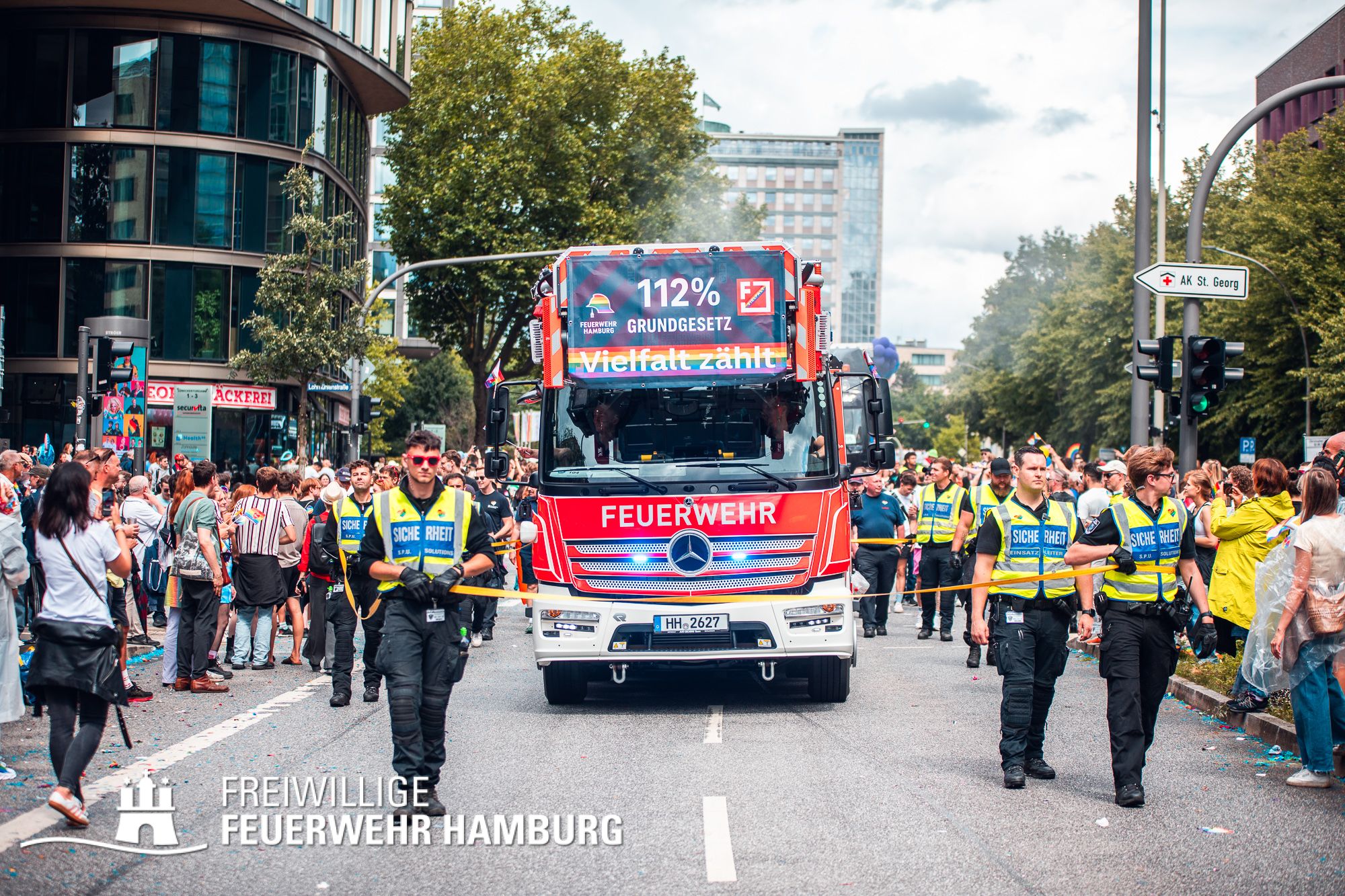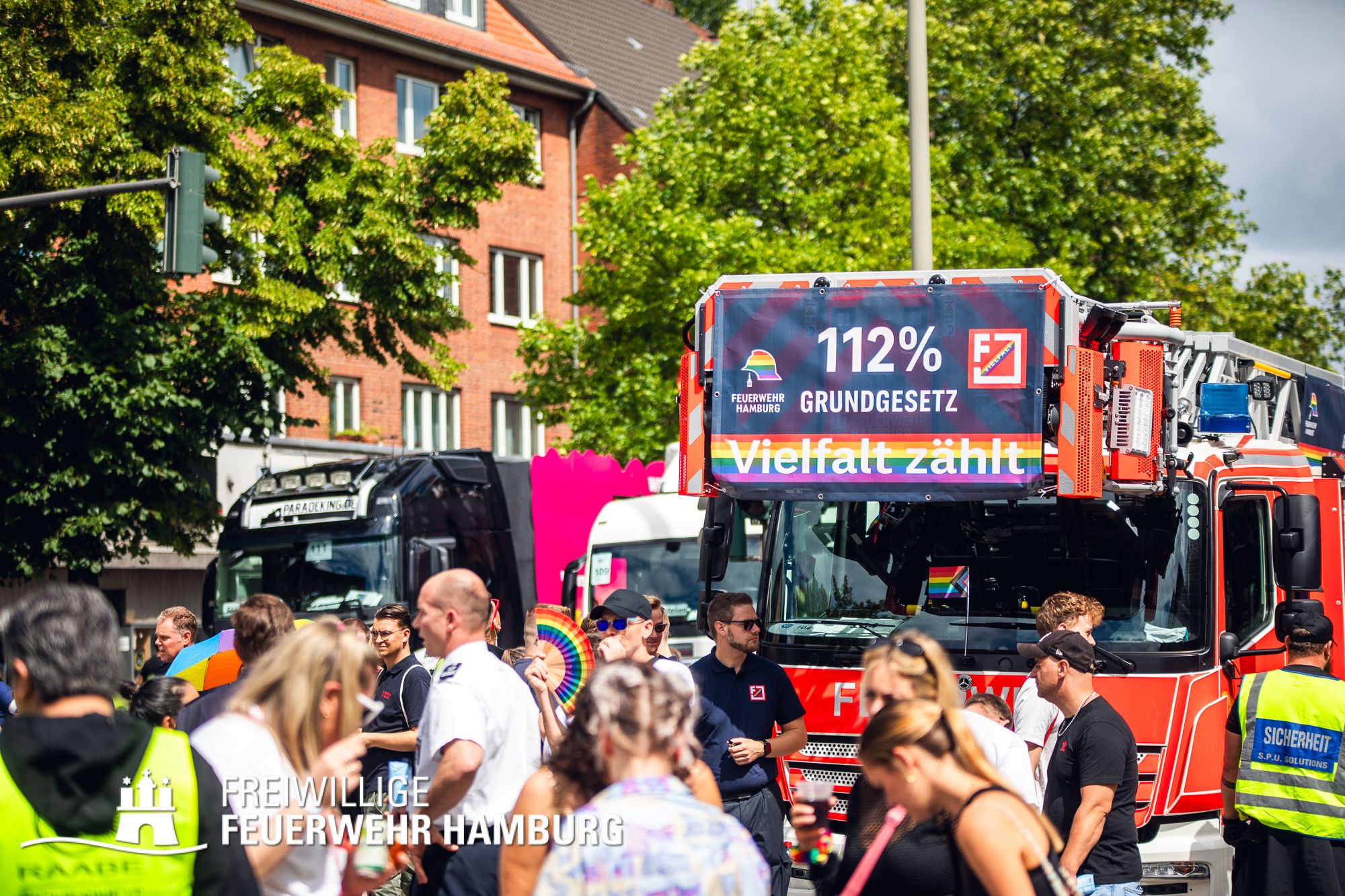 Die Feuerwehr Hamburg steht für Einsatz, Zusammenhalt und Respekt – unabhängig von Herkunft, Identität oder Liebe. Als Team setzen wir uns täglich für die Sicherheit der Stadt ein – und ebenso klar für Menschenrechte und Vielfalt. 112 % für das Grundgesetz – das ist nicht nur ein Motto, sondern unsere Haltung.