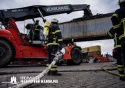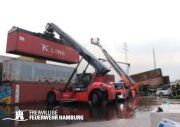 Besondere Herausforderung stellte das Öffnen und Ablöschen diverser Container dar, bei denen unter anderem Trennschleifer zum Einsatz kamen. Hierbei konnte durch den Einsatz der Ausbildungsstätte „Maritimes Kompetenzzentrum“ ein Hydropen erfolgreich eingesetzt werden, um die betroffenen Bereiche schnell und effektiv zu löschen.