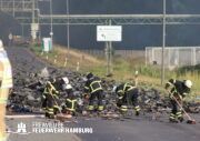 Die Drohnen der Feuerwehr und Polizei lieferten wichtige Luftaufnahmen und ermöglichten der Einsatzleitung einen klaren Überblick über die gesamte Einsatzstelle, während die Werkfeuerwehr Aurubis sowie die Flughafenfeuerwehr Hamburg tatkräftig bei der Brandbekämpfung unterstützten. Auch die Polizei spielte eine entscheidende Rolle: Mit gepanzerten Sonderfahrzeugen räumten sie die Straße von Trümmern und halfen mit Wasserwerfern, die Flammen zu bekämpfen. Im späteren Verlauf des Einsatzes konnten durch Löschpanzern der Feuerwehr Vechta bzw. der Firma Alpha Robotics einige Seecontainer gelöscht werden.