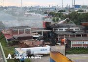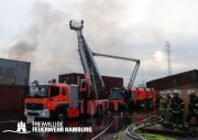 Am Montagnachmittag den 25.08.2025 erhielt die Rettungsleitstelle der Feuerwehr Hamburg eine Meldung über ein brennendes Fahrzeug in einer Lagerhalle in der Müggenburger Straße, Hamburg-Veddel. Als die ersten Einsatzkräfte eintrafen, kam es bereits zu mehreren Explosionen von Druckgasbehältern in der Halle. Die Explosions- und Brandintensität war so hoch, dass der Einsatzleiter nach einer ersten Evakuierung und Rettung von Personen entschied, die Kräfte sofort zurückzuziehen. Aufgrund der enormen Gefahr für die Feuerwehrleute war eine direkte Brandbekämpfung zu diesem Zeitpunkt nicht mehr möglich.