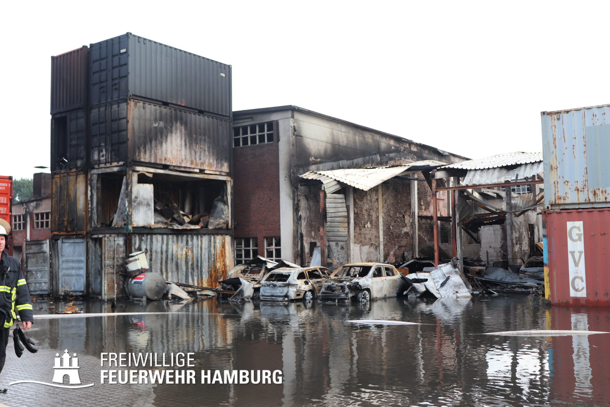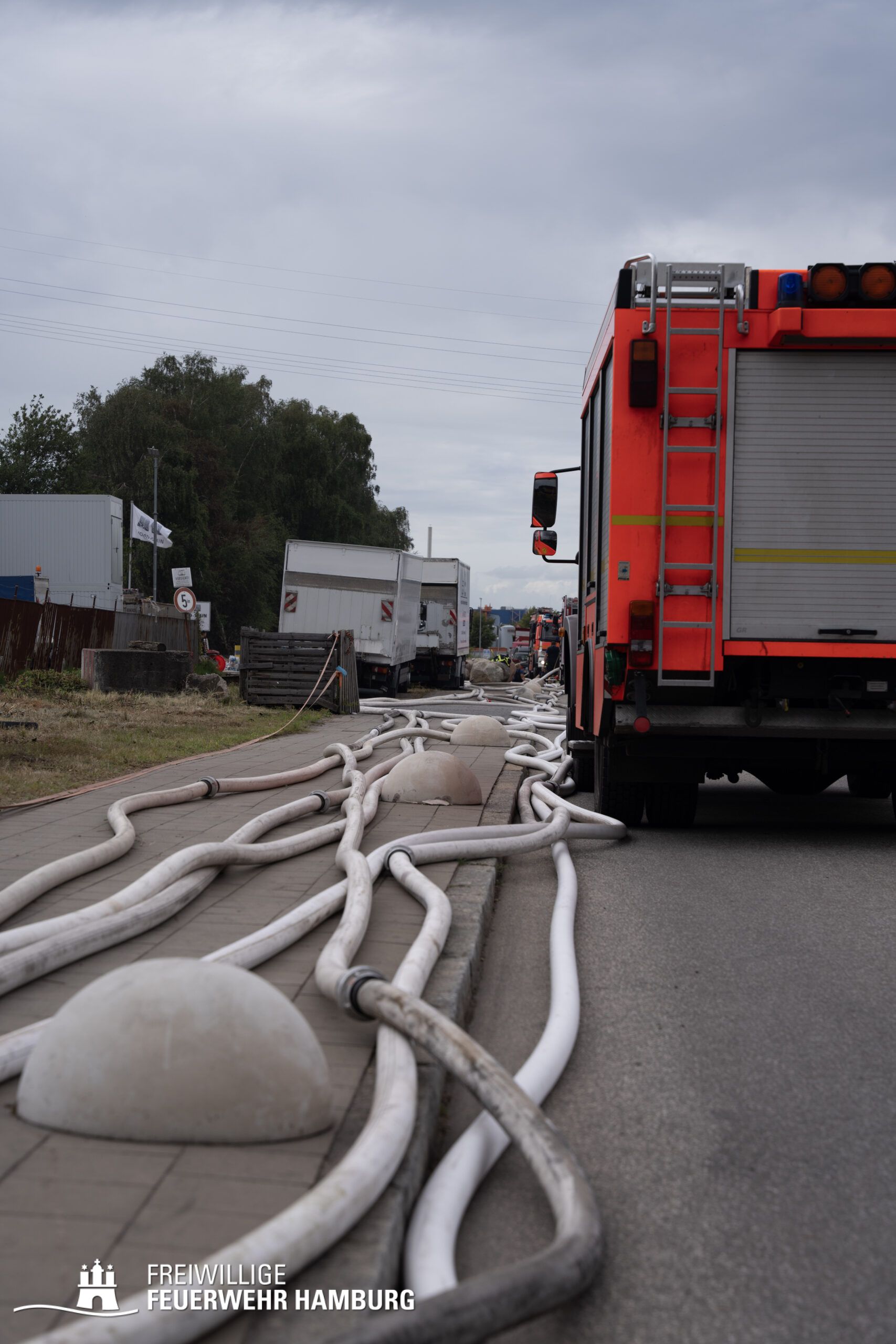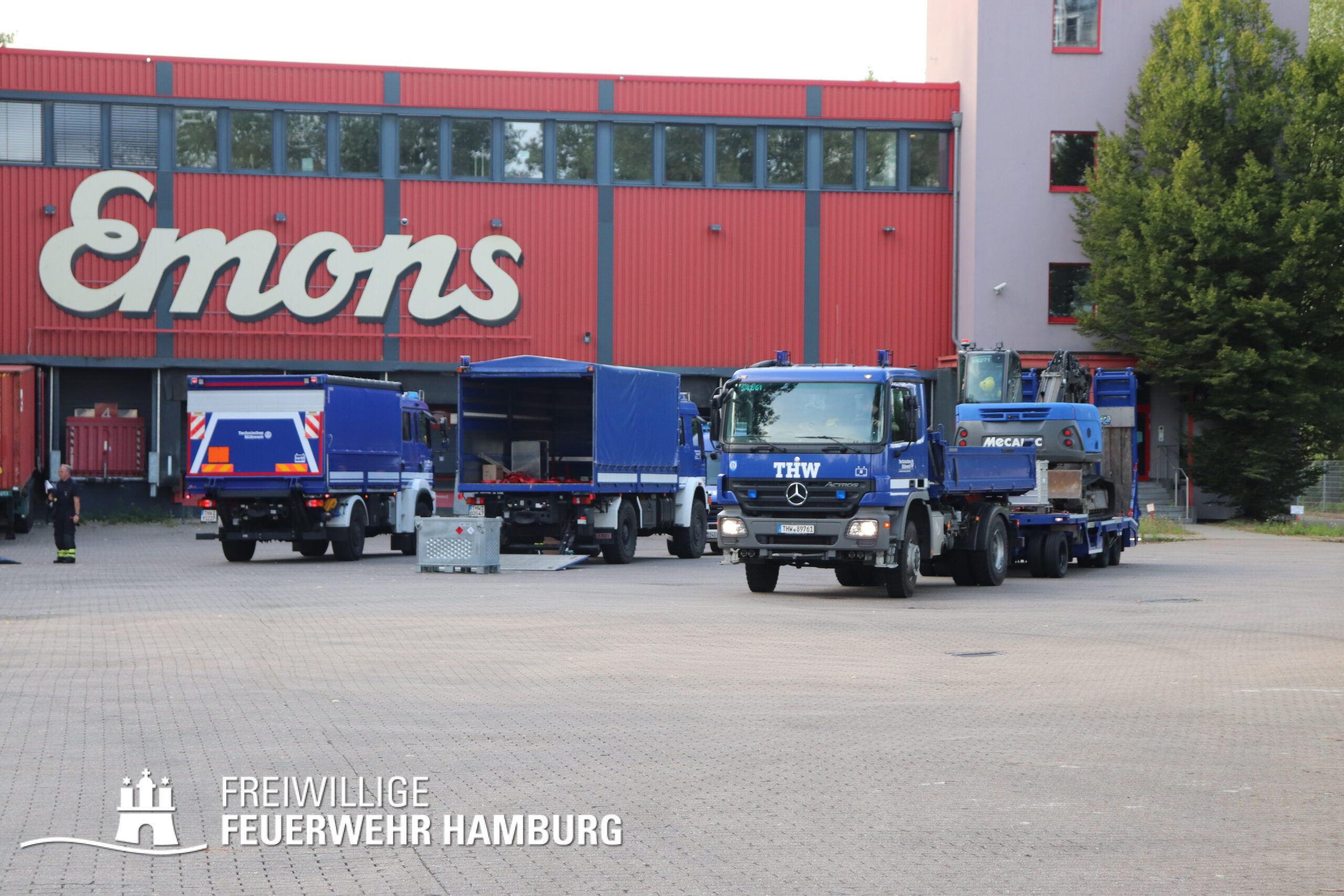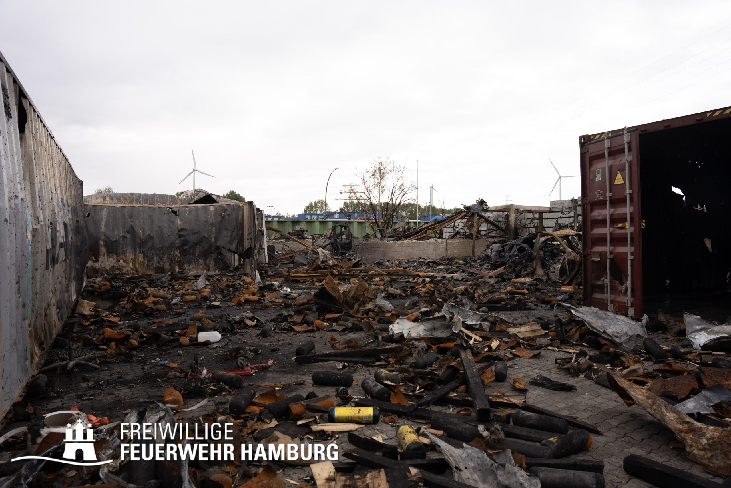 Am Montagnachmittag den 25.08.2025 erhielt die Rettungsleitstelle der Feuerwehr Hamburg eine Meldung über ein brennendes Fahrzeug in einer Lagerhalle in der Müggenburger Straße, Hamburg-Veddel. Als die ersten Einsatzkräfte eintrafen, kam es bereits zu mehreren Explosionen von Druckgasbehältern in der Halle. Die Explosions- und Brandintensität war so hoch, dass der Einsatzleiter nach einer ersten Evakuierung und Rettung von Personen entschied, die Kräfte sofort zurückzuziehen. Aufgrund der enormen Gefahr für die Feuerwehrleute war eine direkte Brandbekämpfung zu diesem Zeitpunkt nicht mehr möglich.