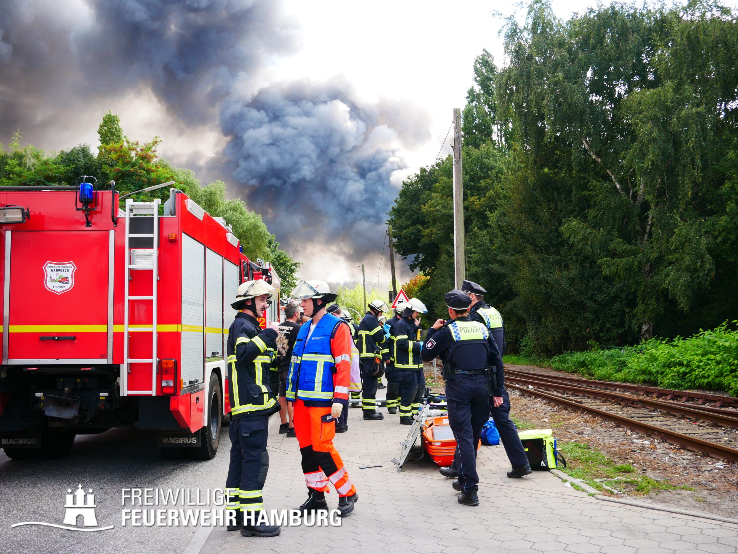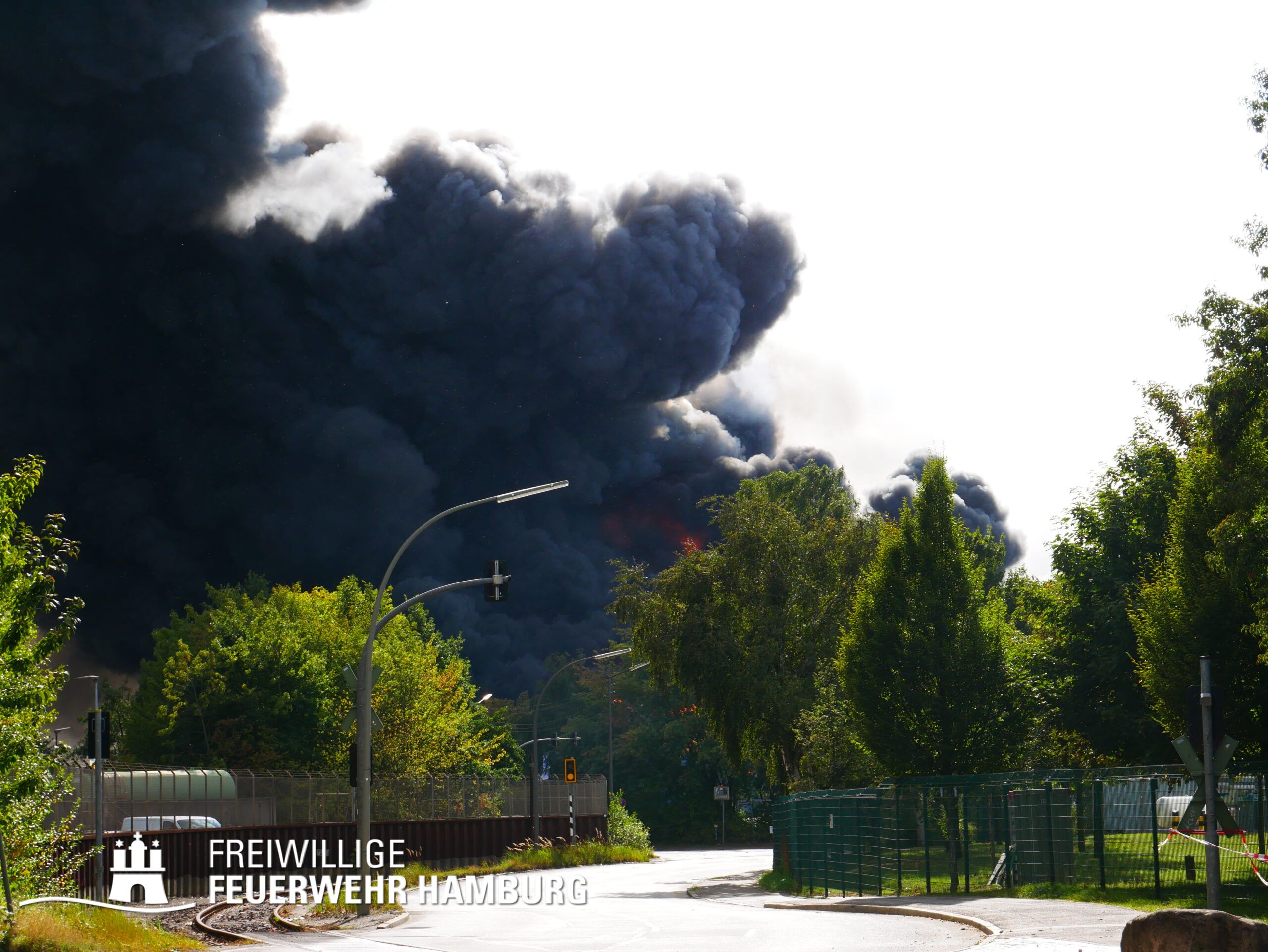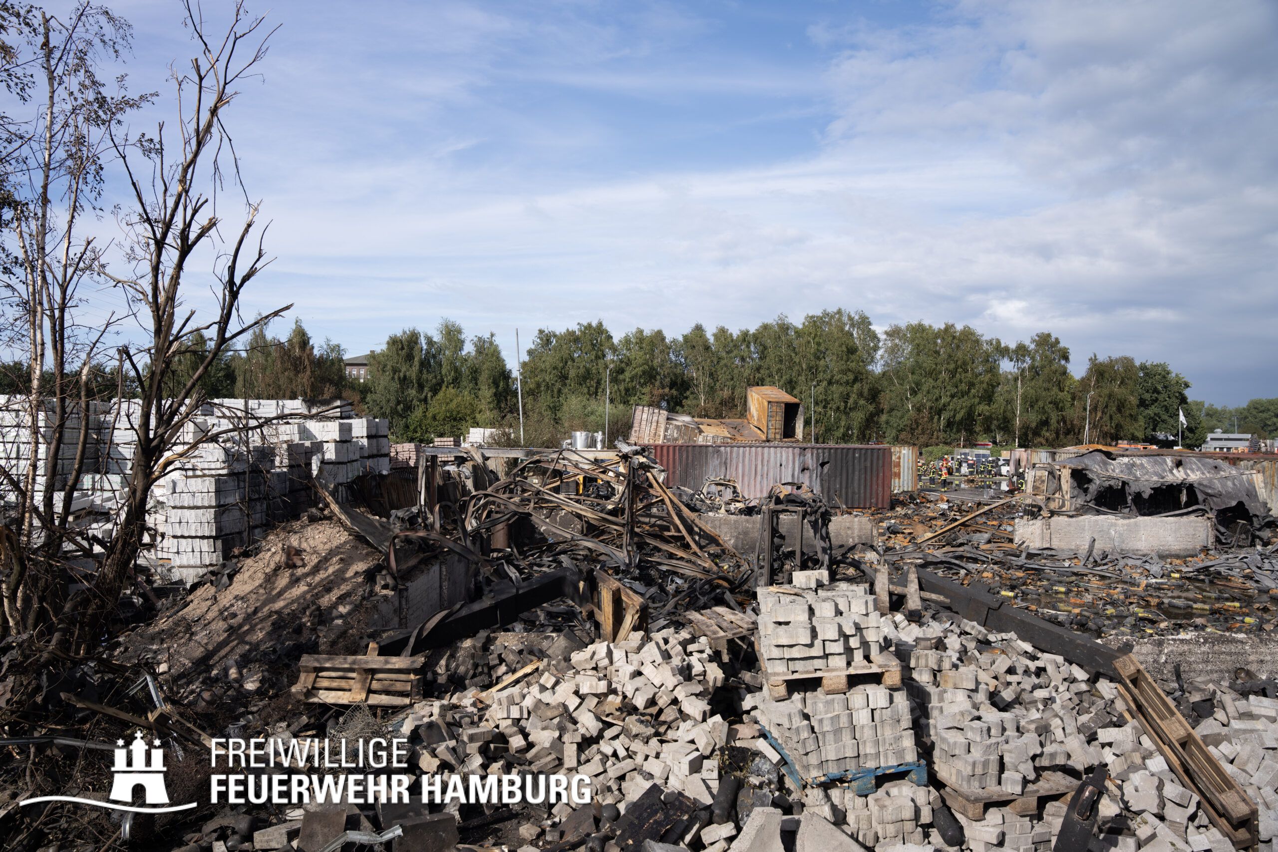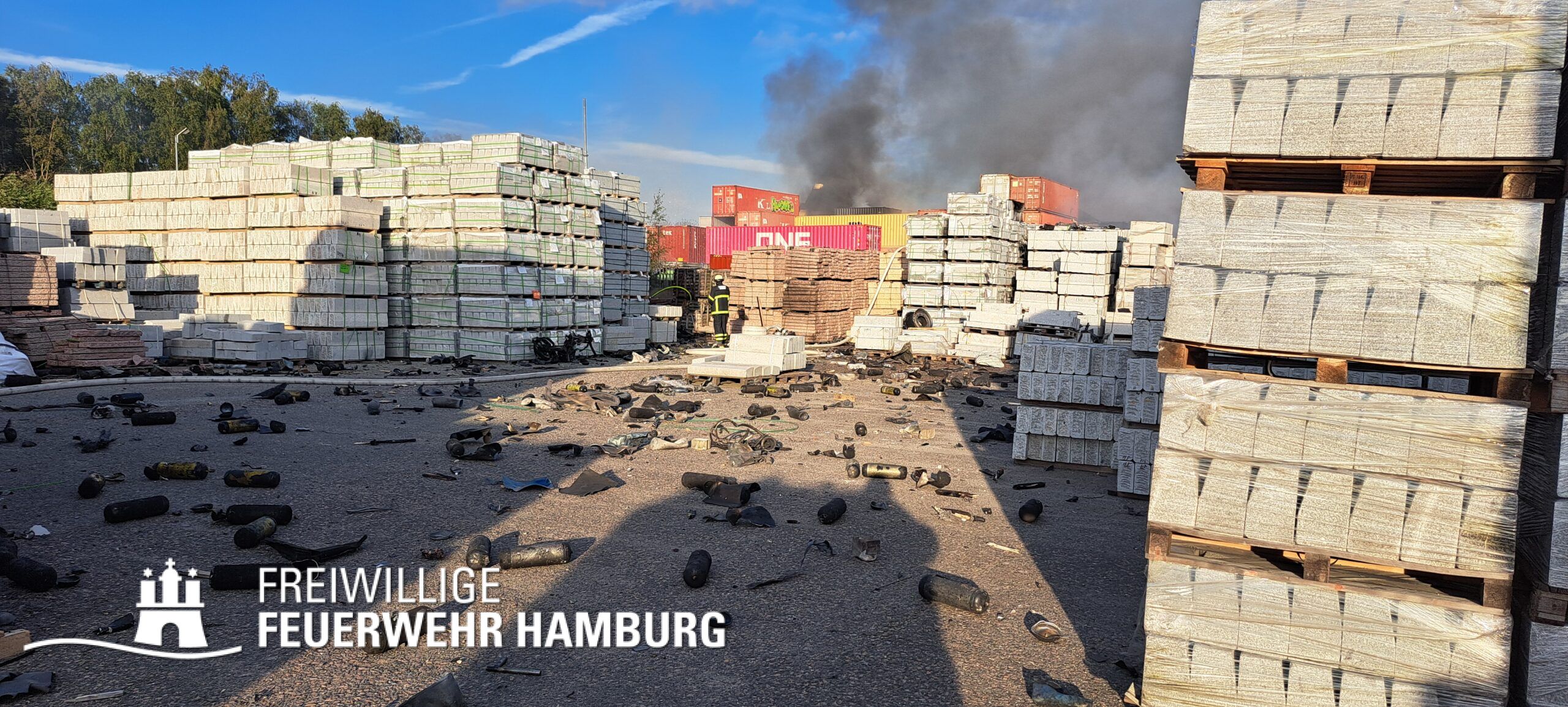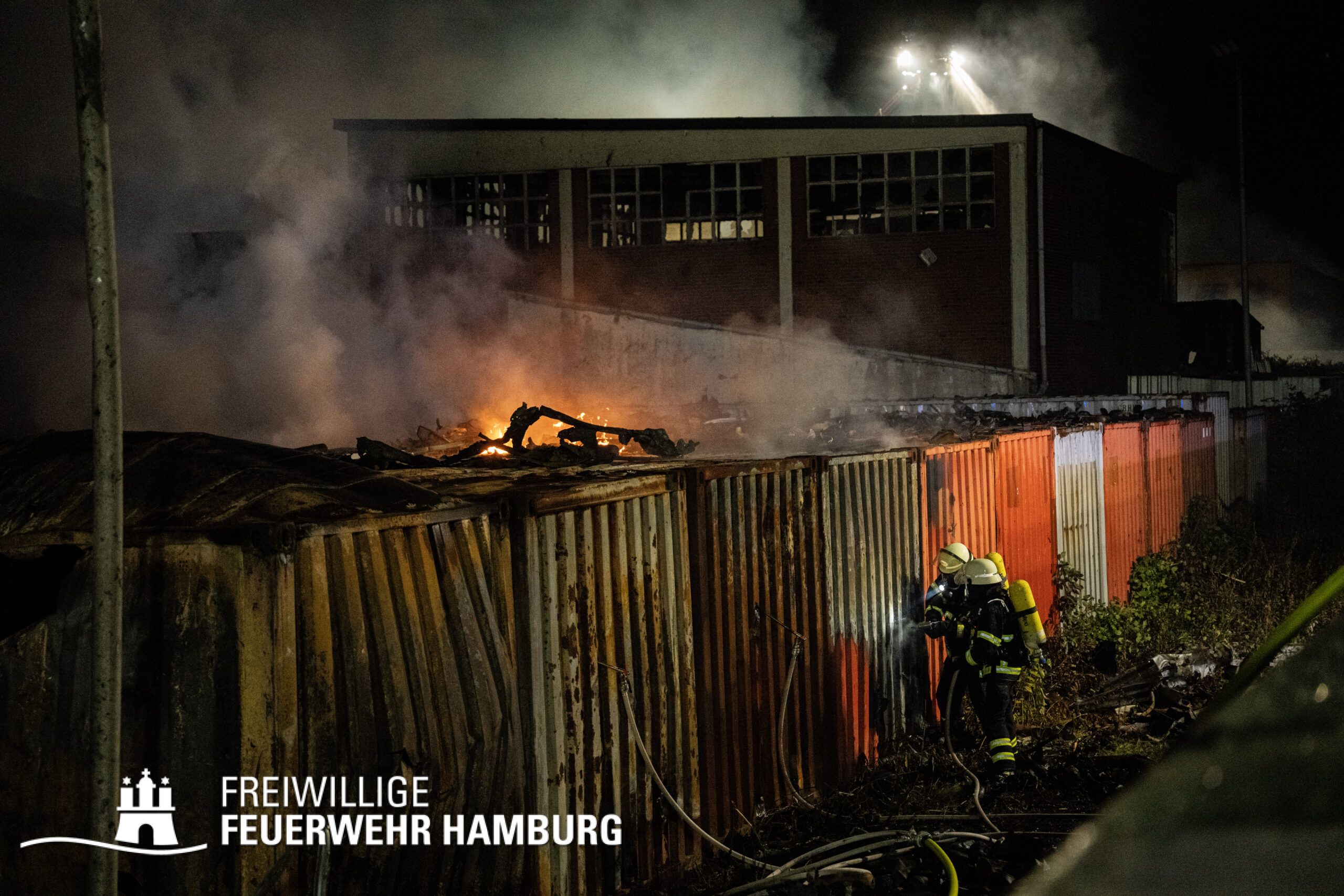 Am Montagnachmittag den 25.08.2025 erhielt die Rettungsleitstelle der Feuerwehr Hamburg eine Meldung über ein brennendes Fahrzeug in einer Lagerhalle in der Müggenburger Straße, Hamburg-Veddel. Als die ersten Einsatzkräfte eintrafen, kam es bereits zu mehreren Explosionen von Druckgasbehältern in der Halle. Die Explosions- und Brandintensität war so hoch, dass der Einsatzleiter nach einer ersten Evakuierung und Rettung von Personen entschied, die Kräfte sofort zurückzuziehen. Aufgrund der enormen Gefahr für die Feuerwehrleute war eine direkte Brandbekämpfung zu diesem Zeitpunkt nicht mehr möglich.