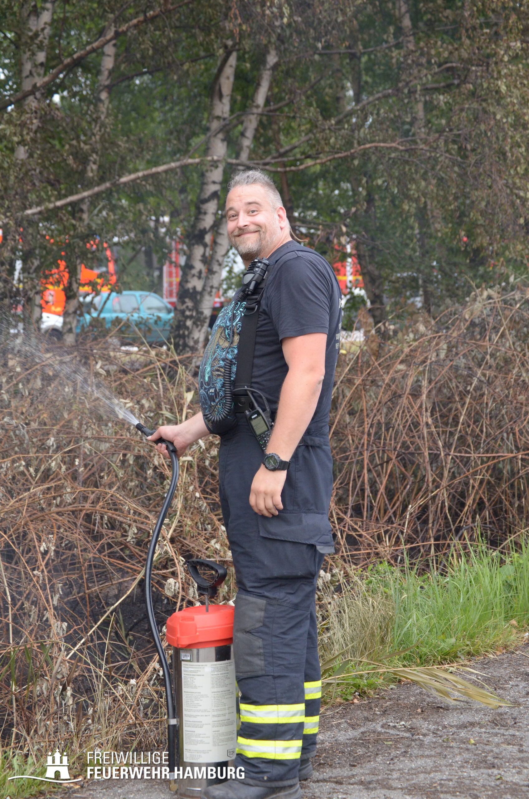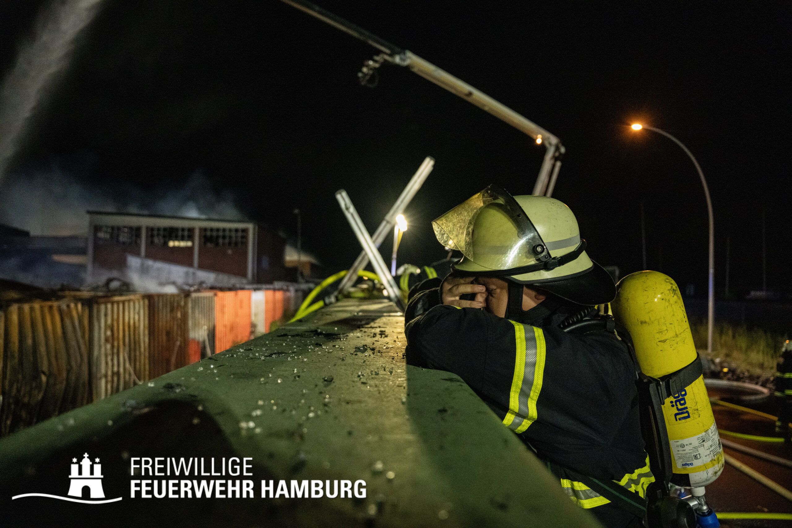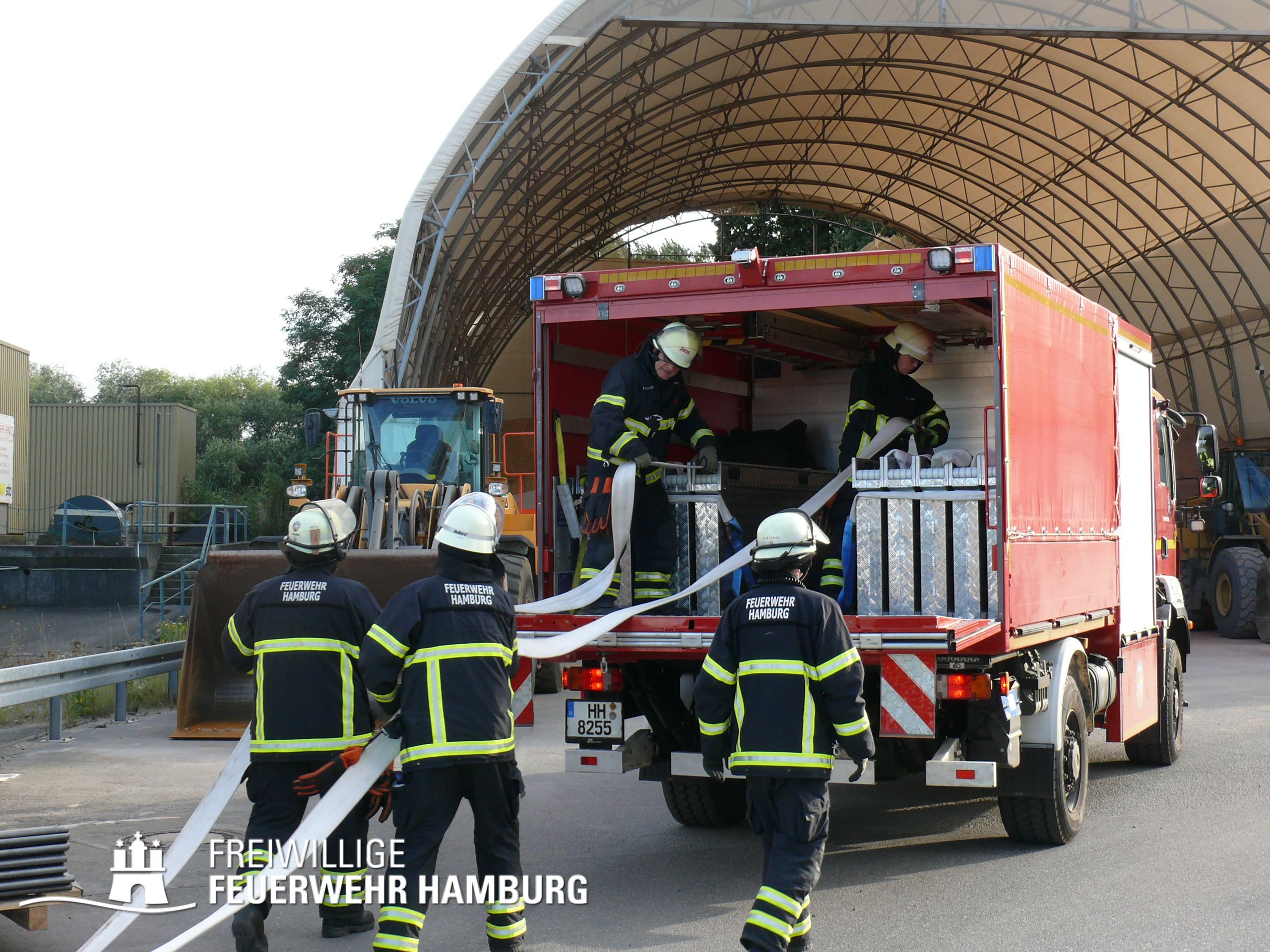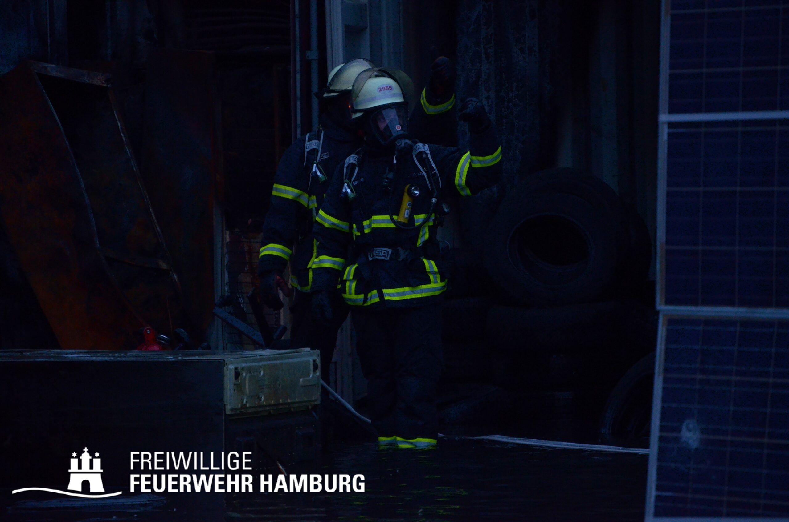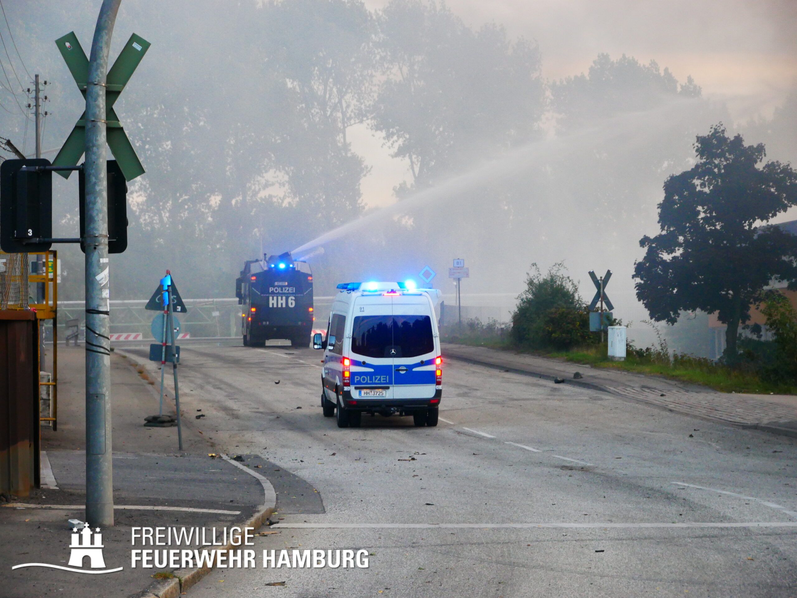 Am Montagnachmittag den 25.08.2025 erhielt die Rettungsleitstelle der Feuerwehr Hamburg eine Meldung über ein brennendes Fahrzeug in einer Lagerhalle in der Müggenburger Straße, Hamburg-Veddel. Als die ersten Einsatzkräfte eintrafen, kam es bereits zu mehreren Explosionen von Druckgasbehältern in der Halle. Die Explosions- und Brandintensität war so hoch, dass der Einsatzleiter nach einer ersten Evakuierung und Rettung von Personen entschied, die Kräfte sofort zurückzuziehen. Aufgrund der enormen Gefahr für die Feuerwehrleute war eine direkte Brandbekämpfung zu diesem Zeitpunkt nicht mehr möglich.