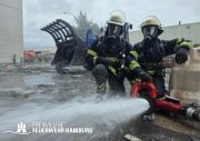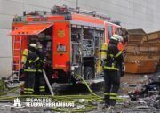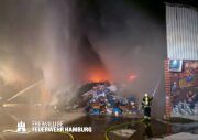 In der Nacht von Freitag auf Samstag wurde über den Notruf 112 der Rettungsleitstelle der Feuerwehr Hamburg ein Brand in einem Recyclingbetrieb gemeldet. Als die ersten Einsatzkräfte der zuständigen Feuer- und Rettungswache Stellingen eintrafen, brannten Bauschutt und Gewerbeabfälle unter einer Schleppdachhalle von ca. 30x20m bereits in voller Ausdehnung. Auch Teile der Halle waren vom Feuer betroffen.