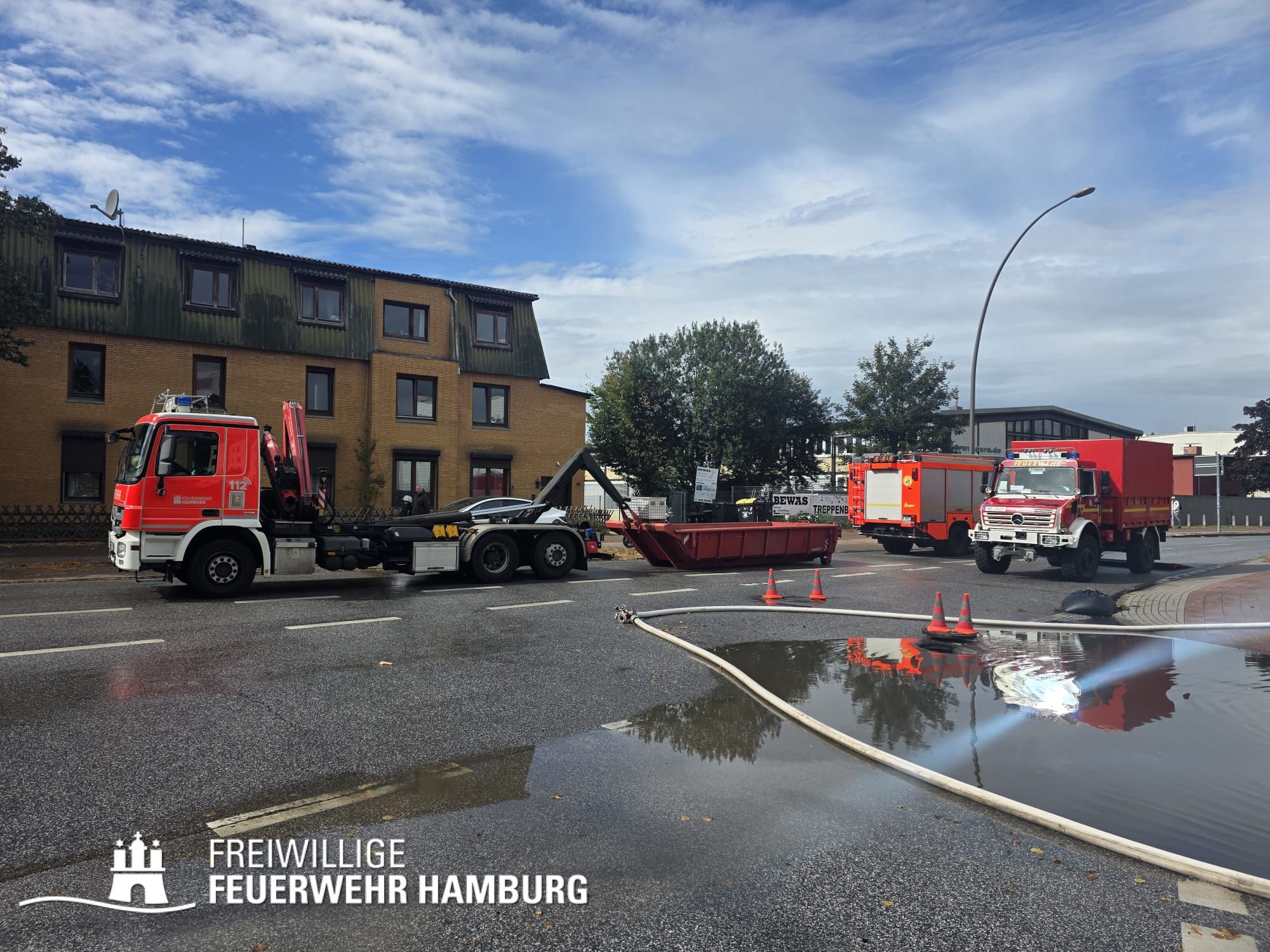 Die FF Eidelstedt war mit dem ersten Zug zur direkten Brandbekämpfung eingesetzt und wurde im späteren Verlauf durch die FF Stellingen unterstützt. Die FF Lokstedt sorgte mit ihrem Schlauchwagen für eine stabile Wasserversorgung an der Einsatzstelle.