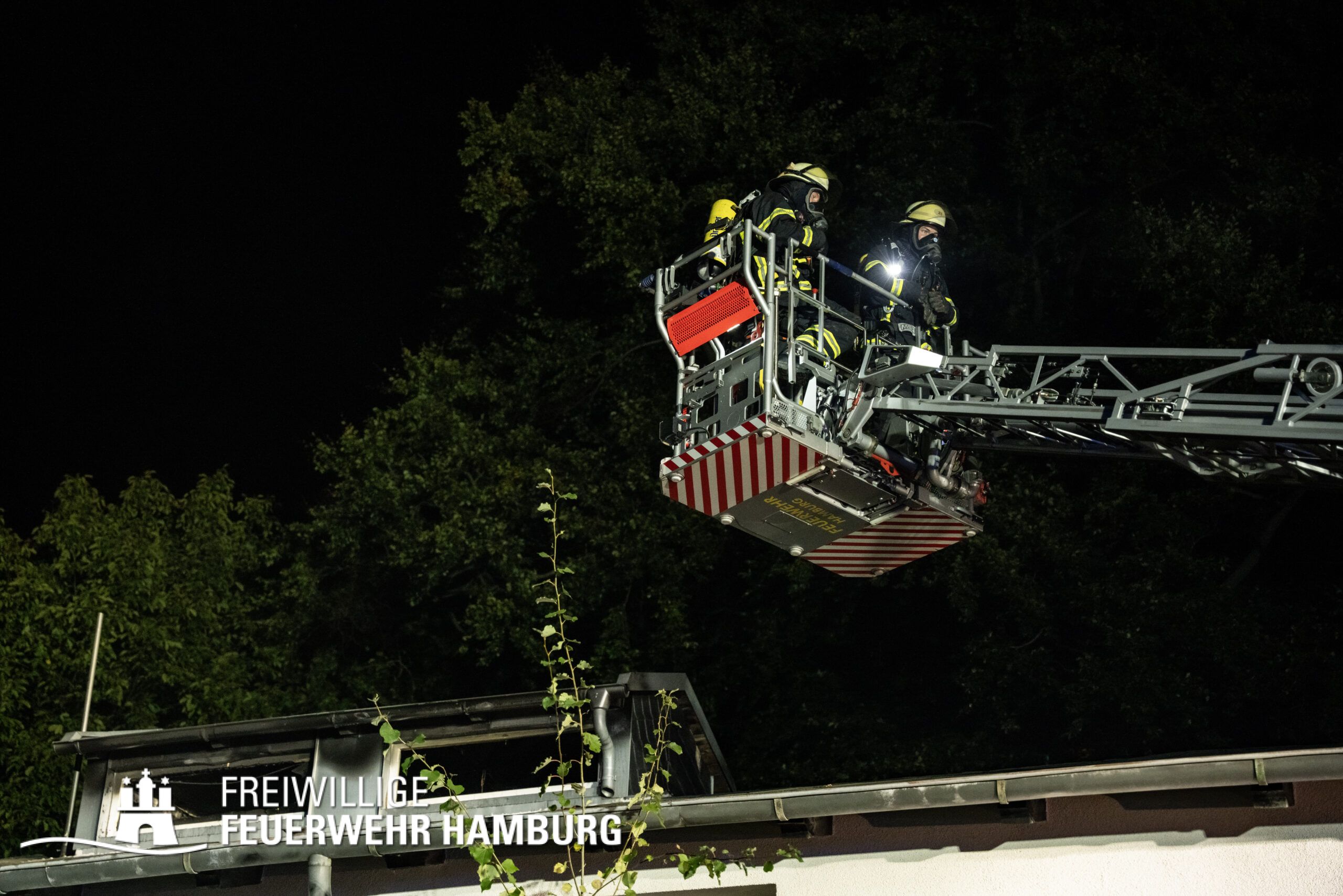 Ein Trupp führte Lösch- und Sichtungsmaßnahmen über die Drehleiter durch, während der andere Trupp im Innenangriff das Feuer bekämpfte.