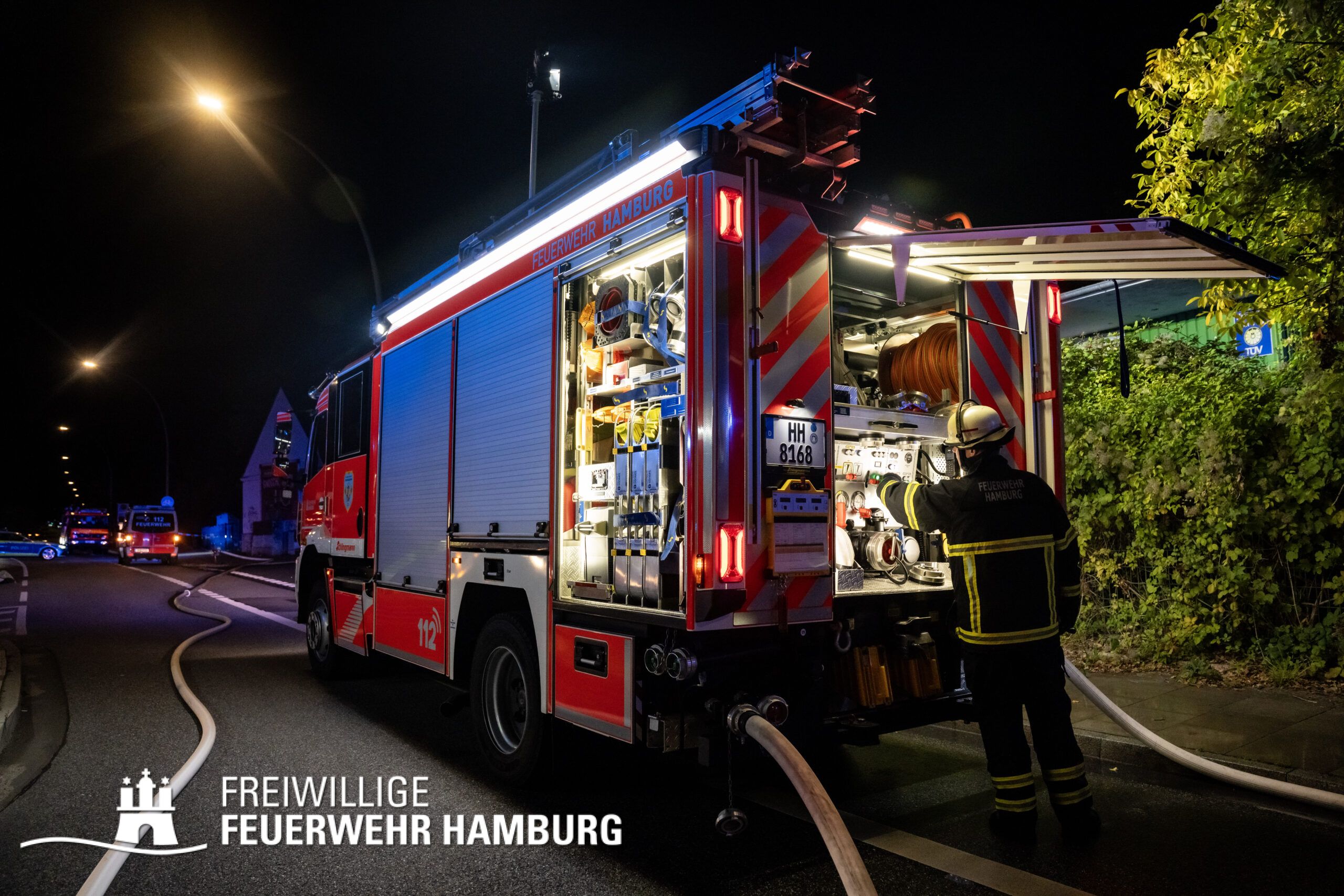 Die FF Öjendorf und FF Kirchsteinbek waren an der Brandbekämpfung beteiligt und unterstützten beim Aufbau der Wasserversorgung. Die FF Warwisch wurde vorsorglich für den Einsatz des Cobra Wasserlöschsystems angefordert konnte ihre Anfahrt aber wieder abbrechen. Der Bereichsführer Bergedorf unterstützte die Einsatzleitung vor Ort.