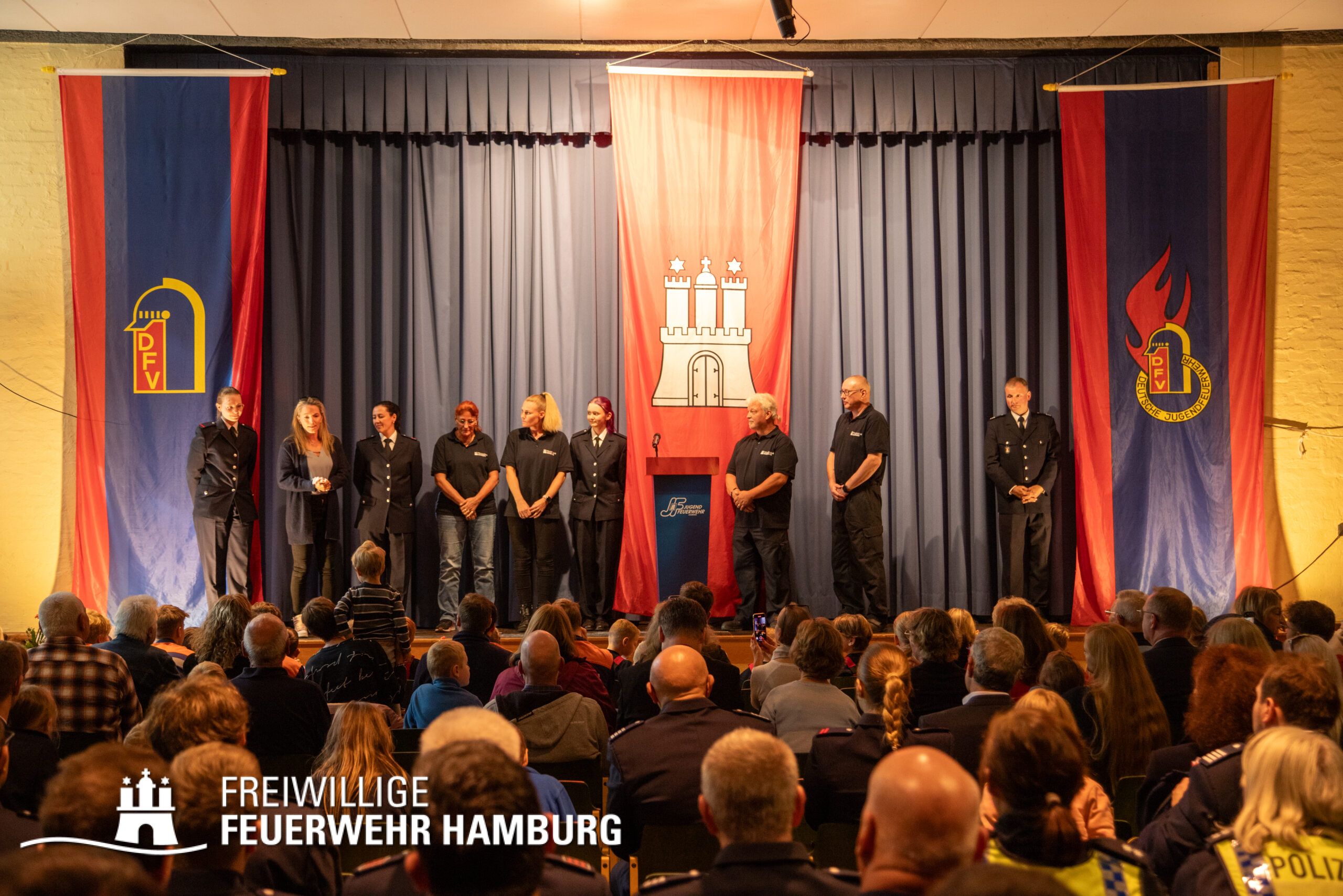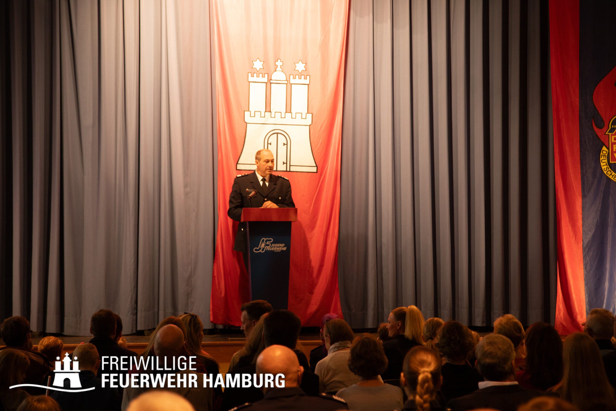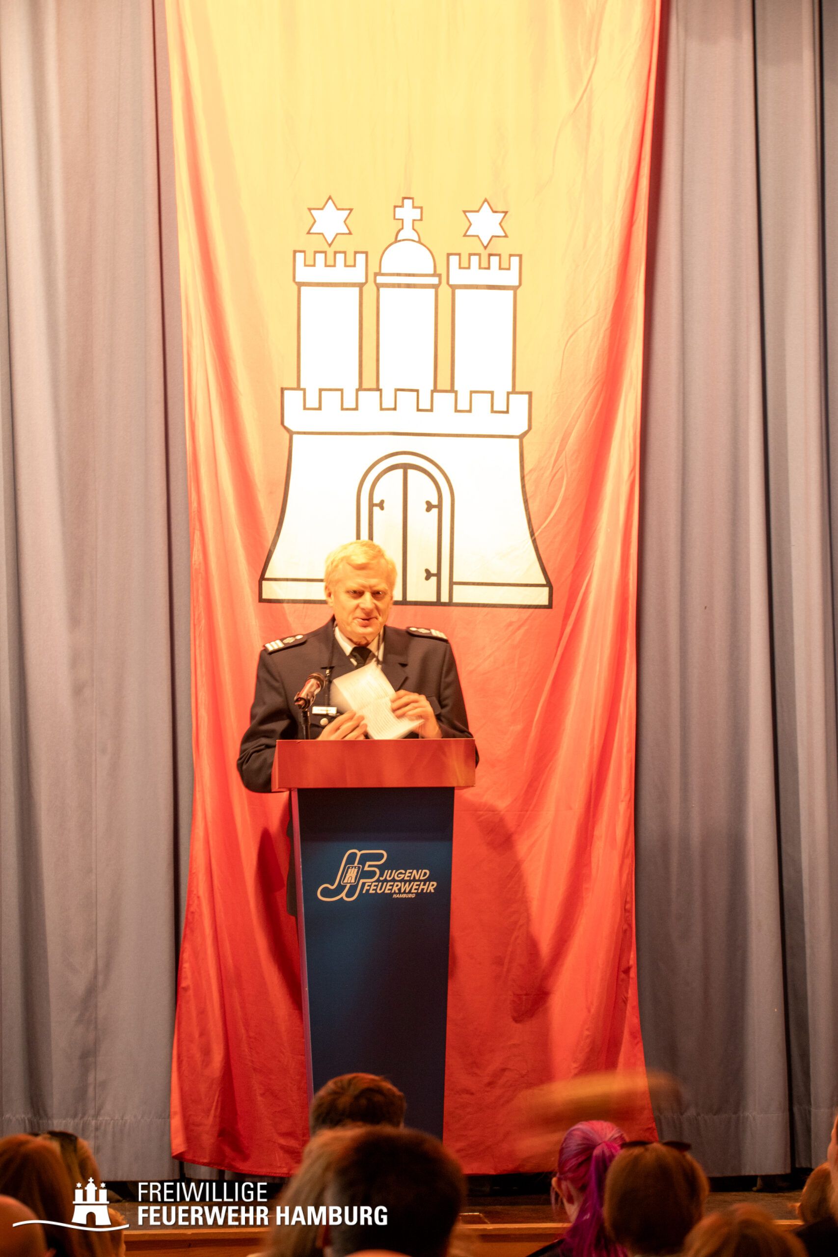 Natürlich kamen auch ein paar Worte aus Feuerwehr, Jugendfeuerwehr und Politik nicht zu kurz – allerdings ganz bewusst in kürzeren Beiträgen gehalten, um dem Fokus der Veranstaltung gerecht zu werden. Es sprachen der Leitende Branddirektor Paul Middendorf für die Feuerwehr Hamburg, Harald Burghart als Landesbereichsführer für die Freiwillige Feuerwehr Hamburg sowie Henrik Strate als stellvertretender Landesjugendfeuerwehrwart. Auch Vertreter*innen der Politik ließen es sich nicht nehmen, der neuen Minifeuerwehr persönlich zu gratulieren.