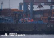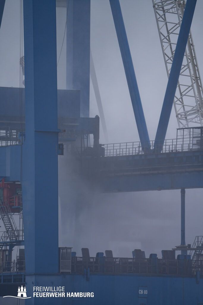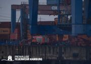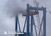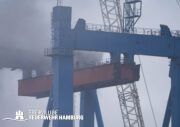 zu einem Feuer an einer Containerbrücke in Altenwerder. Der Ausleger der Brücke war bereits