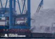 Hoch hinaus, schwierige Löscharbeiten an Containerbrücke