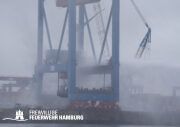 Zur Unterstützung der technischen Arbeiten an der Containerbrücke kam die FF Warwisch zum Einsatz. Schließlich