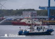 Das Löschboot „Branddirektor Westphal“ nahm die Brandbekämpfung mit einem der an Bord befindlichen