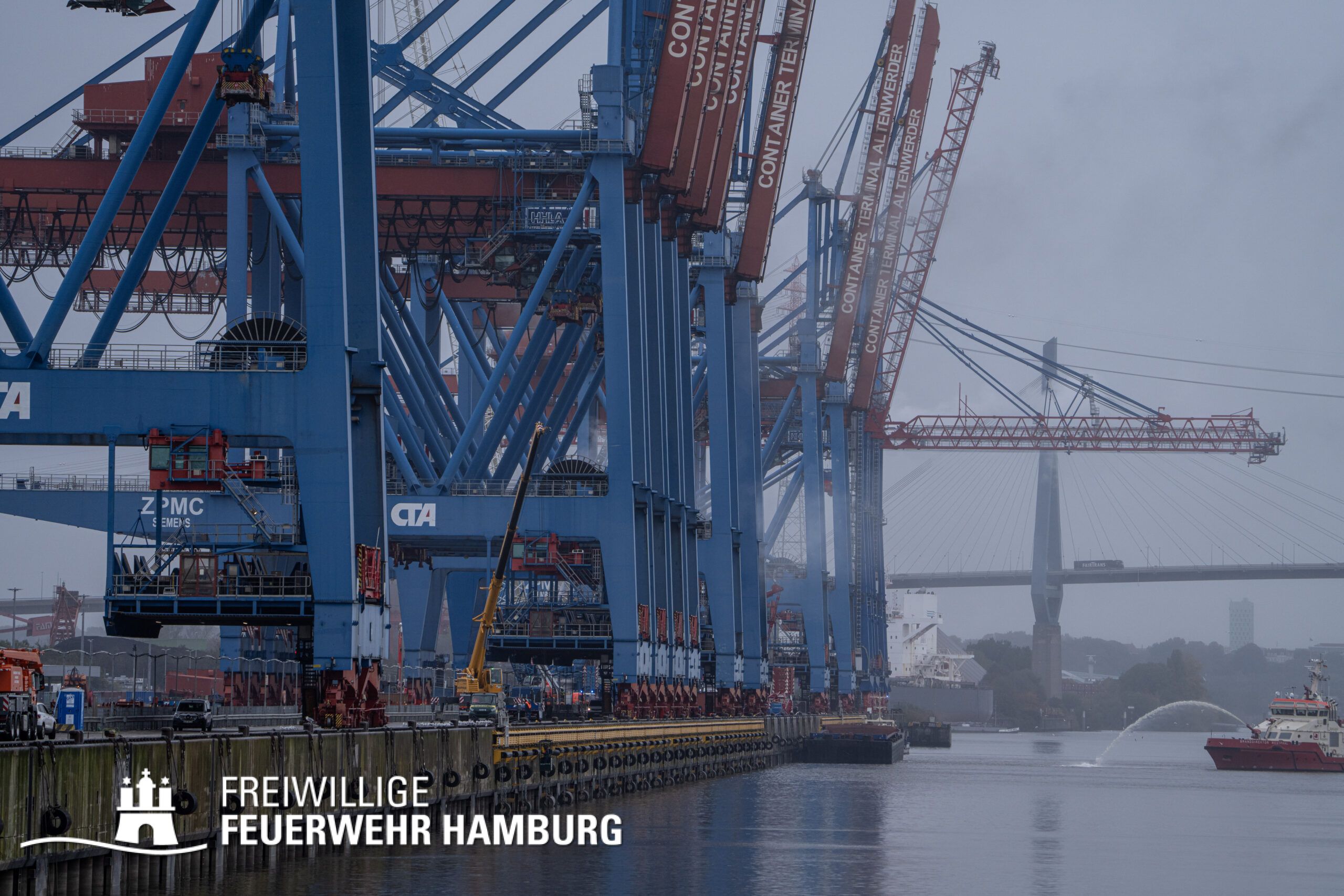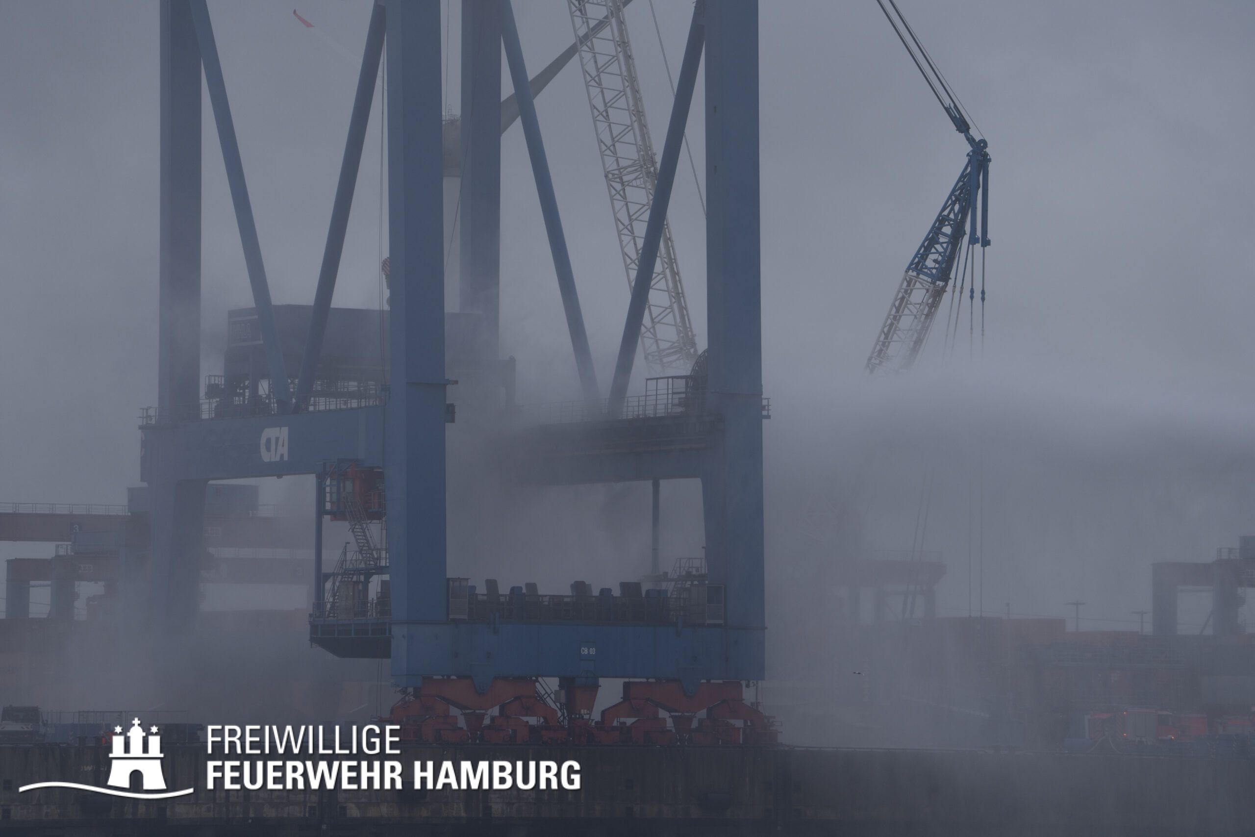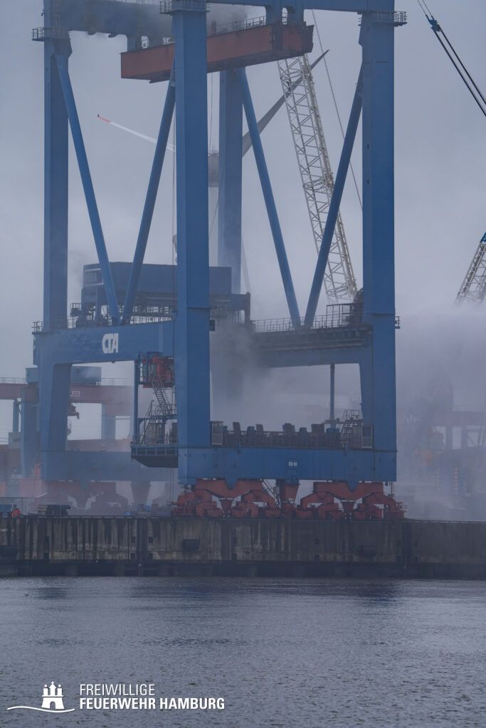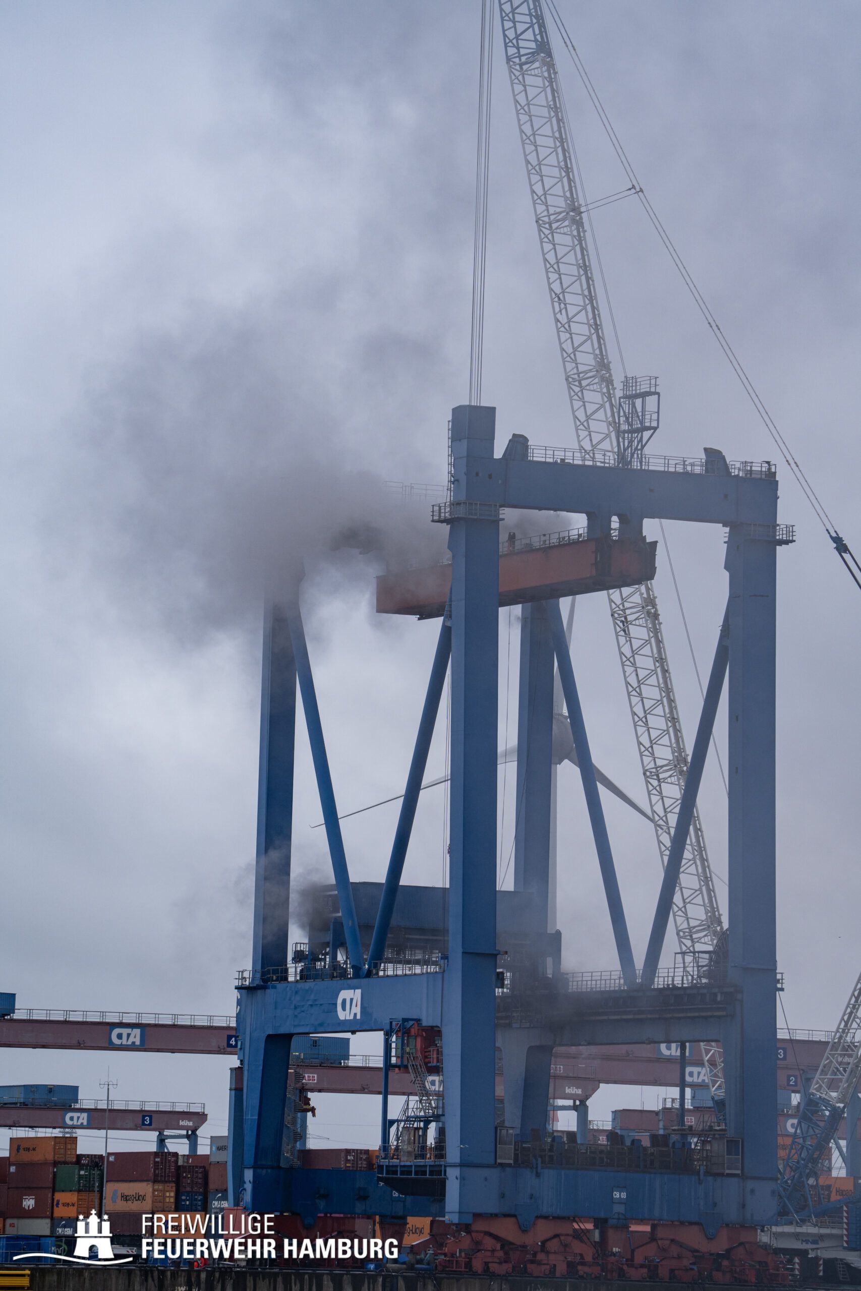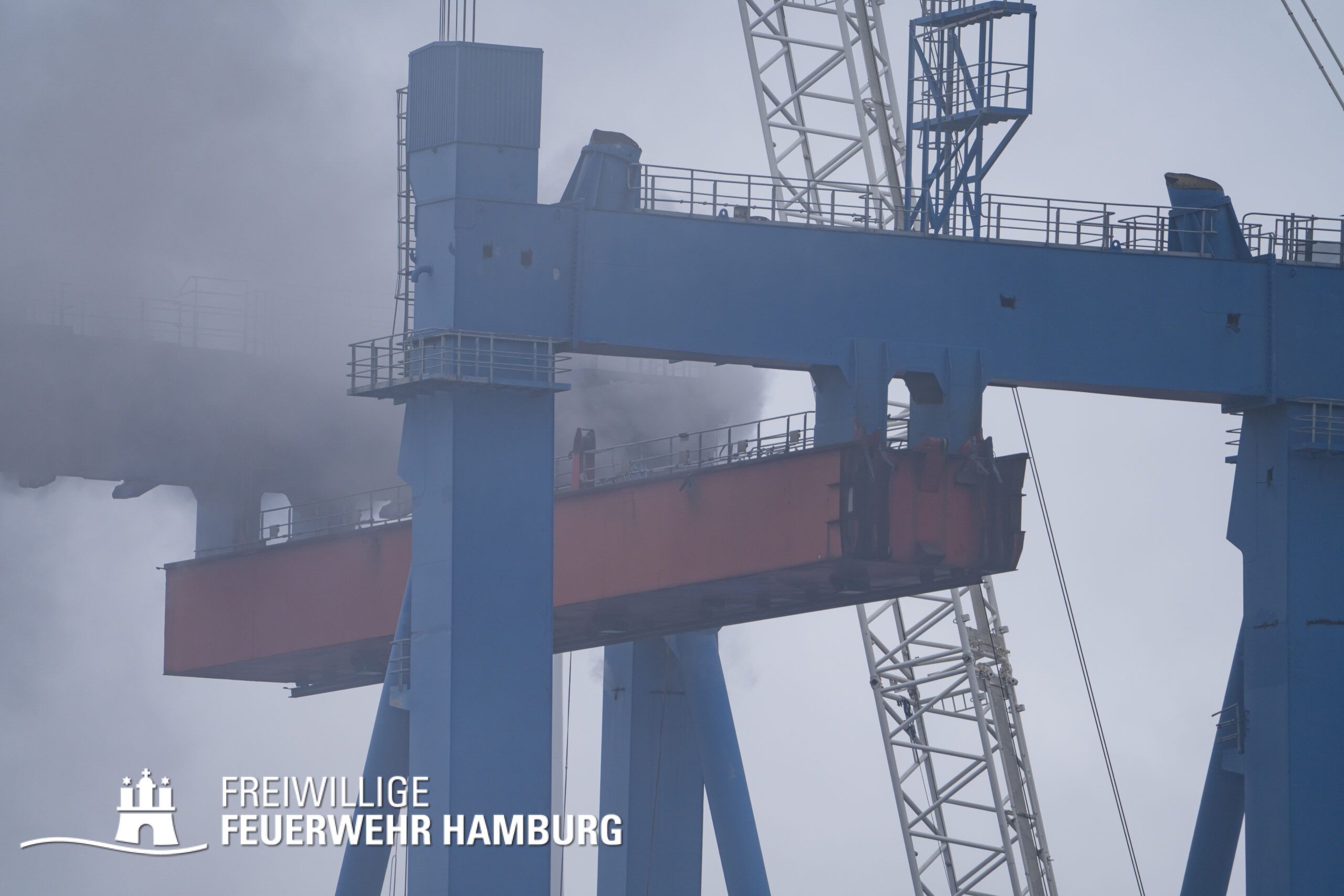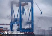 zu einem Feuer an einer Containerbrücke in Altenwerder. Der Ausleger der Brücke war bereits