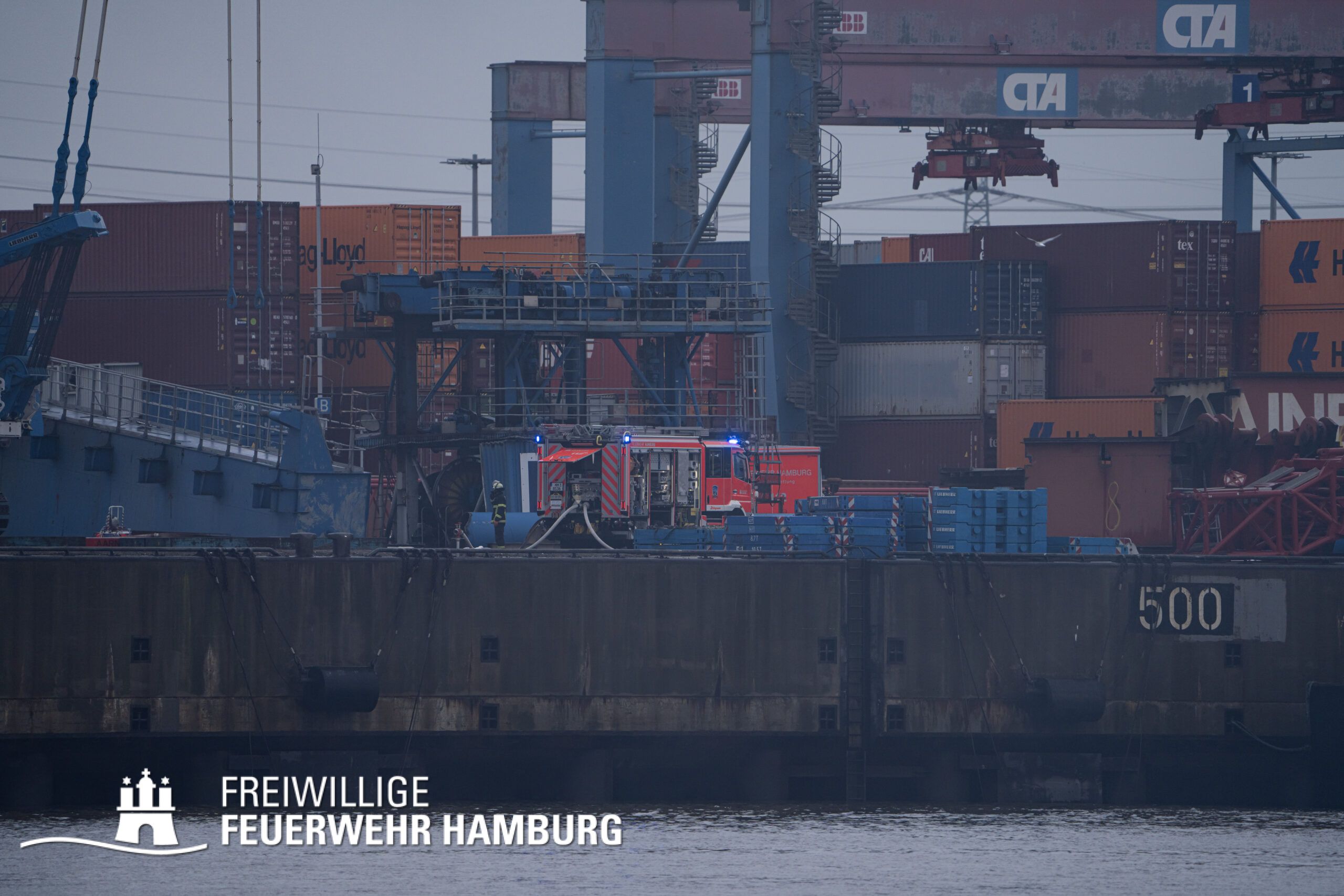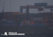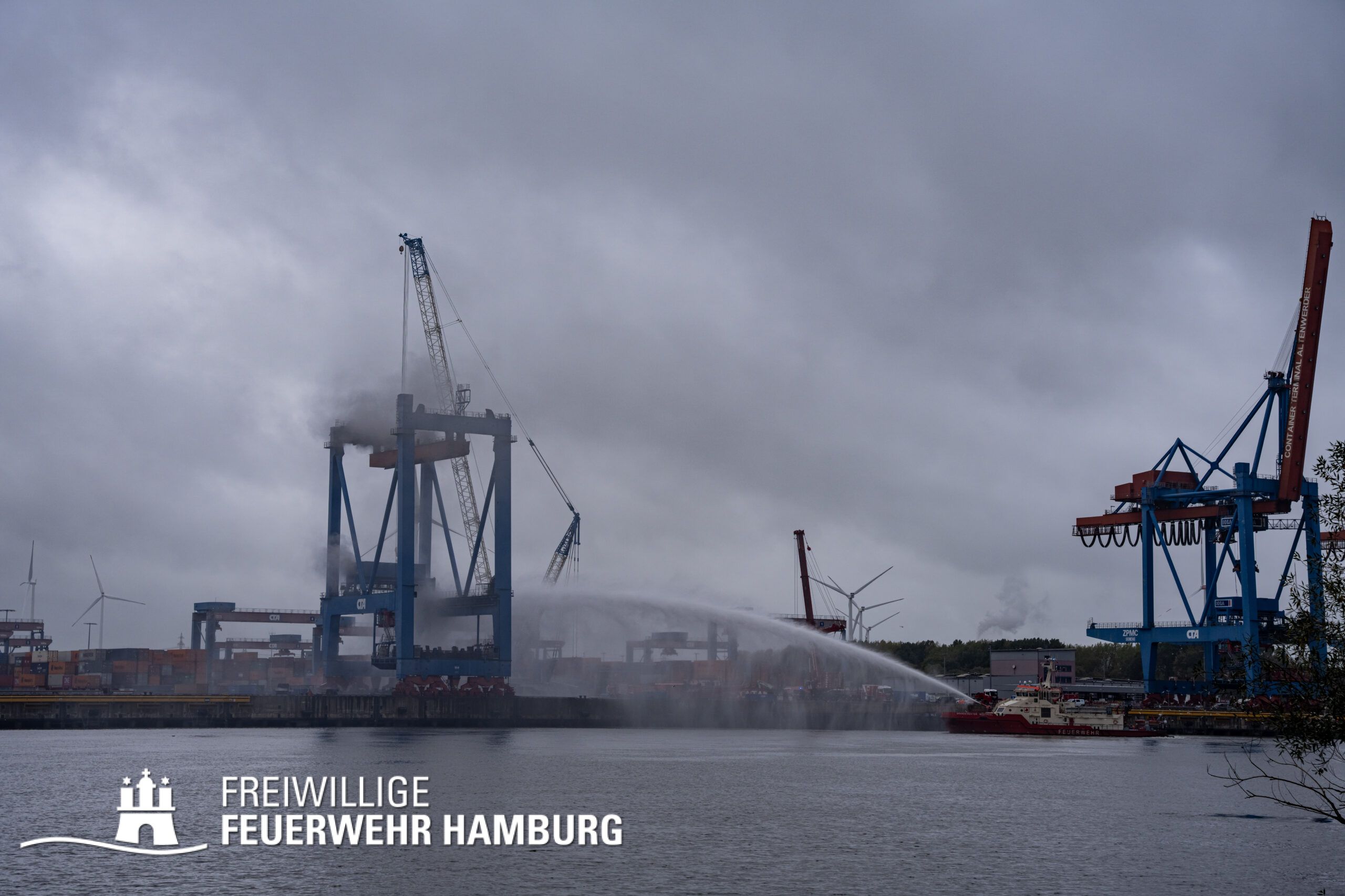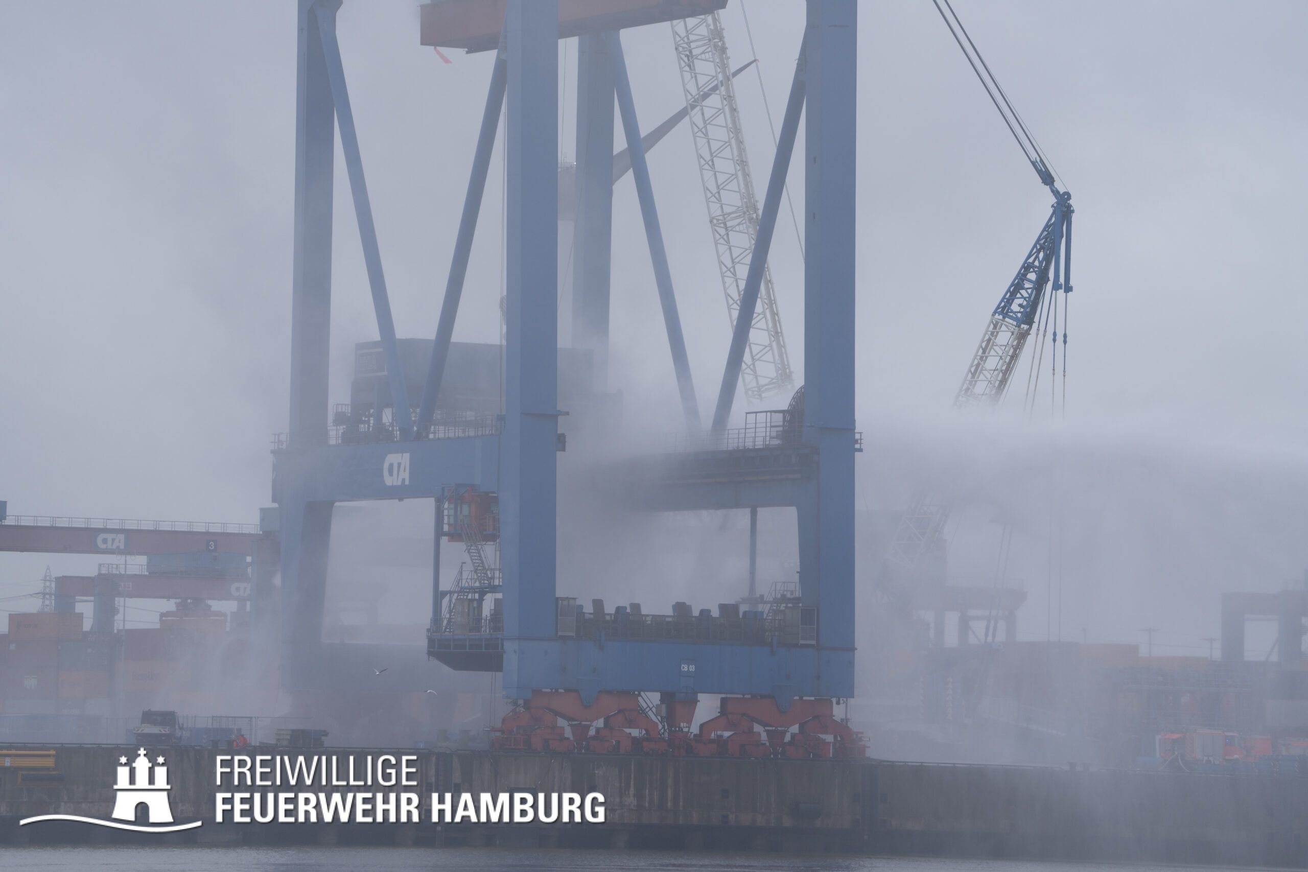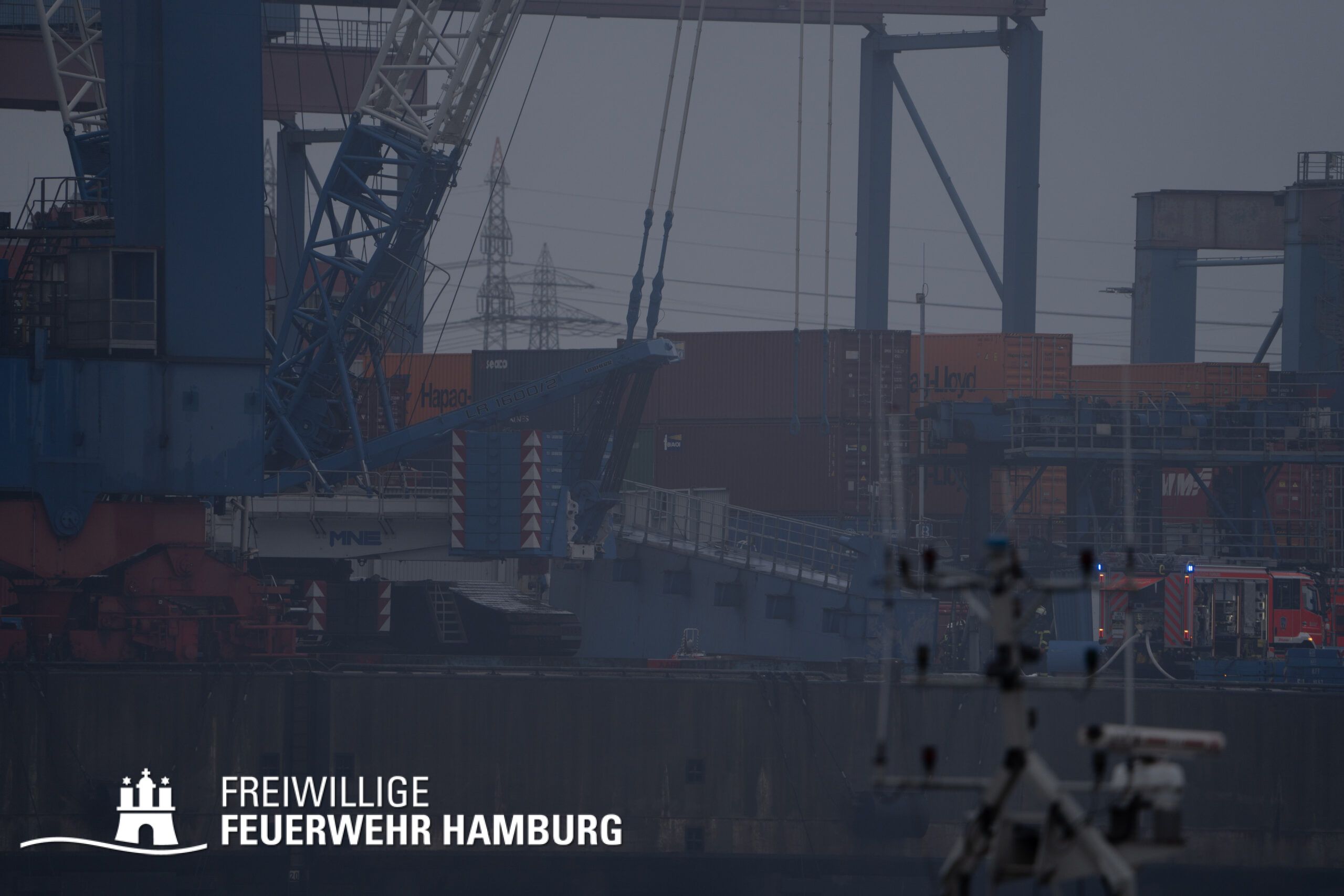 zu einem Feuer an einer Containerbrücke in Altenwerder. Der Ausleger der Brücke war bereits