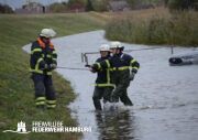 Am 05.10.2025 wurden die Freiwilligen Feuerwehren Altengamme und Warwisch zusammen mit dem Bereichsführer Vierlande zu dem Einsatzstichwort THK (Technische Hilfeleistung Klein) an den Zollenspieker Hauptdeich alarmiert. Durch eine Sturmflut stieg das Hochwasser entlang der Elbe höher als normal an. Dadurch wurden tiefergelegene Gebiete überflutet. Über diverse Medien wurden Informationen an die Bürger heraus gegebene damit sie im Zweifel ihr Eigentum schützen können. Leider wurden trotzdem mehrere PKW von der Sturmflut erfasst und mussten dann von der Freiwilligen Feuerwehr geborgen werden. Mit dem GW-R1 der FF Altengamme und dem GKW der FF Warwisch konnten die Fahrzeuge über Seilwinden aus dem Wasser gezogen werden.