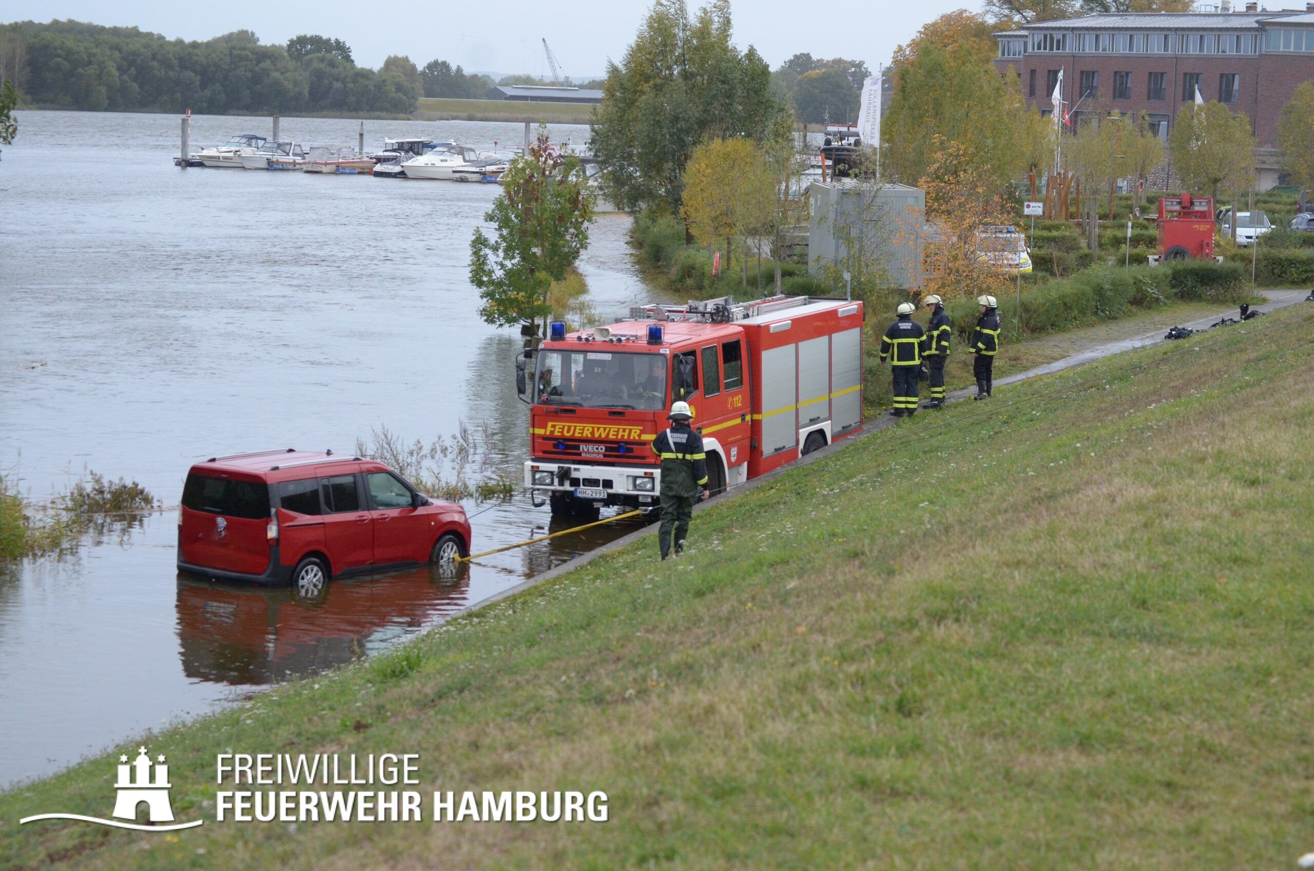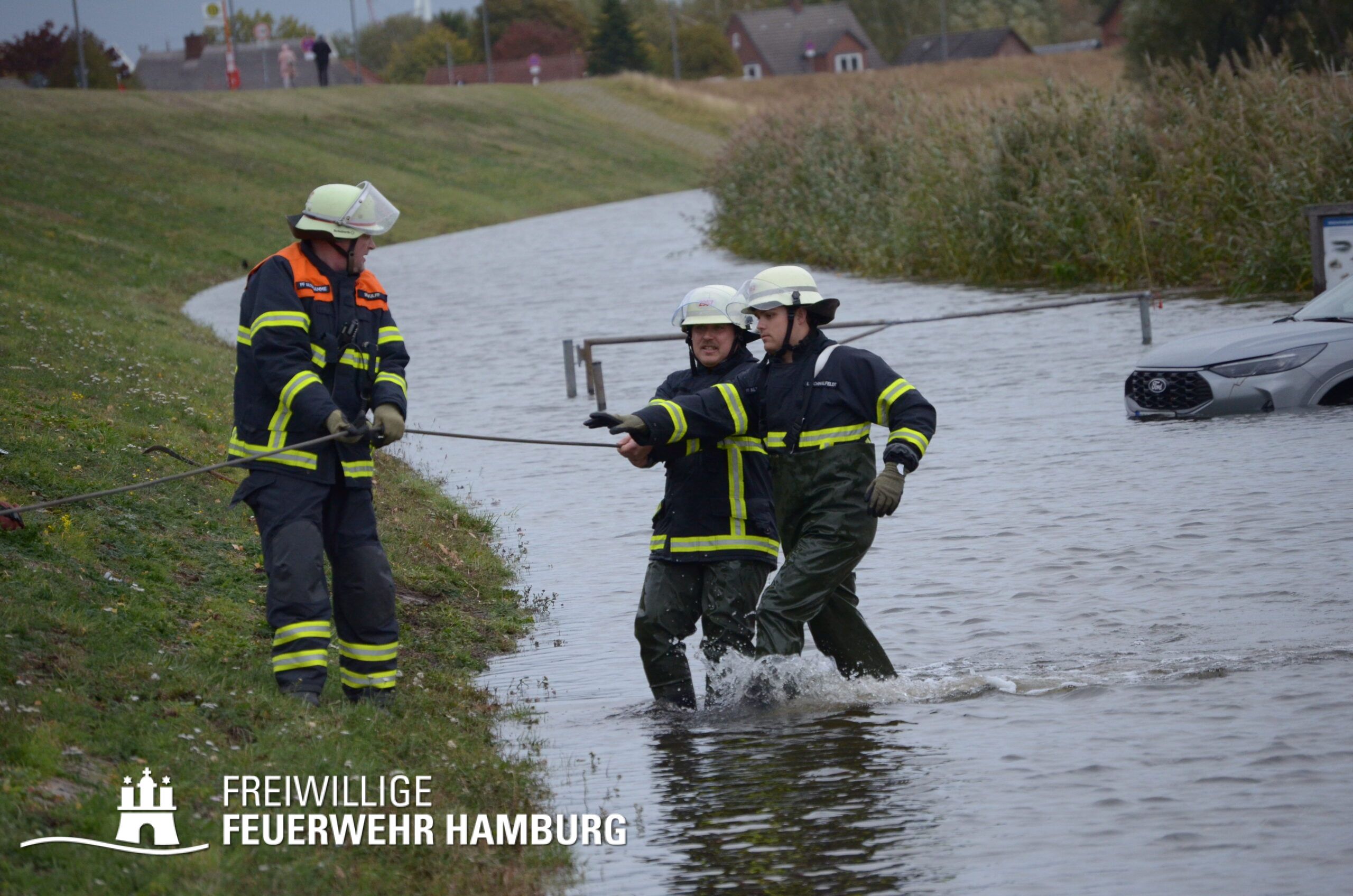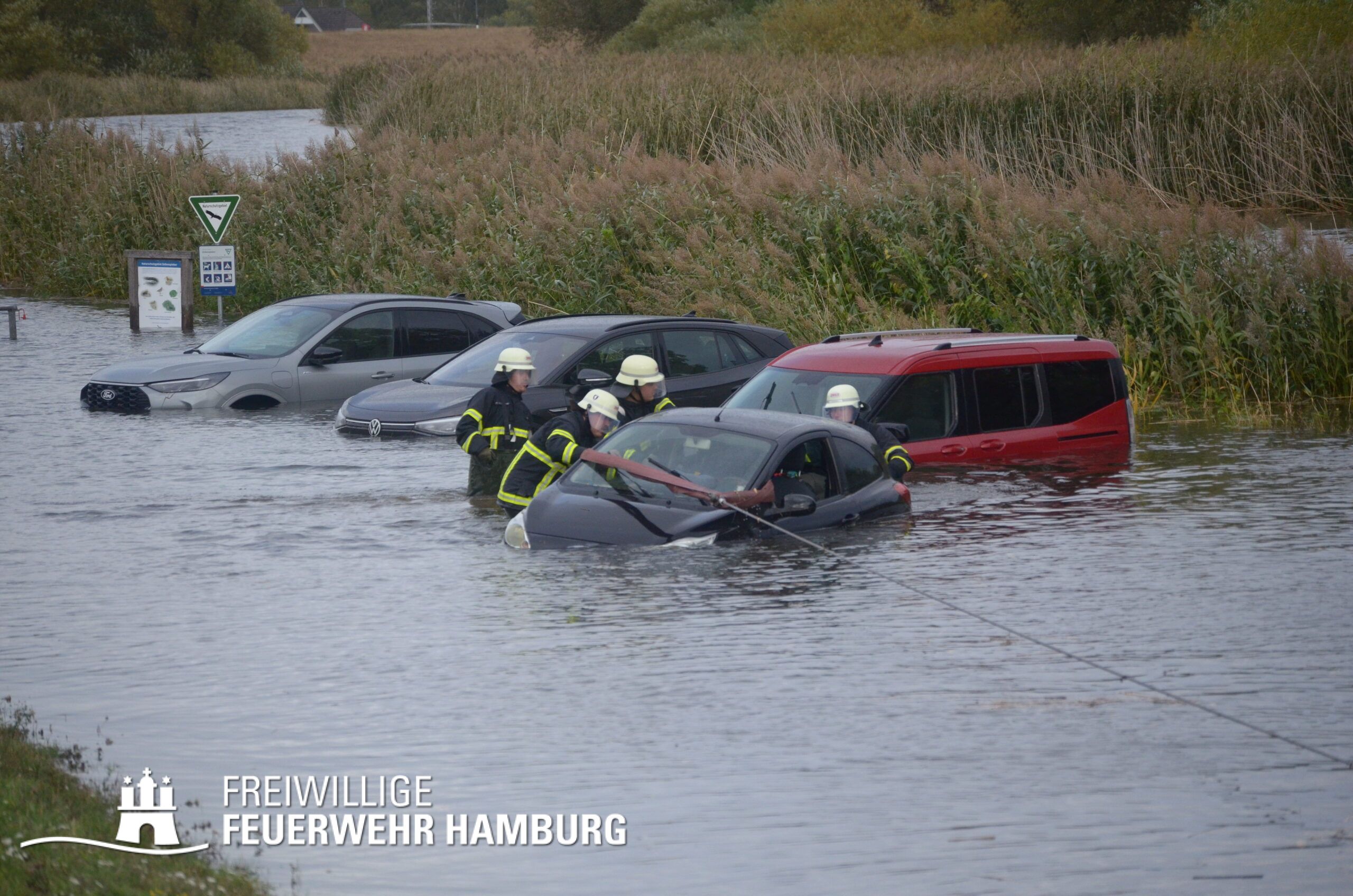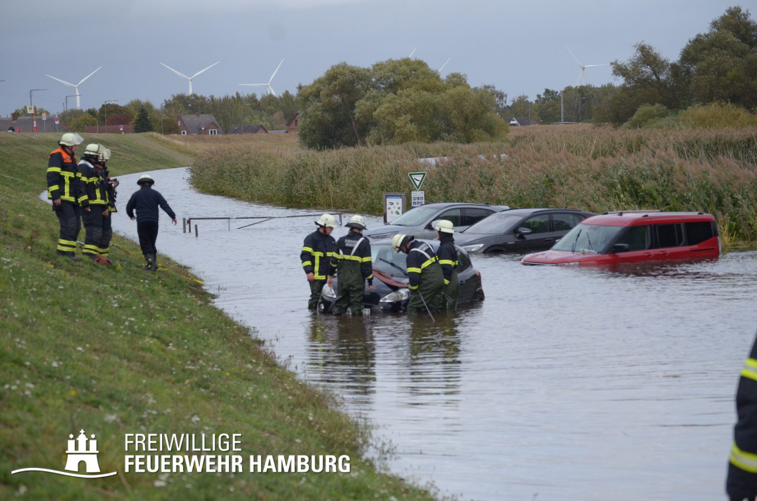 Durch ein Orkantief auf der Nordsee entstand am Sonntag auch eine Sturmflut in Teilen von Hamburg. Im Zollenspieker Hauptdeich mussten daher mehrere PKW durch die Feuerwehr geborgen werden.