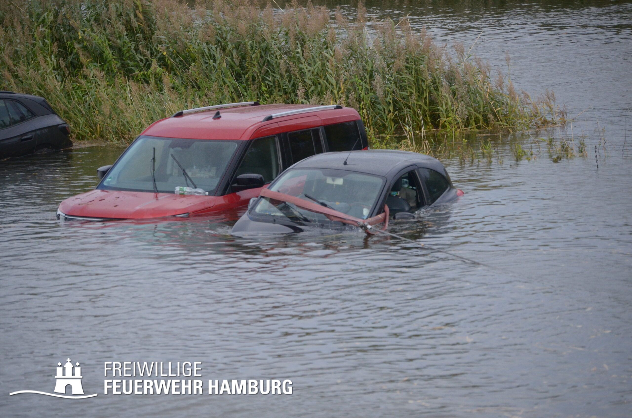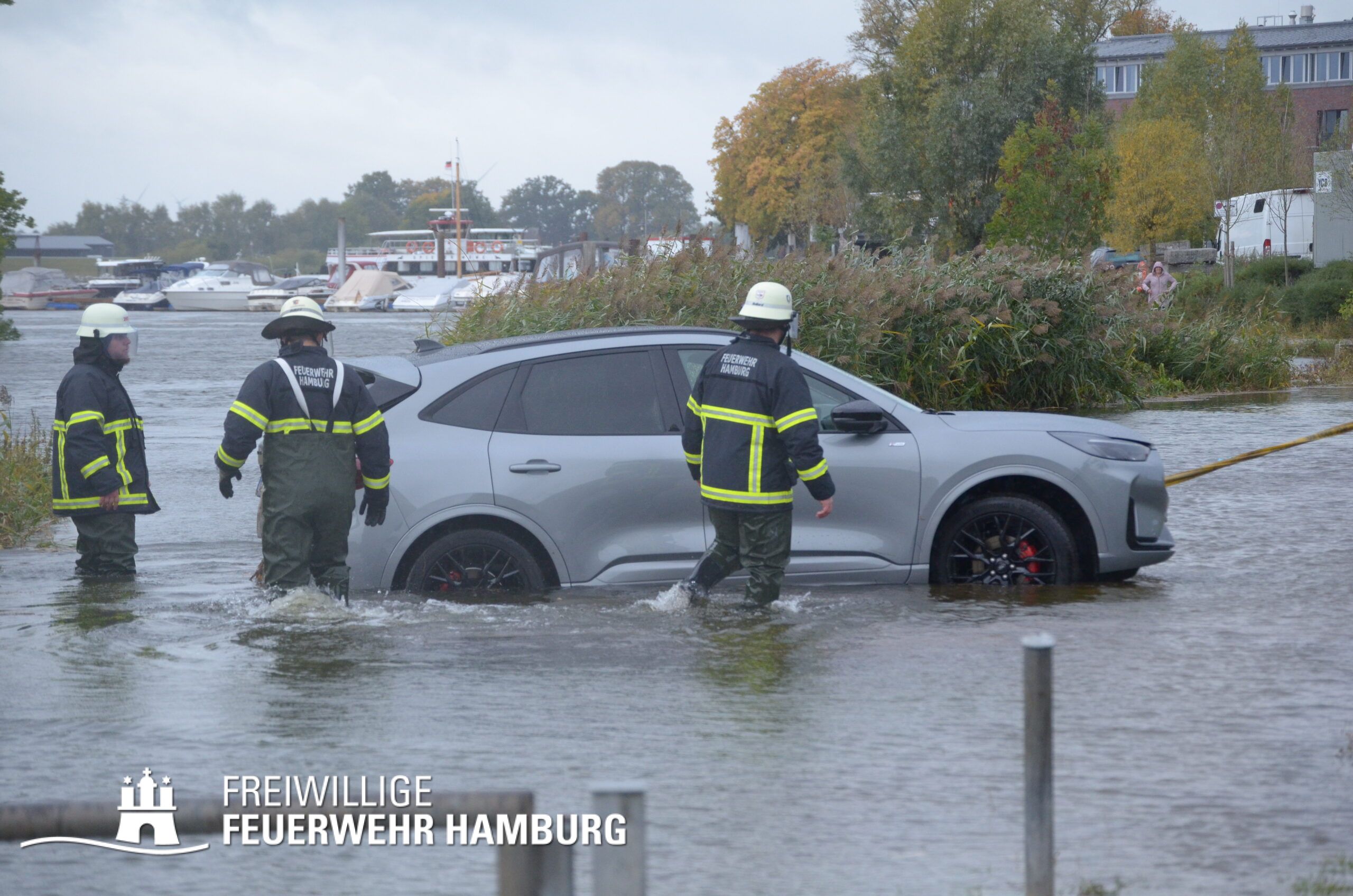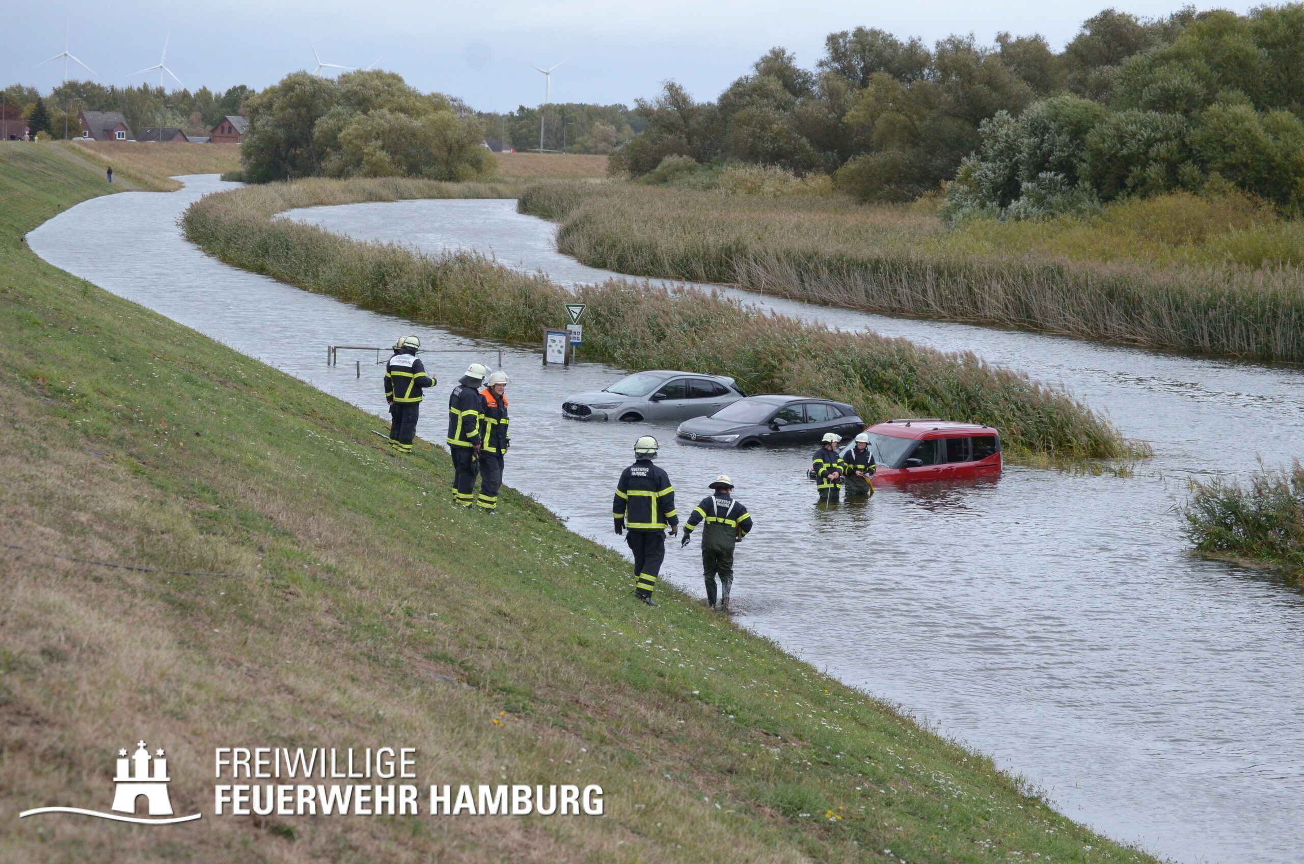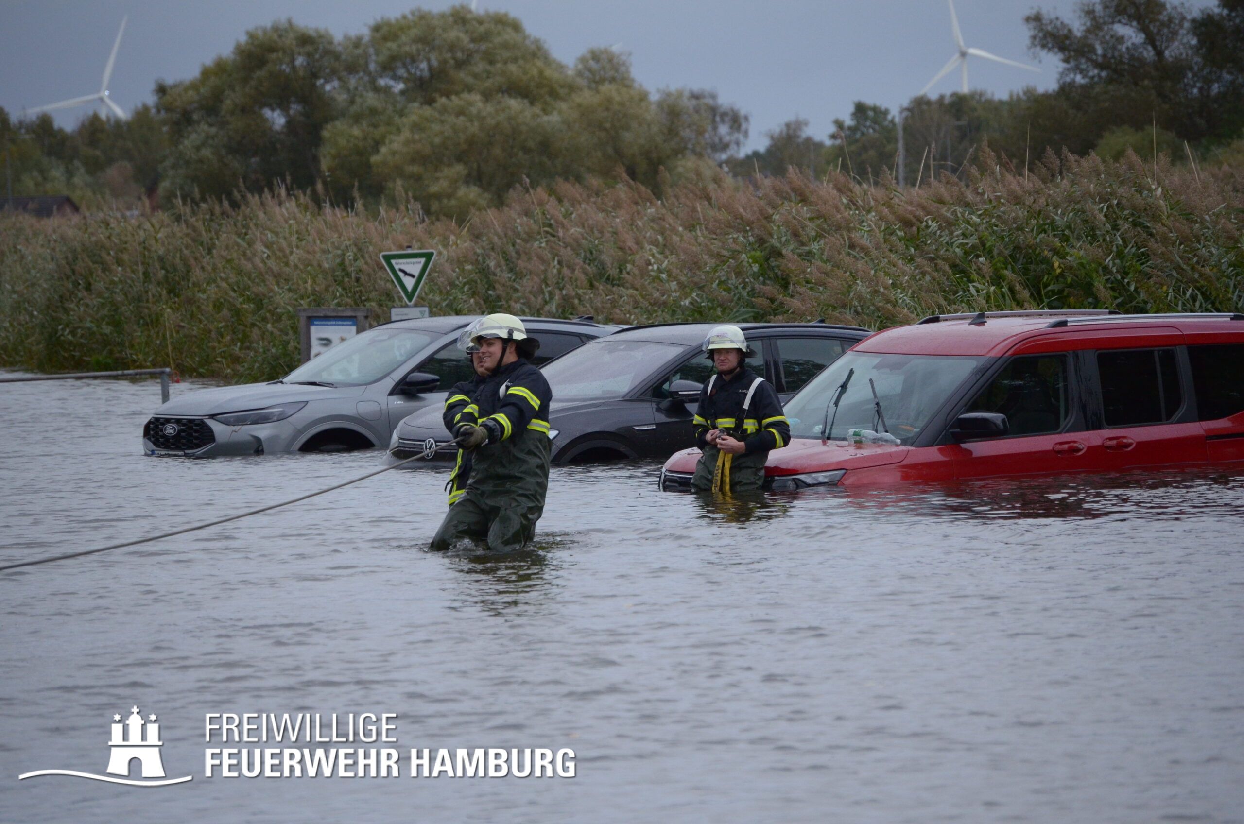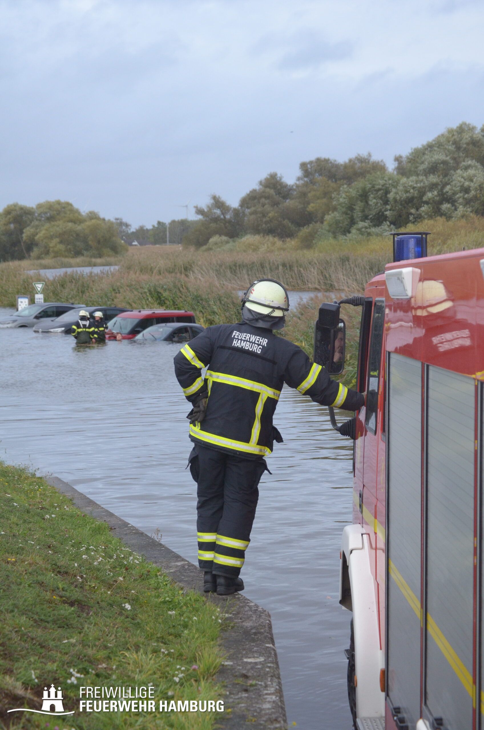 Durch ein Orkantief auf der Nordsee entstand am Sonntag auch eine Sturmflut in Teilen von Hamburg. Im Zollenspieker Hauptdeich mussten daher mehrere PKW durch die Feuerwehr geborgen werden.