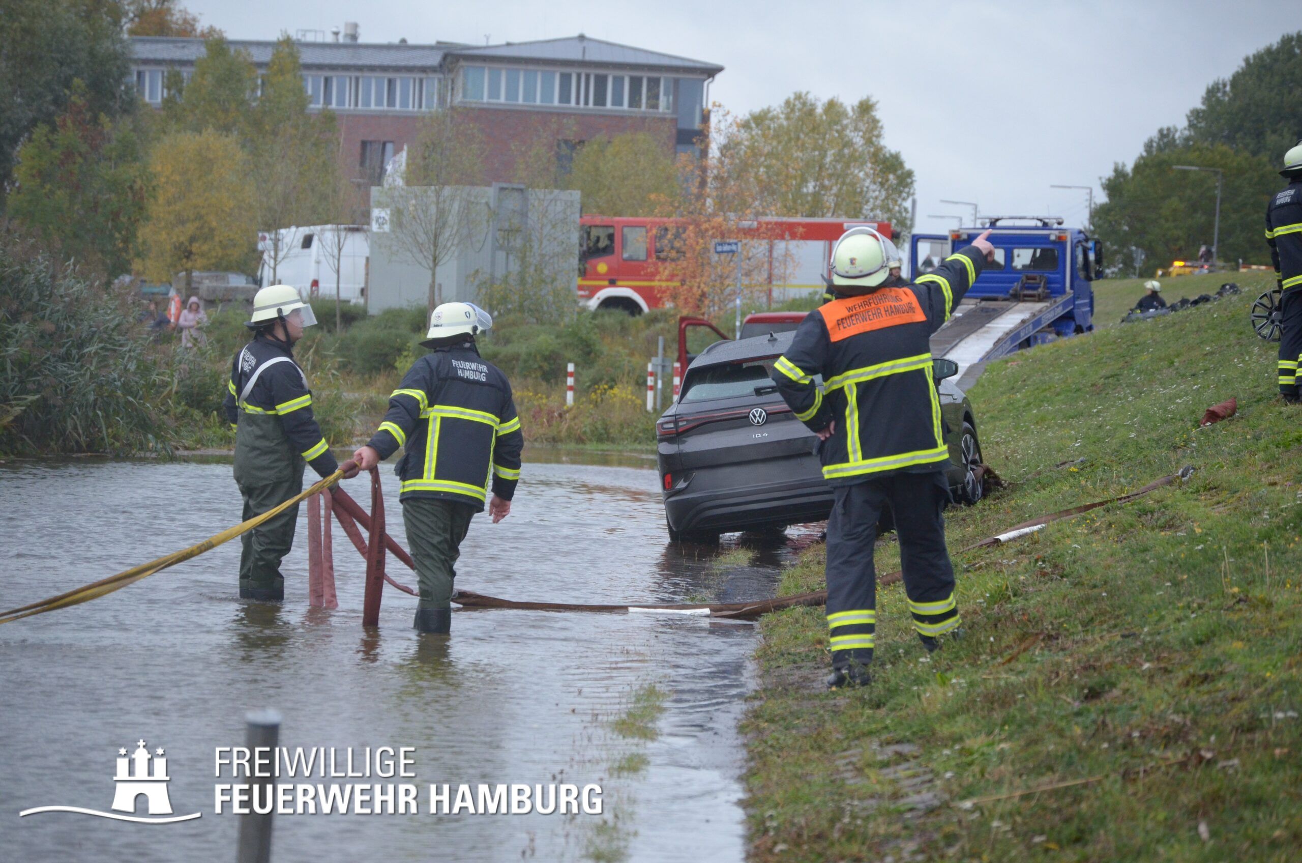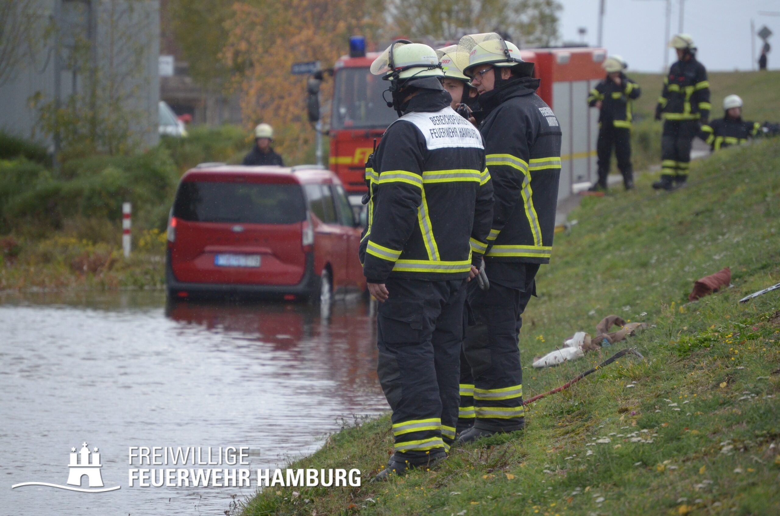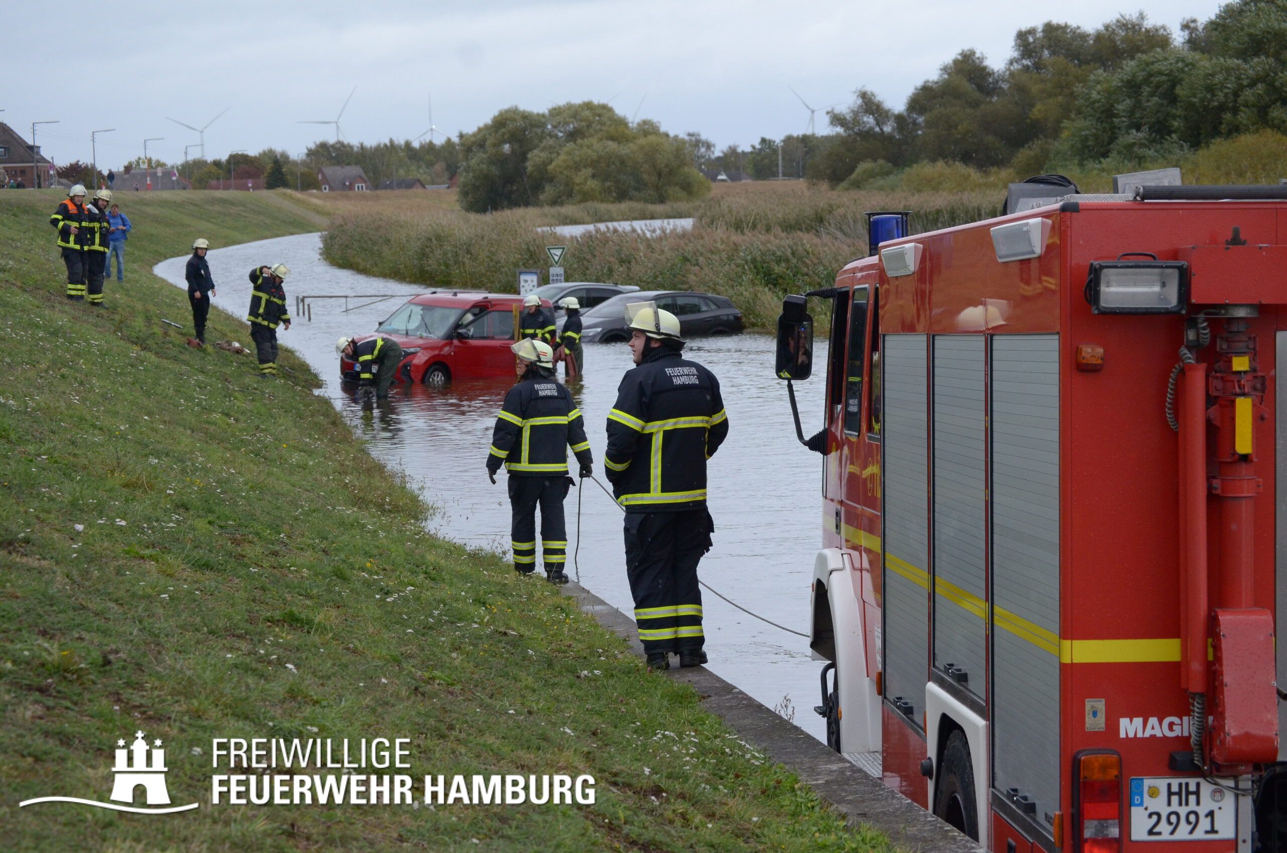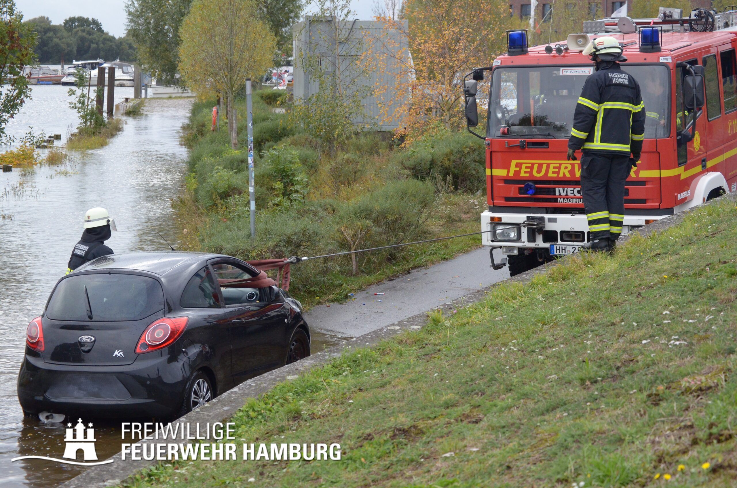 Durch ein Orkantief auf der Nordsee entstand am Sonntag auch eine Sturmflut in Teilen von Hamburg. Im Zollenspieker Hauptdeich mussten daher mehrere PKW durch die Feuerwehr geborgen werden.
