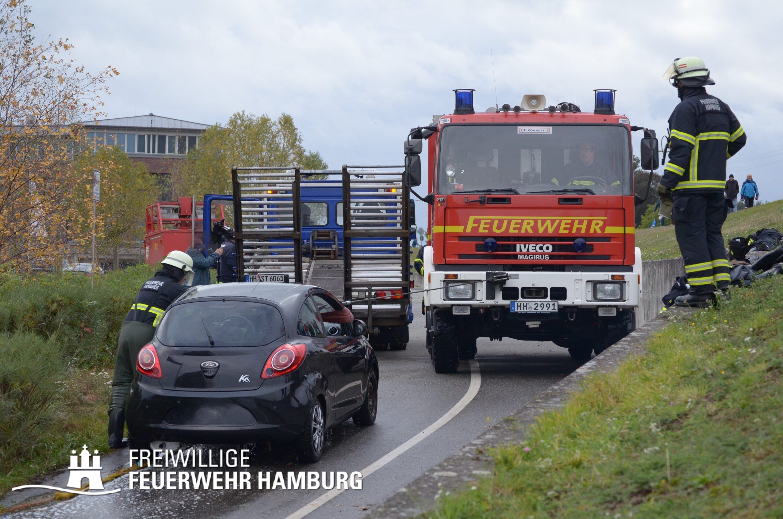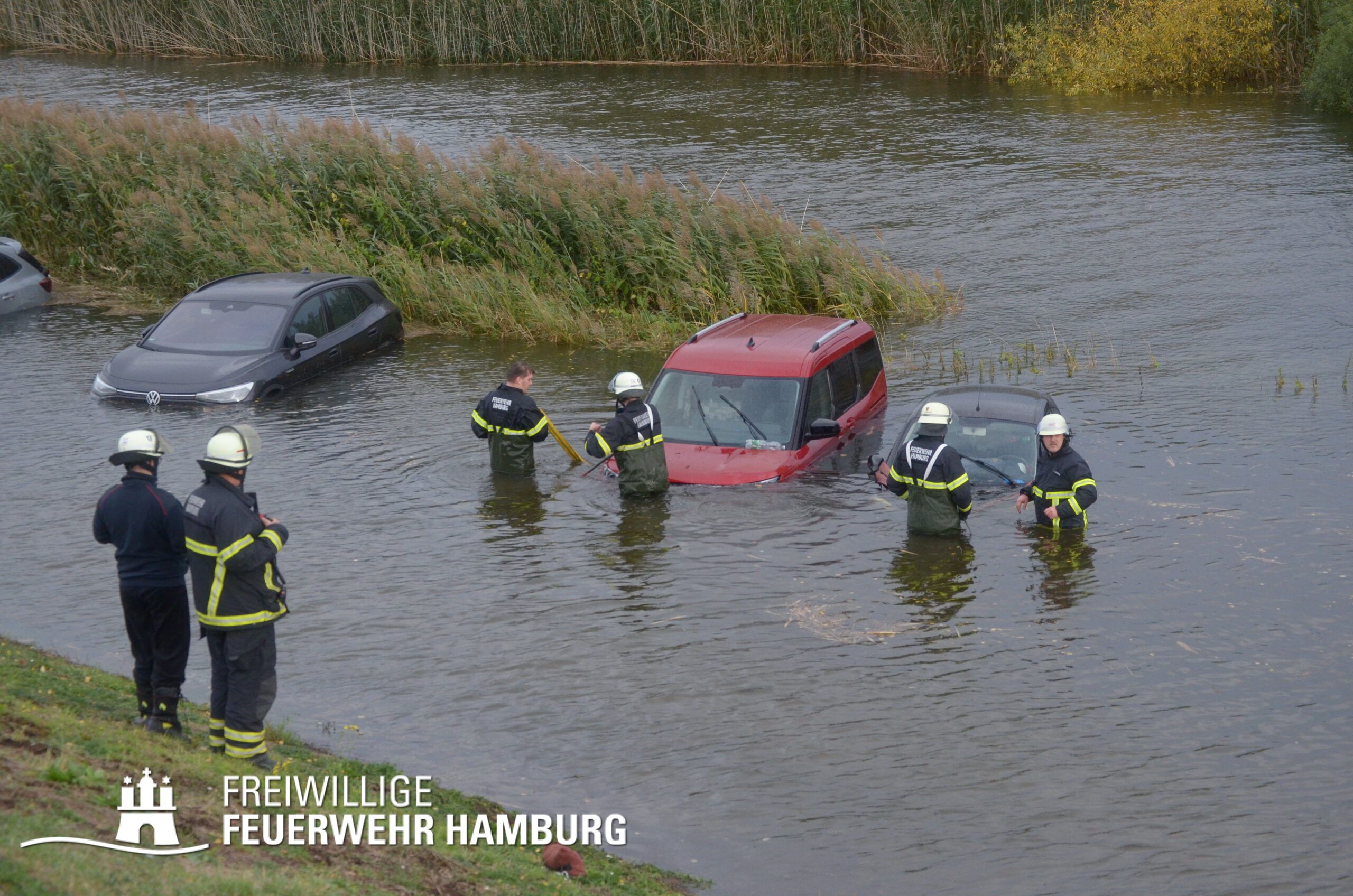 Die FF Warwisch konnte mit ihrem GKW und die FF Altengamme mit ihrem GW-R1 über ihre Seilwinden mehrere PKW aus dem Wasser ziehen. Mehrere Kameraden mussten im Wasser dafür die Fahrzeuge sichern und anschlagen. Mittels Wathosen konnte so ein trockenes Arbeiten gewährleistet werden. Der Bereichsführer Vierlande koordinierte vor Ort die Arbeiten.