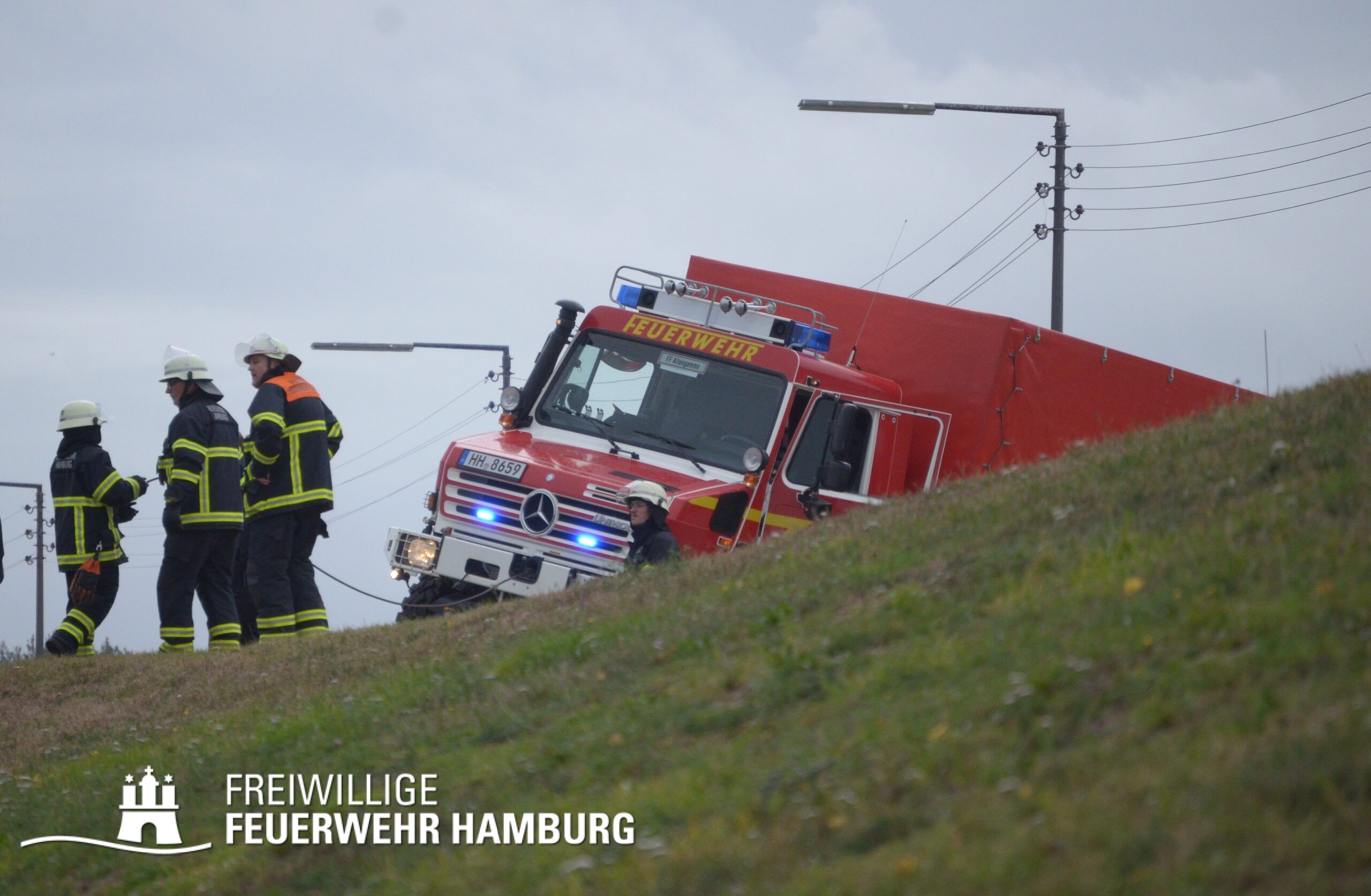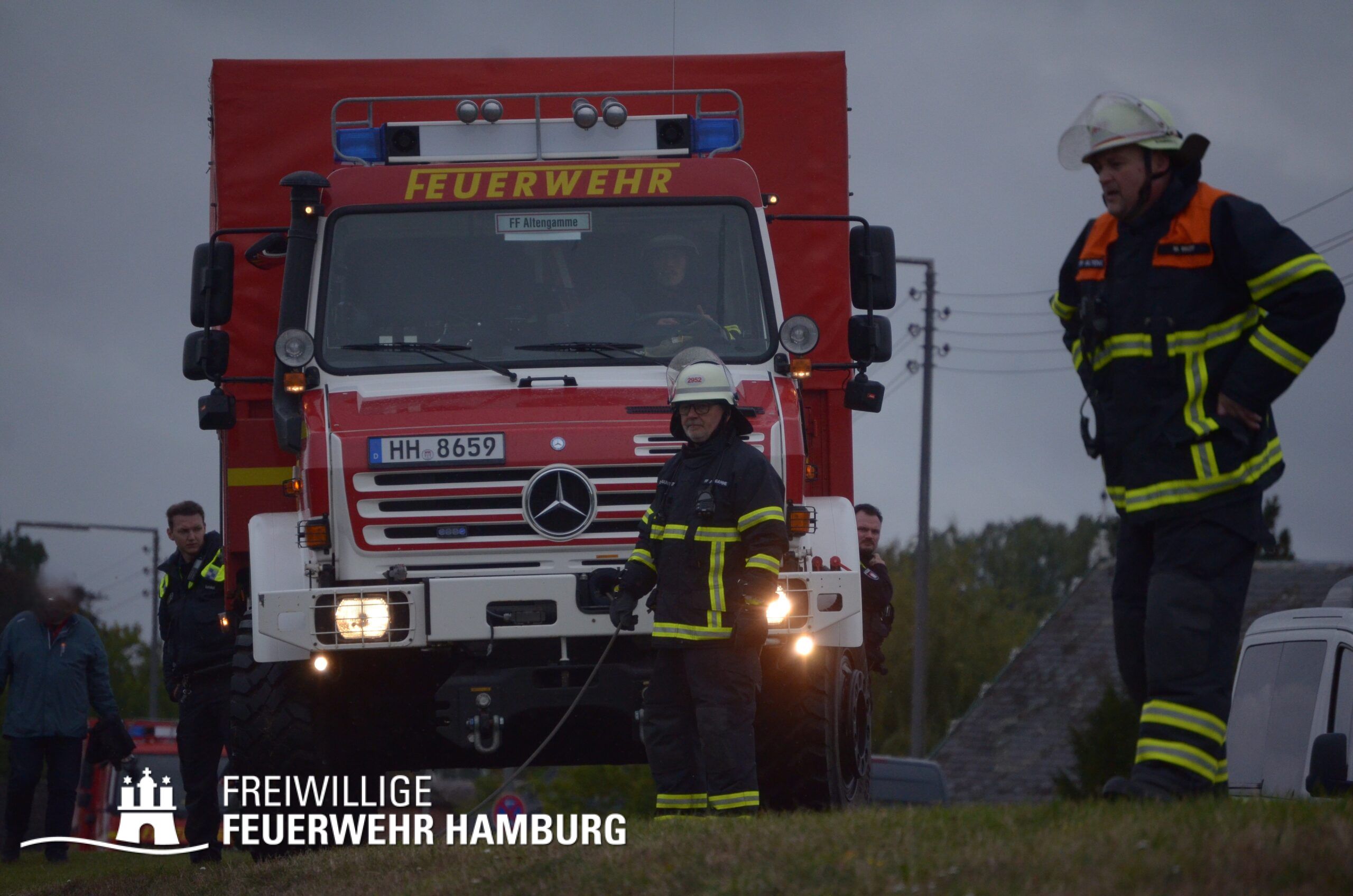 Am 05.10.2025 wurden die Freiwilligen Feuerwehren Altengamme und Warwisch zusammen mit dem Bereichsführer Vierlande zu dem Einsatzstichwort THK (Technische Hilfeleistung Klein) an den Zollenspieker Hauptdeich alarmiert. Durch eine Sturmflut stieg das Hochwasser entlang der Elbe höher als normal an. Dadurch wurden tiefergelegene Gebiete überflutet. Über diverse Medien wurden Informationen an die Bürger heraus gegebene damit sie im Zweifel ihr Eigentum schützen können. Leider wurden trotzdem mehrere PKW von der Sturmflut erfasst und mussten dann von der Freiwilligen Feuerwehr geborgen werden. Mit dem GW-R1 der FF Altengamme und dem GKW der FF Warwisch konnten die Fahrzeuge über Seilwinden aus dem Wasser gezogen werden.