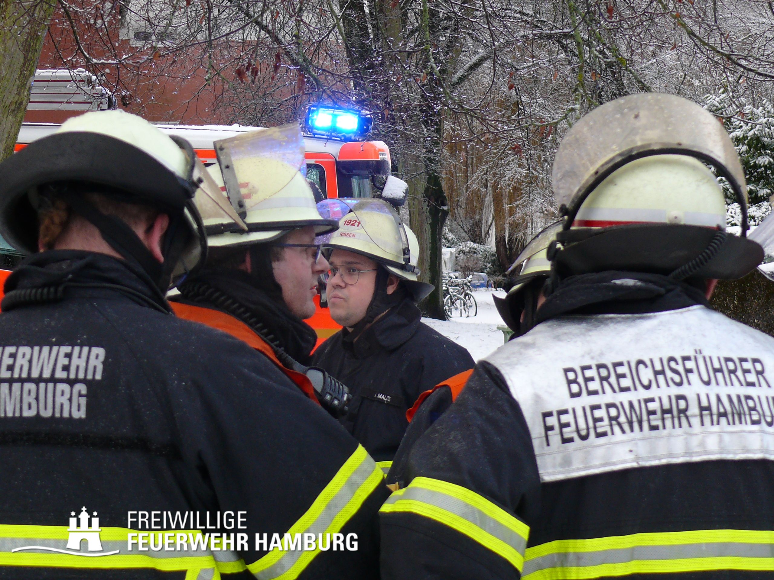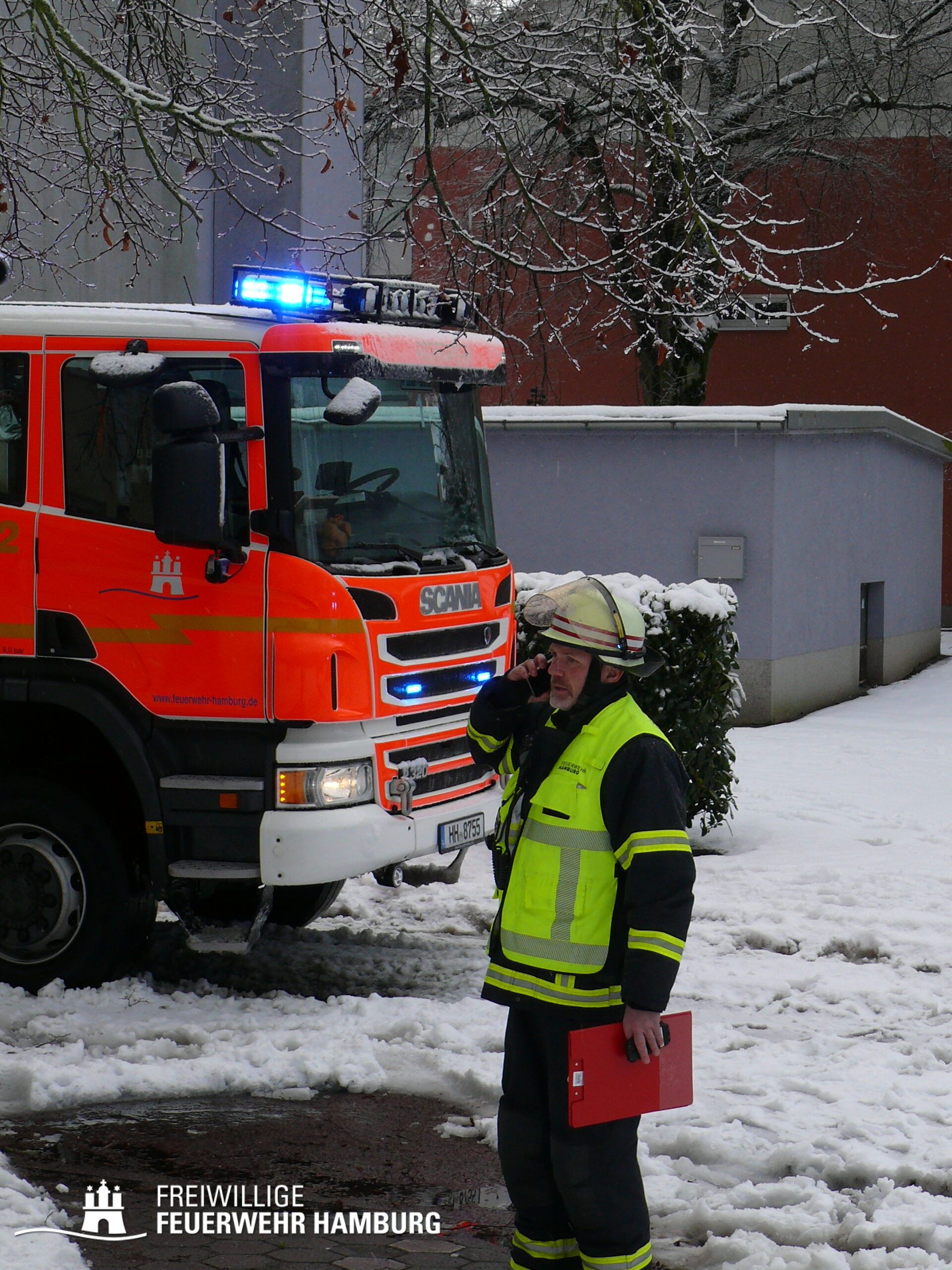 Der Bereichsführer Altona koordinierte die Einsatzmassnahmen der FF zusammen mit den Zugführern aus Osdorf und Stellingen sowie dem B-Dienst West.